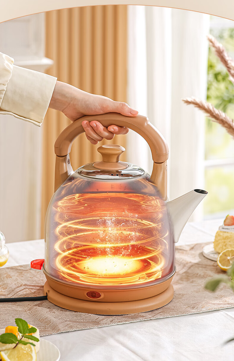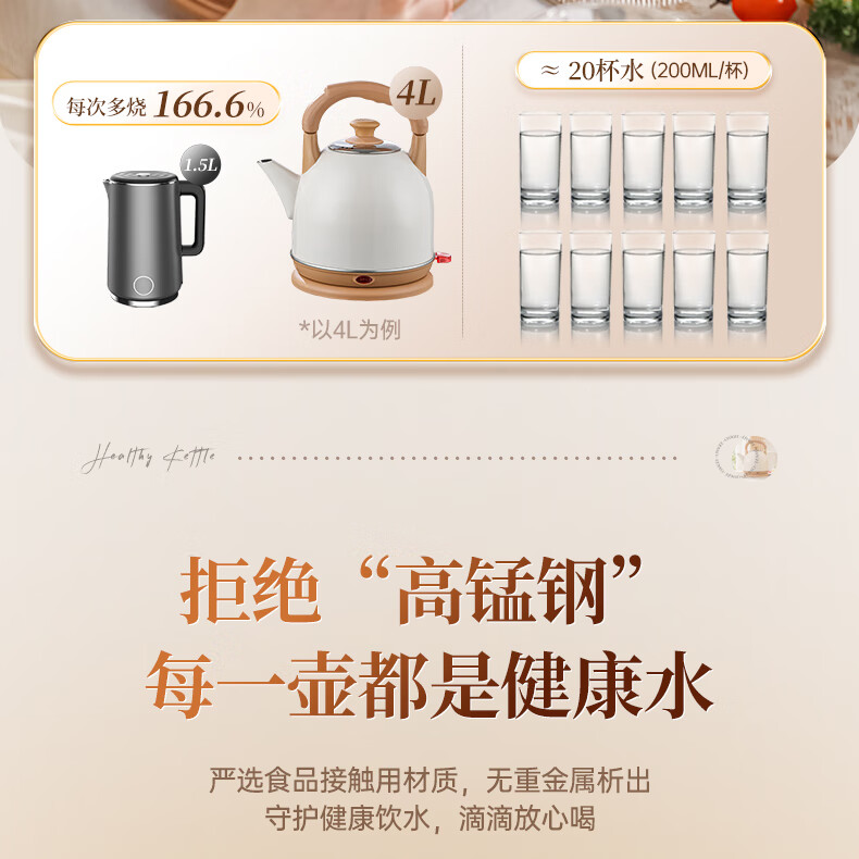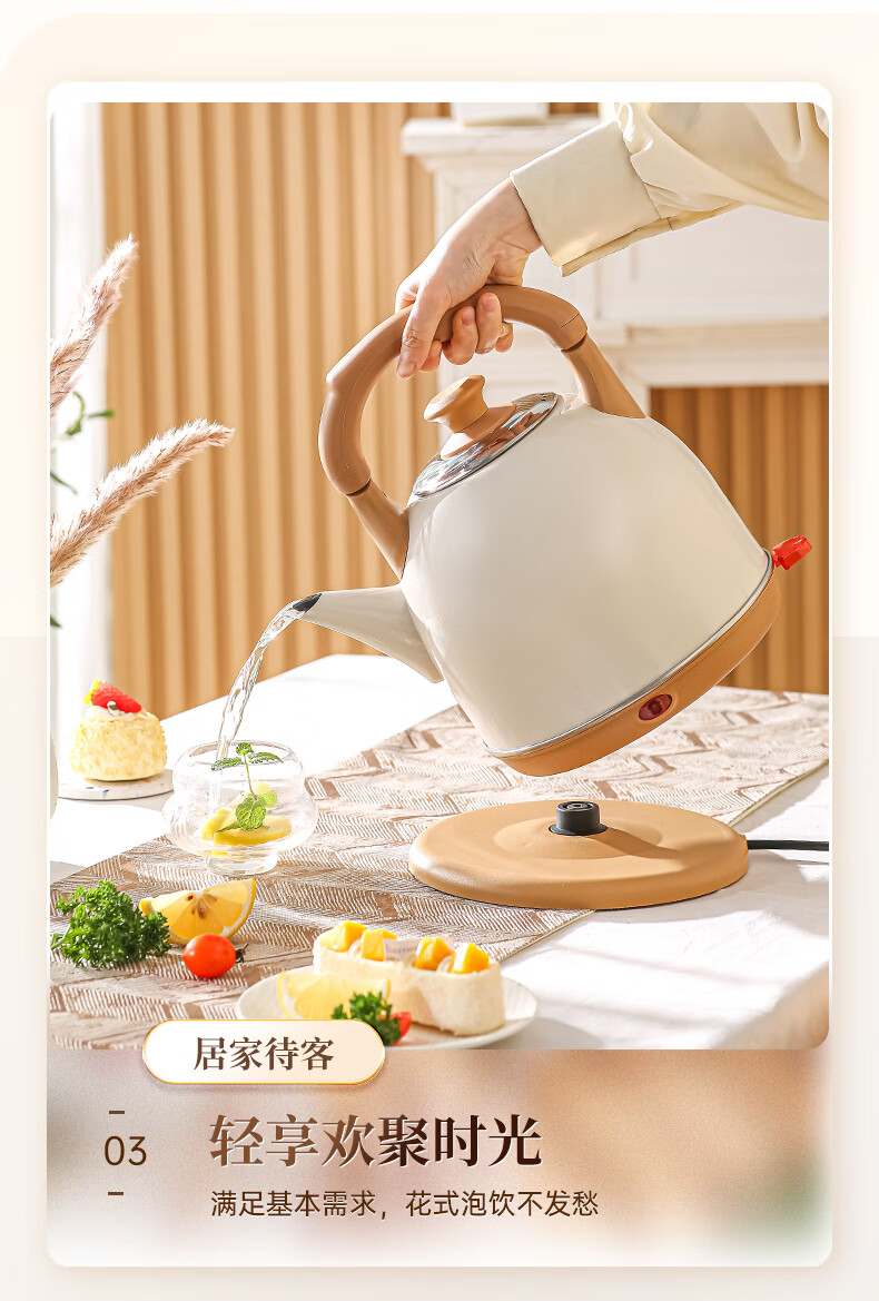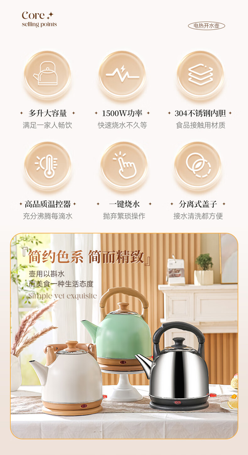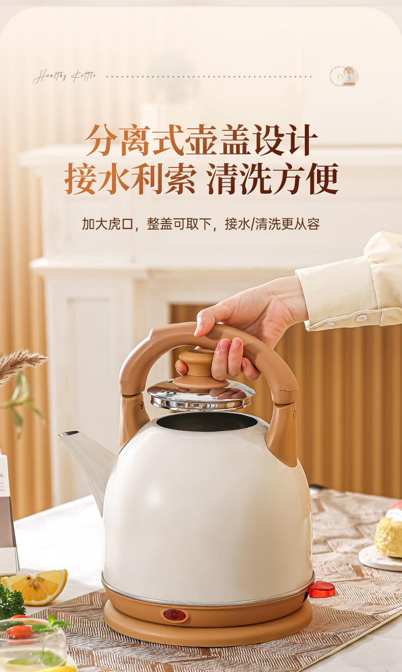 延兴烧水壶热水壶电水壶煮水壶恒温便携家用新款大容量304不锈钢分体 304不锈钢-米色 5L