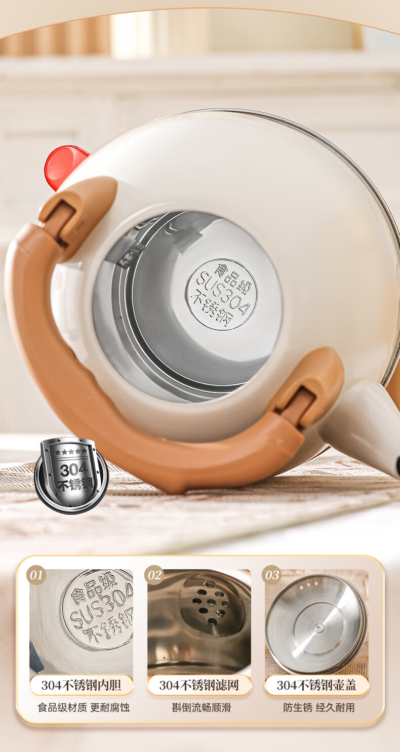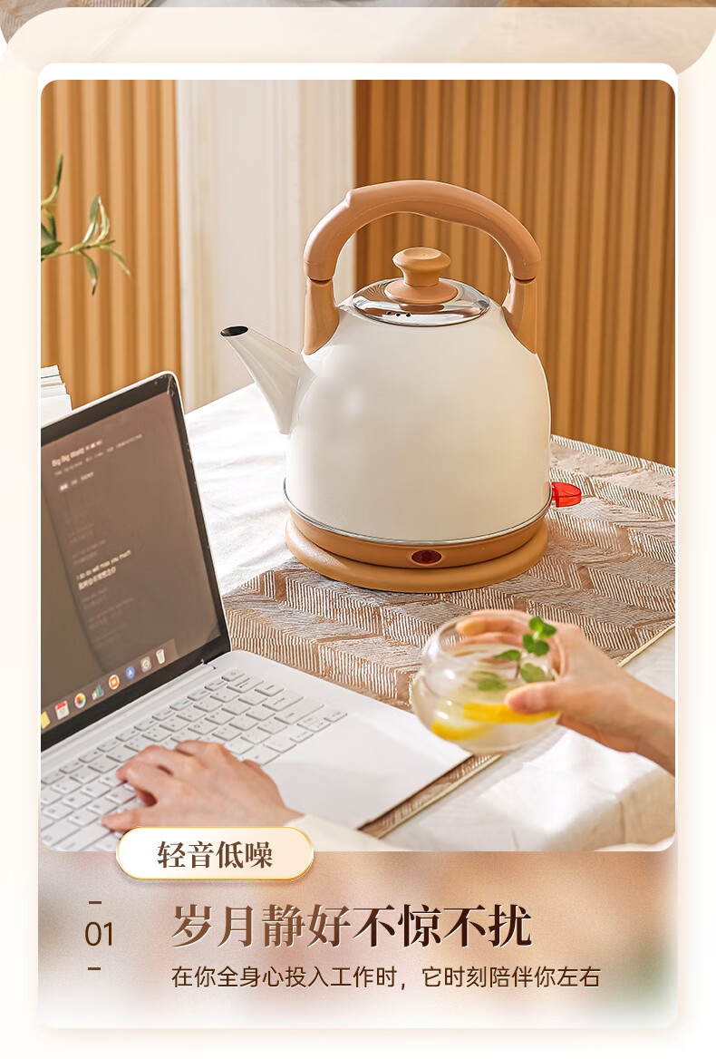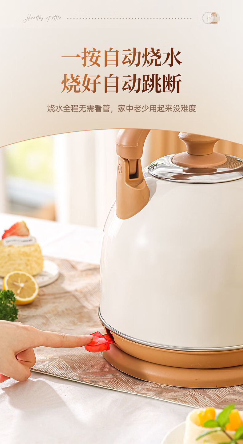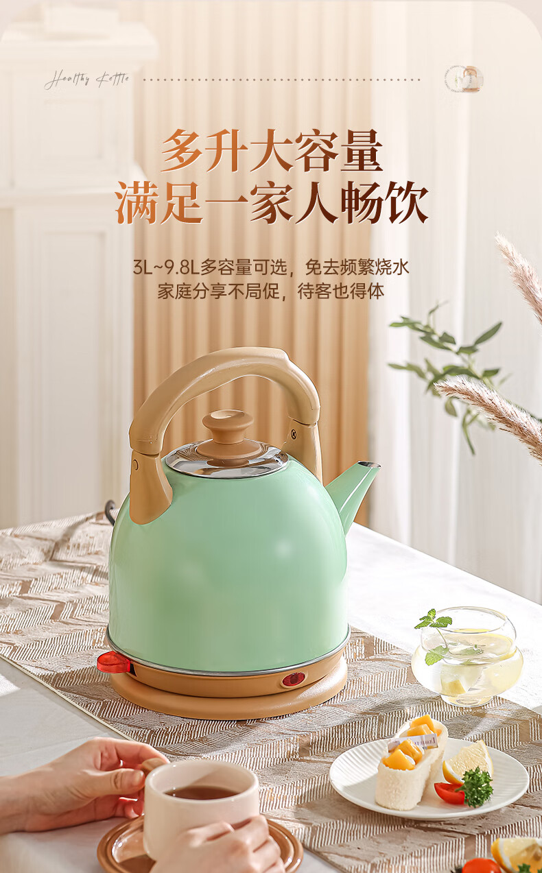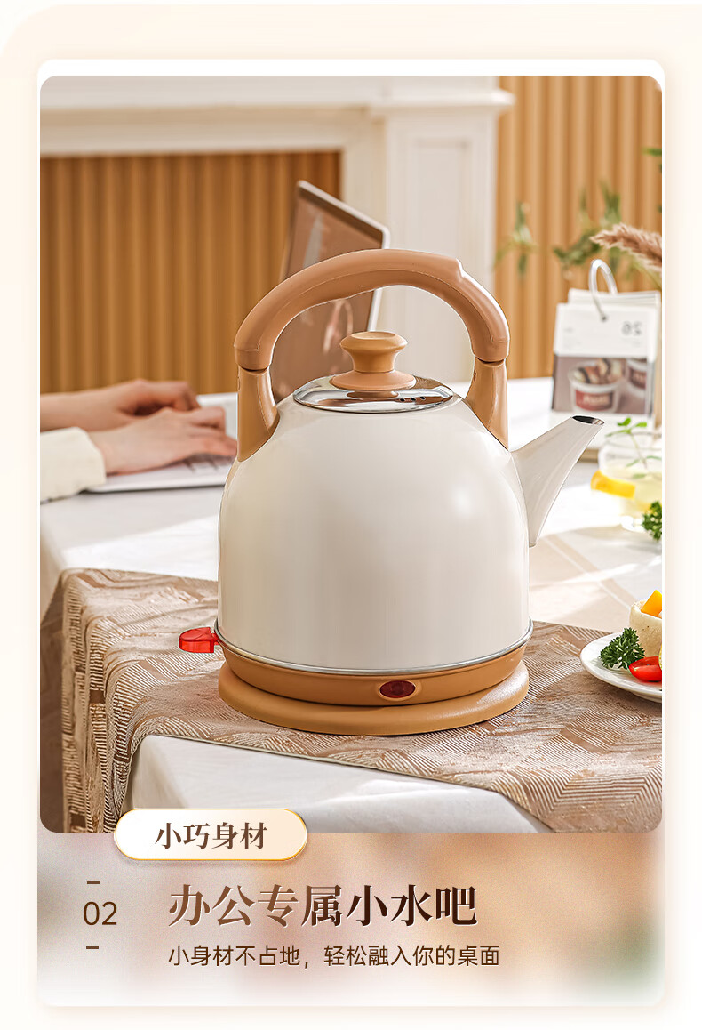 延兴烧水壶热水壶电水壶煮水壶恒温便携家用新款大容量304不锈钢分体 304不锈钢-米色 5L