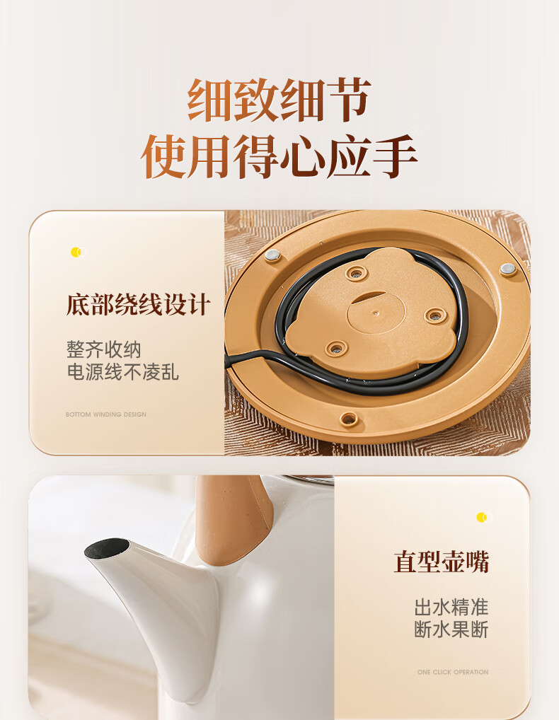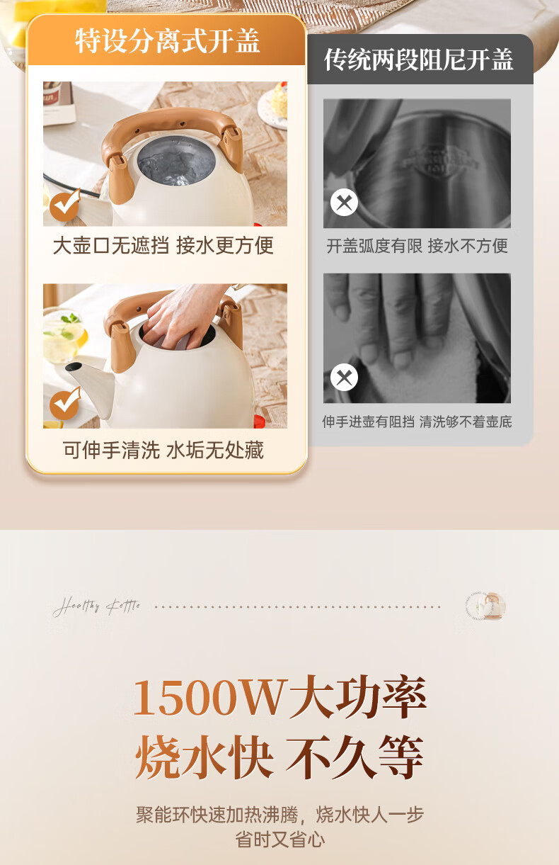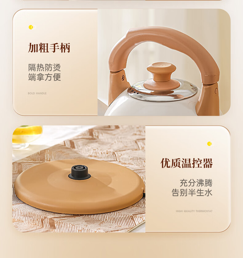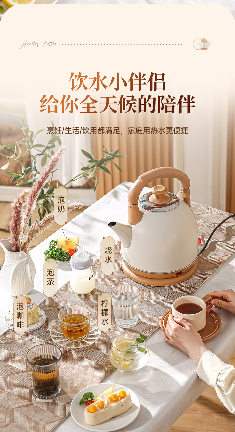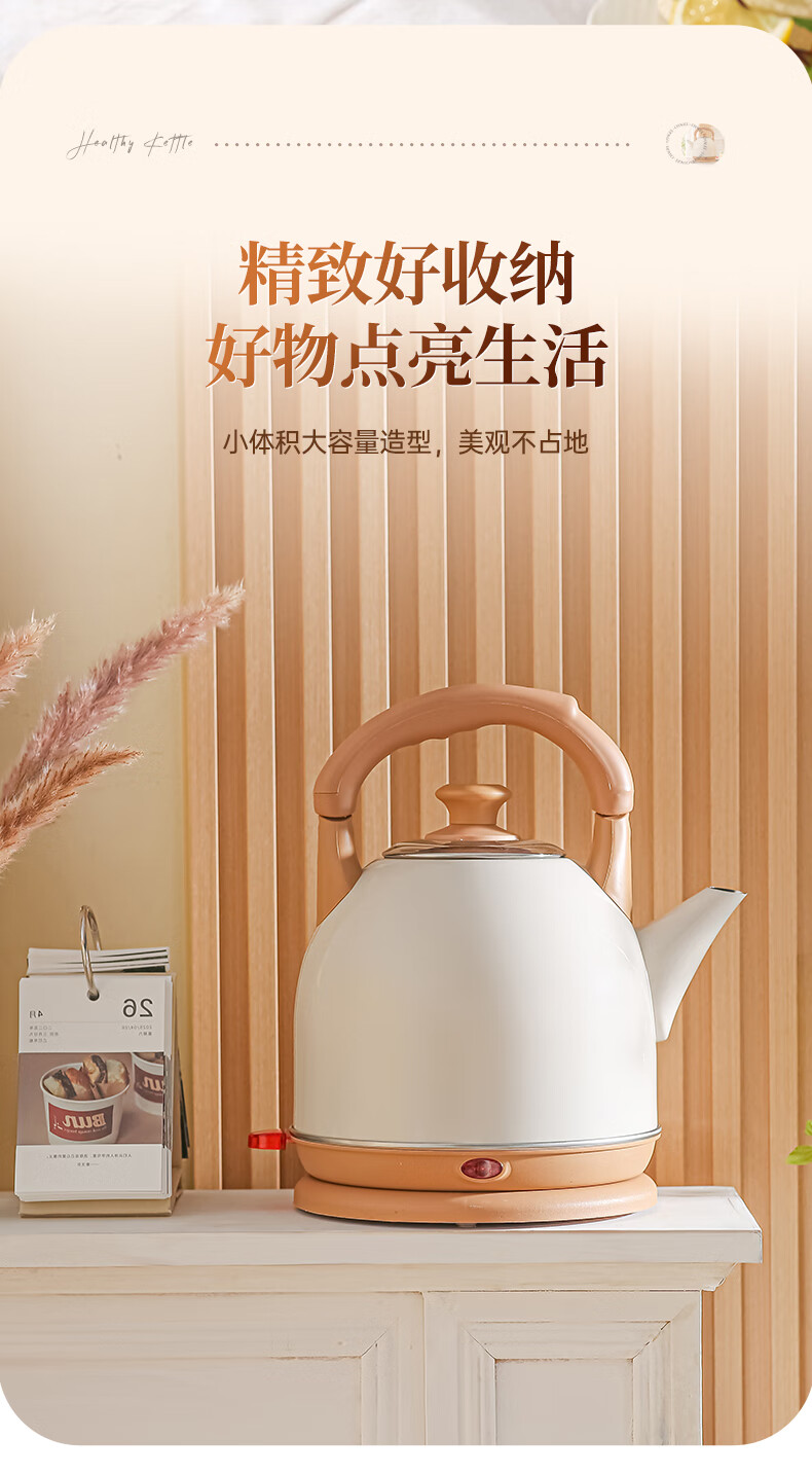 延兴烧水壶热水壶电水壶煮水壶恒温便携家用新款大容量304不锈钢分体 304不锈钢-米色 5L