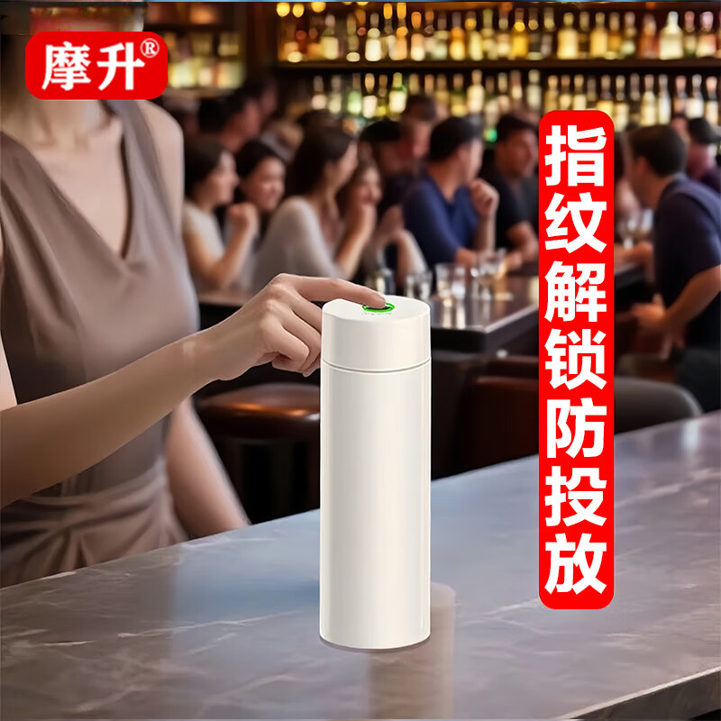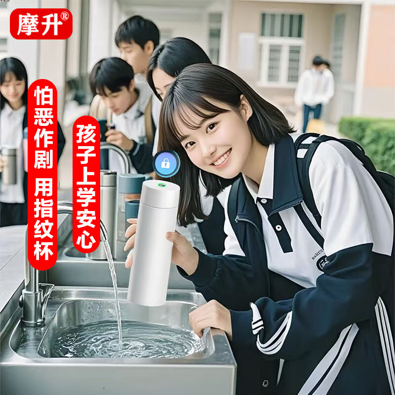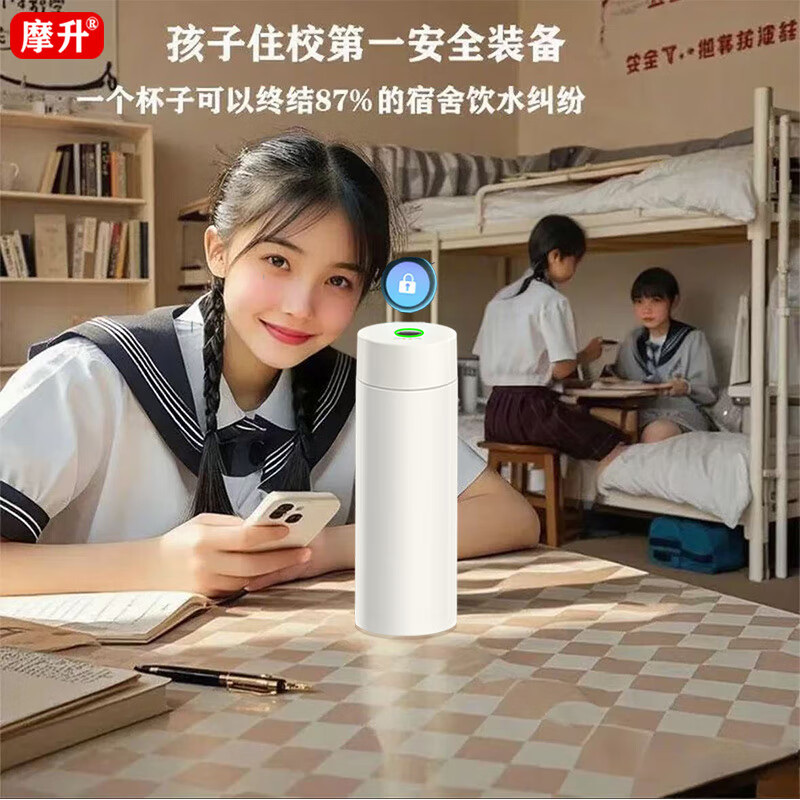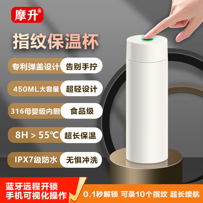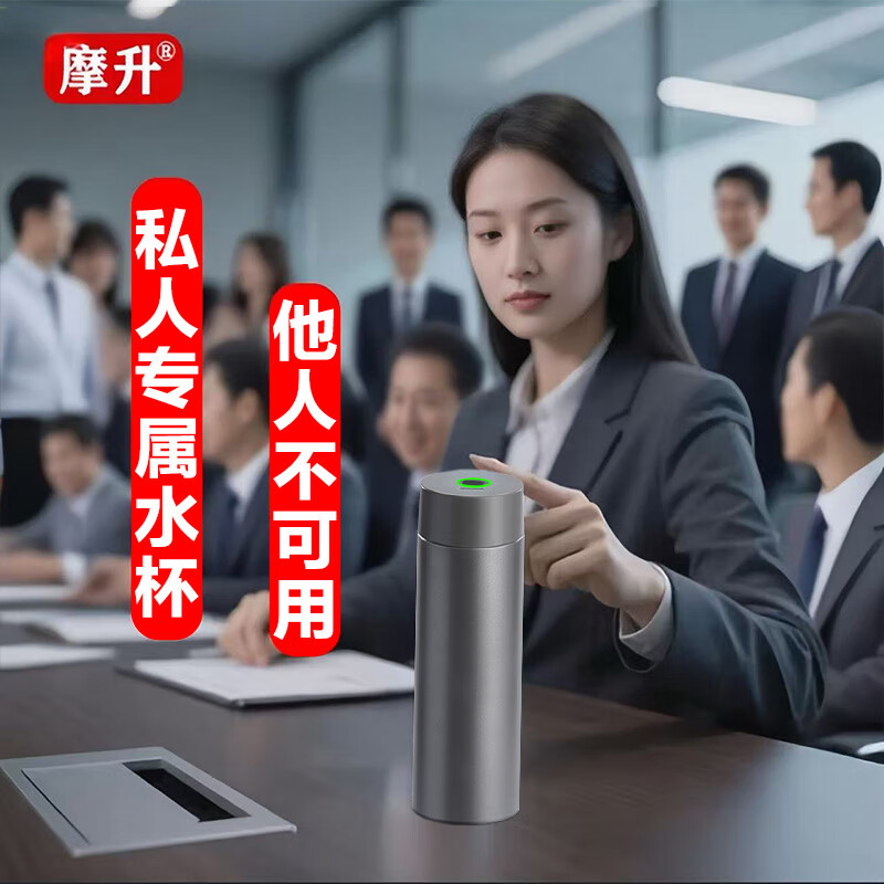 摩升指纹保温杯指纹解锁水杯指纹水杯密码锁指纹解锁便携水杯礼物茶杯 灰色 蓝牙