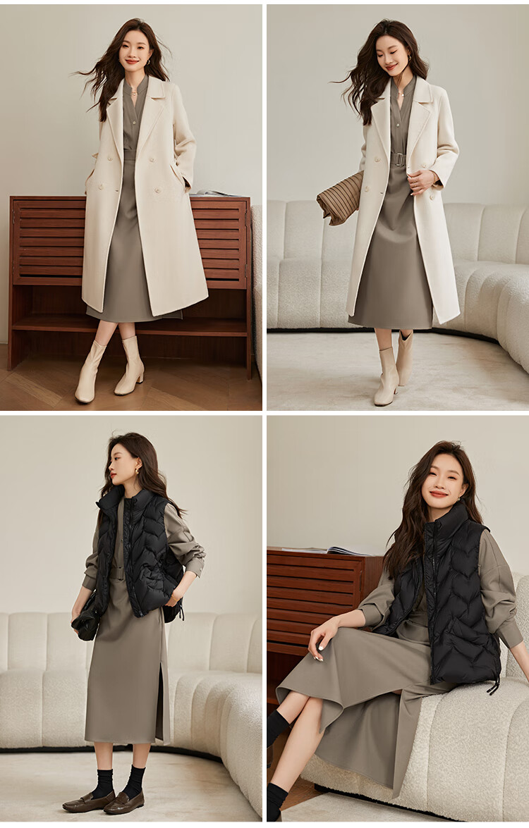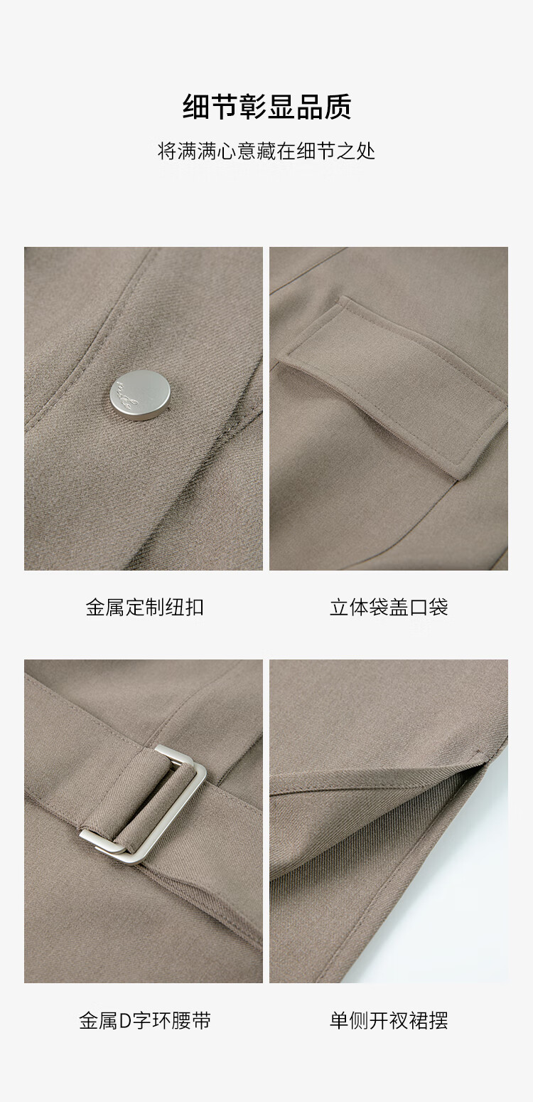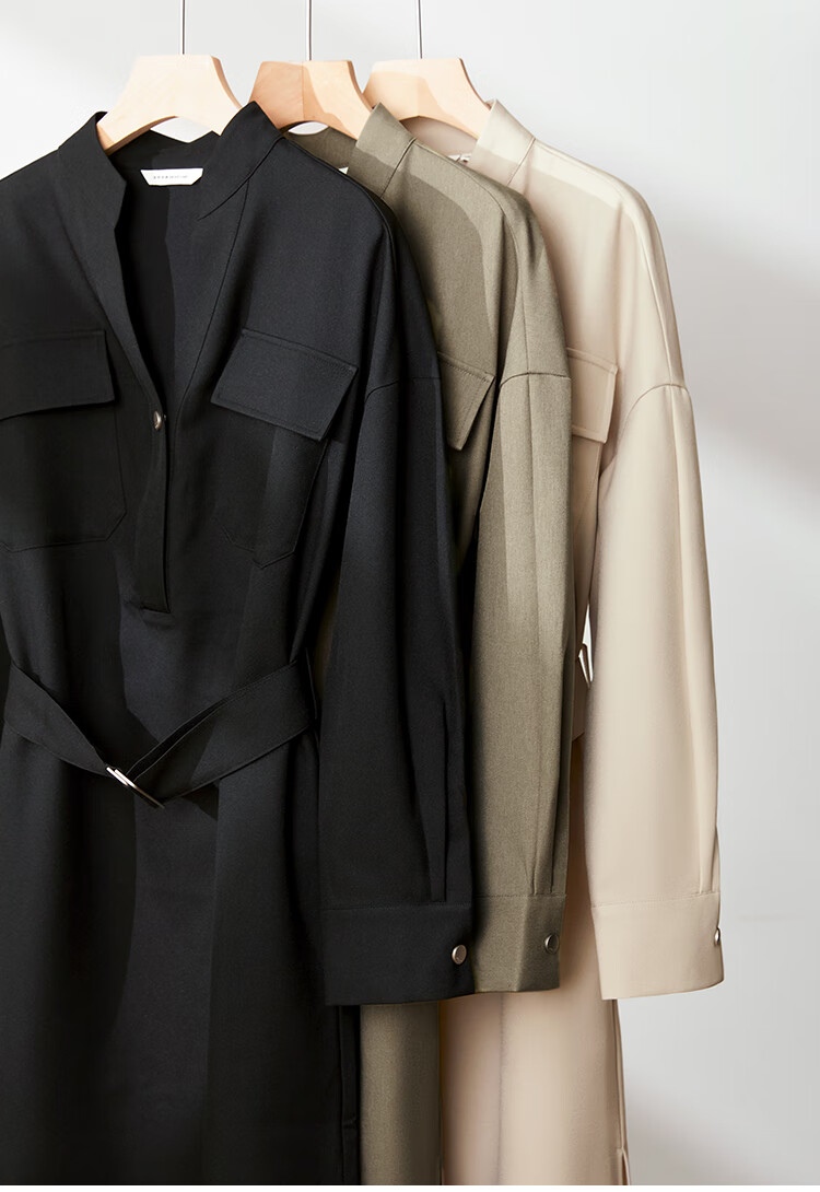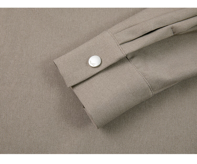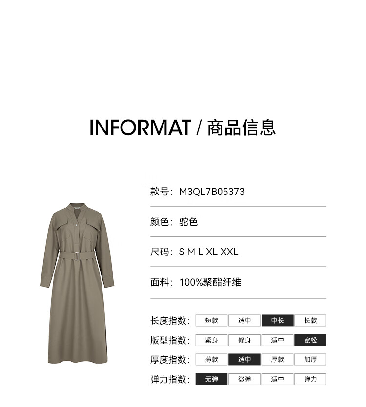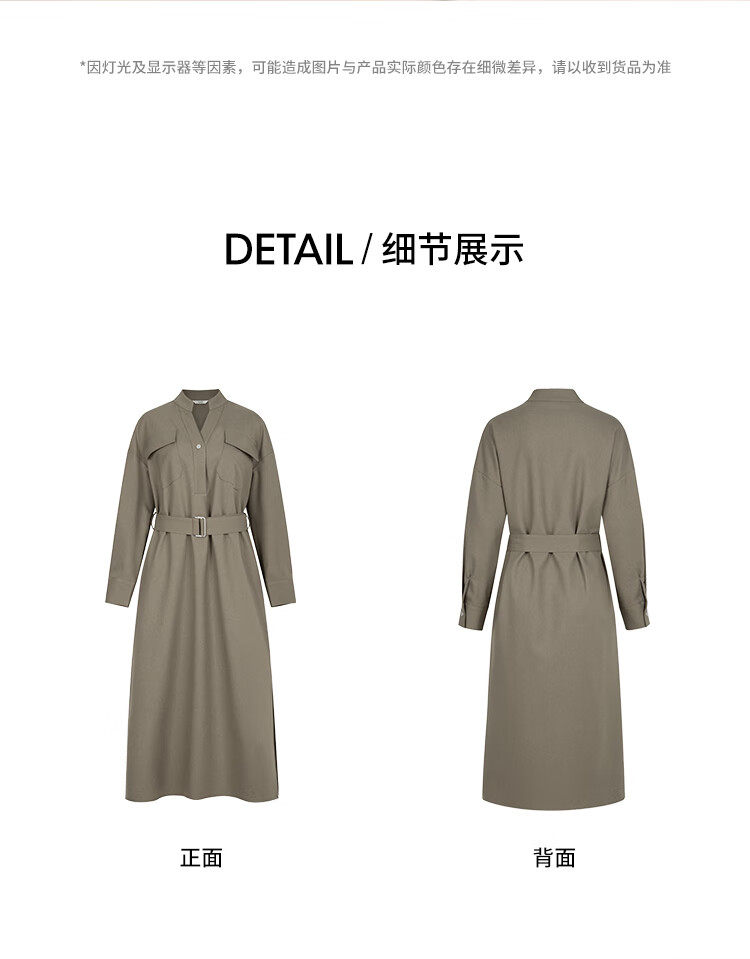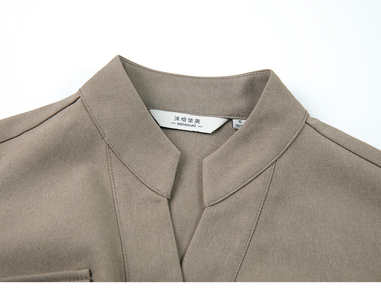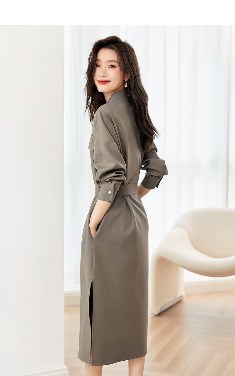 沫晗依美【气质通勤连衣裙】秋季造型感V领收腰显瘦衬衫女连衣裙 卡其色 S