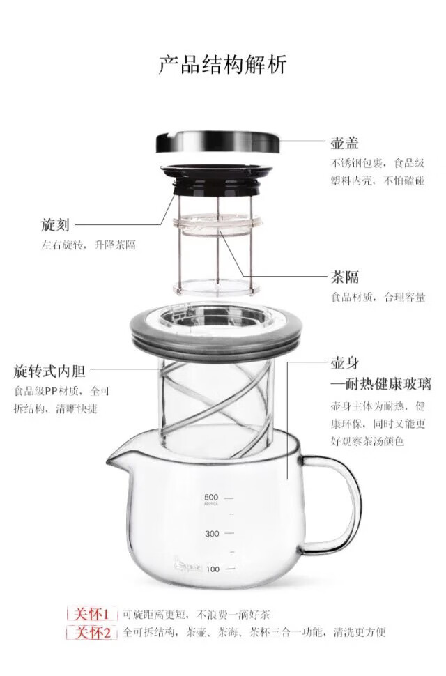 宰搂配恒福第二代飘逸杯高温耐热加厚玻璃茶壶可拆洗泡 一个得意壶配8个普通玻璃杯