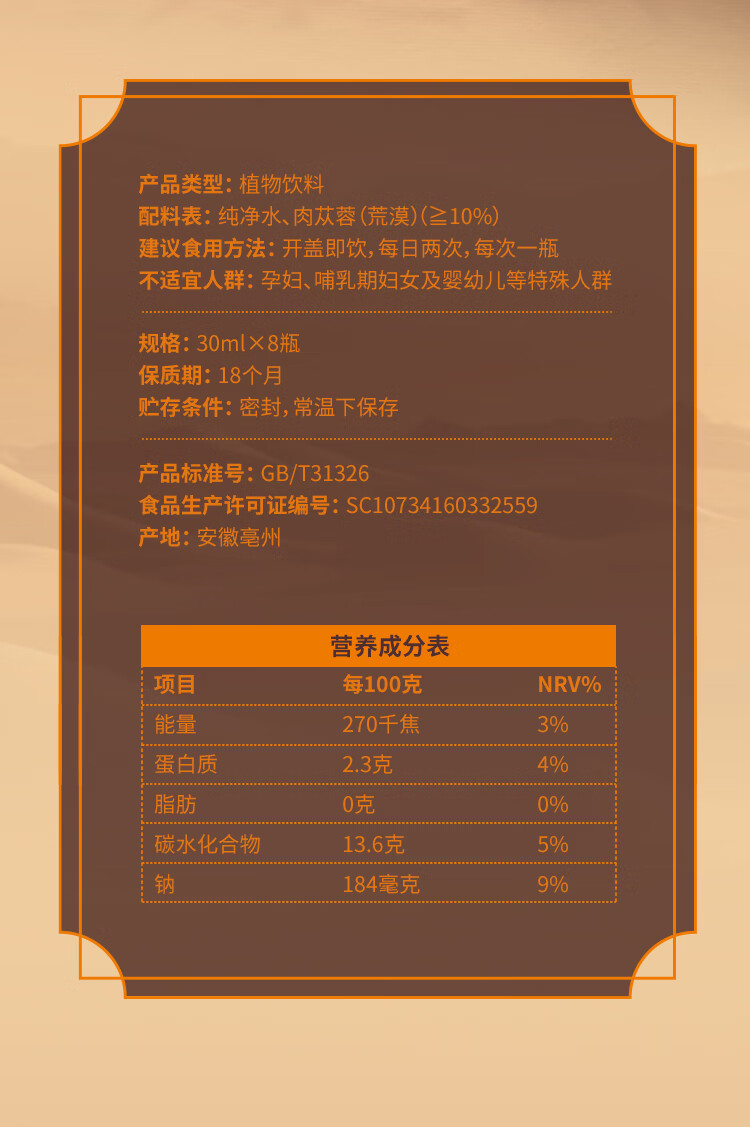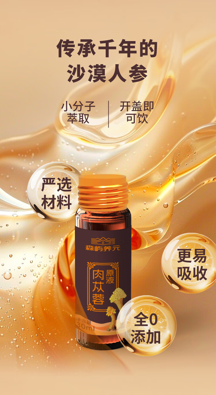 森屿养元肉苁蓉原浆口服液原液荒漠肉苁蓉男养生饮品滋补原浆浓缩液礼盒装 10%肉苁蓉原浆(30ml*8瓶)【礼盒款】