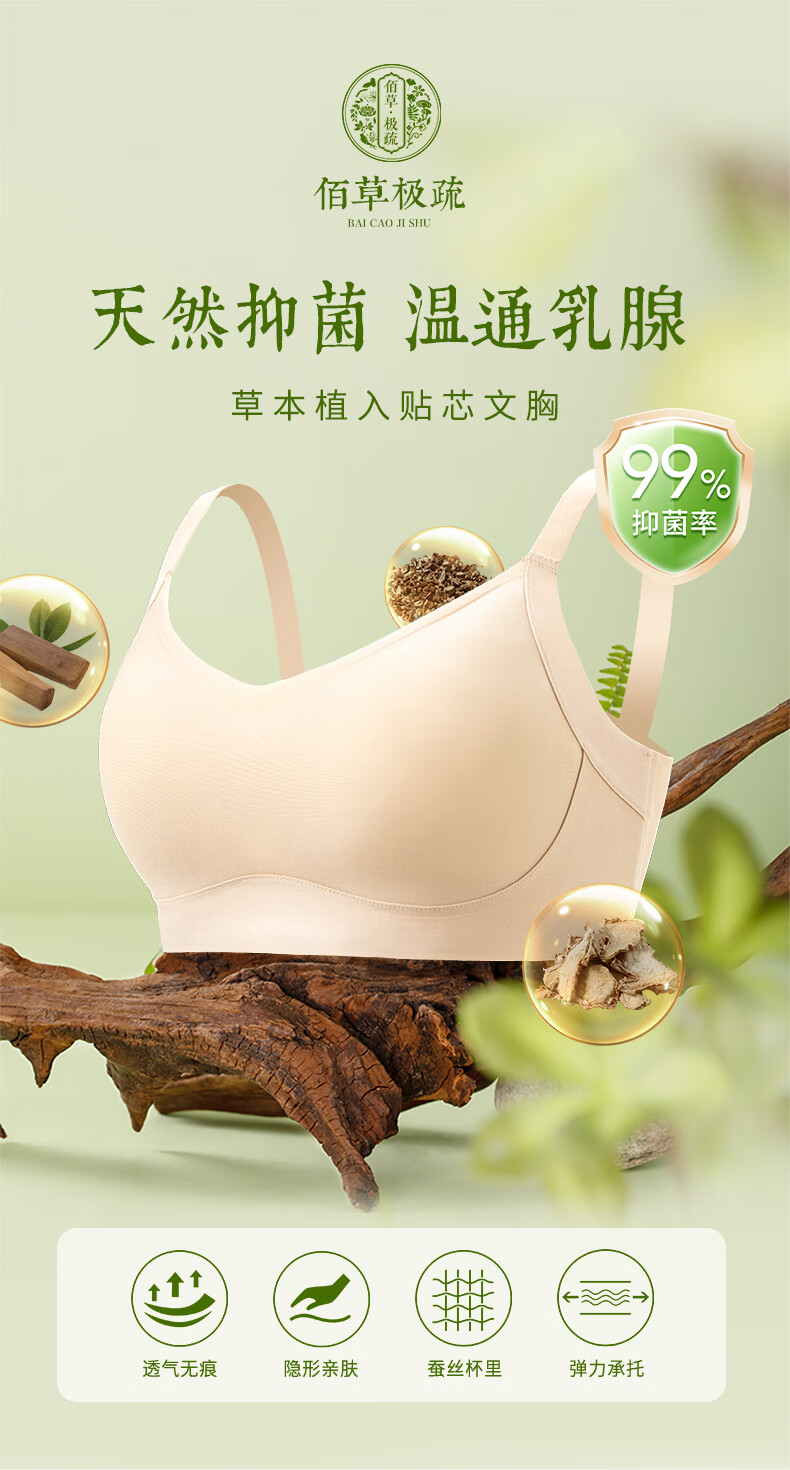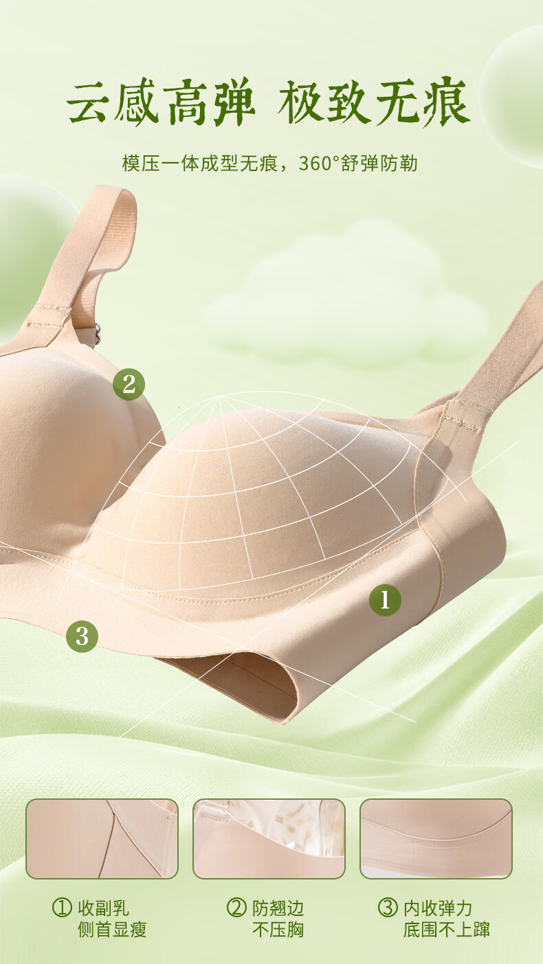 佰草极疏内衣女士文胸无痕无钢圈草本胸罩聚拢小胸显大防下垂外扩收副乳贴 贴芯罩 象牙肤【隐形亲肤】 L 【80ABC/体重105-120斤】