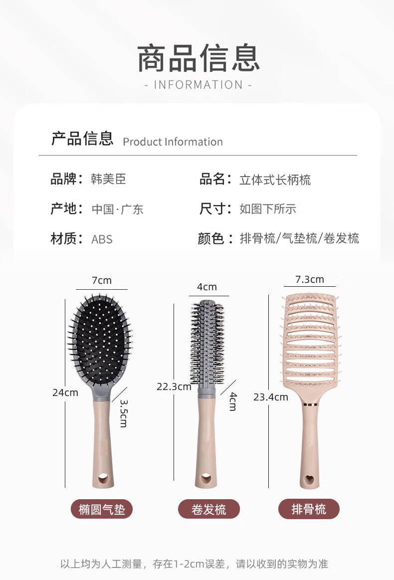 韩美臣气垫梳气囊梳卷发梳女男通用长发梳子女便携家用按摩梳排骨梳滚梳 气垫梳 1件