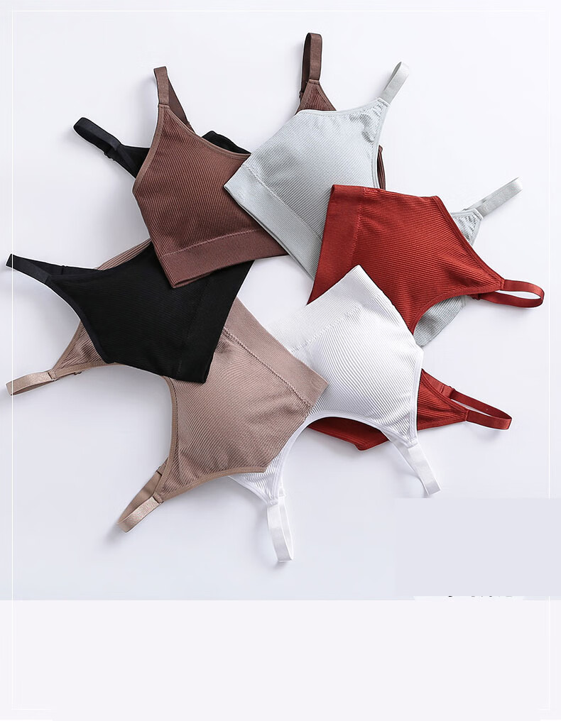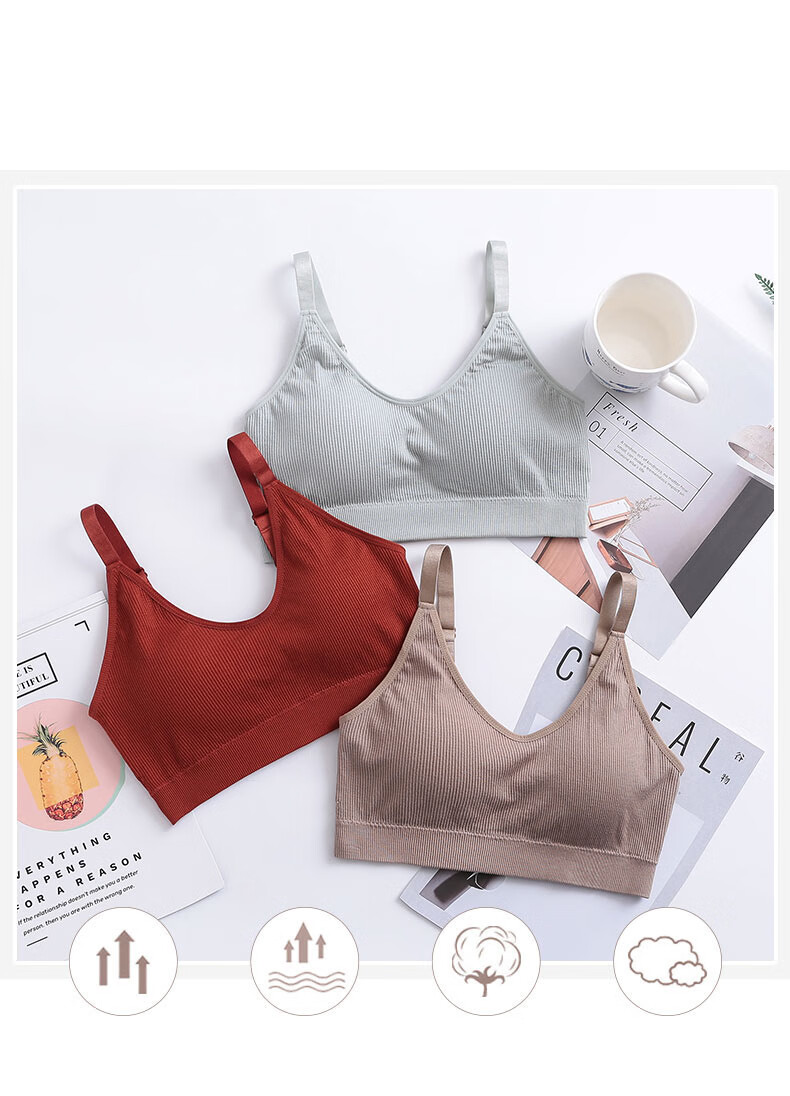俞兆林2件内衣女小胸无钢圈胸罩学生少女运动背心式美背吊带文胸薄款 (1黑色+1卡其)-美背文胸 均码 (85-125斤)