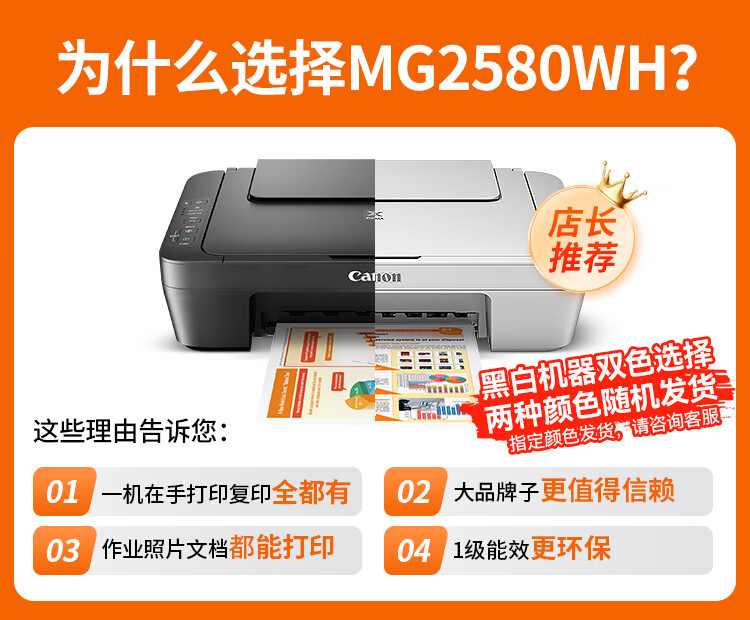 佳能(Canon) MG2580WH打印复印扫描一体机喷墨彩色打印机家用照片学生办公可加墨 套餐二:2580黑彩连喷加墨+黑彩墨水4瓶【推荐】