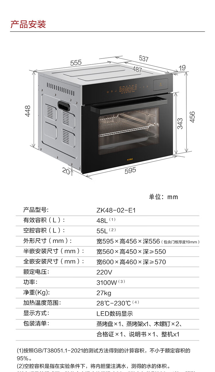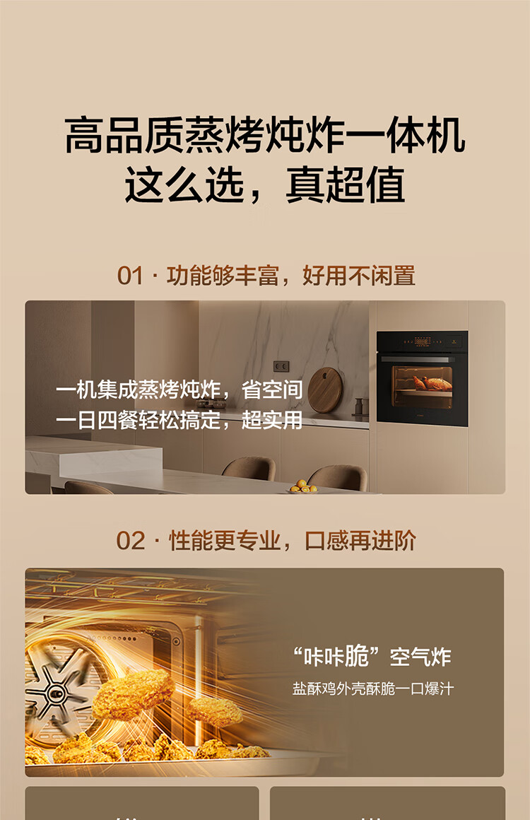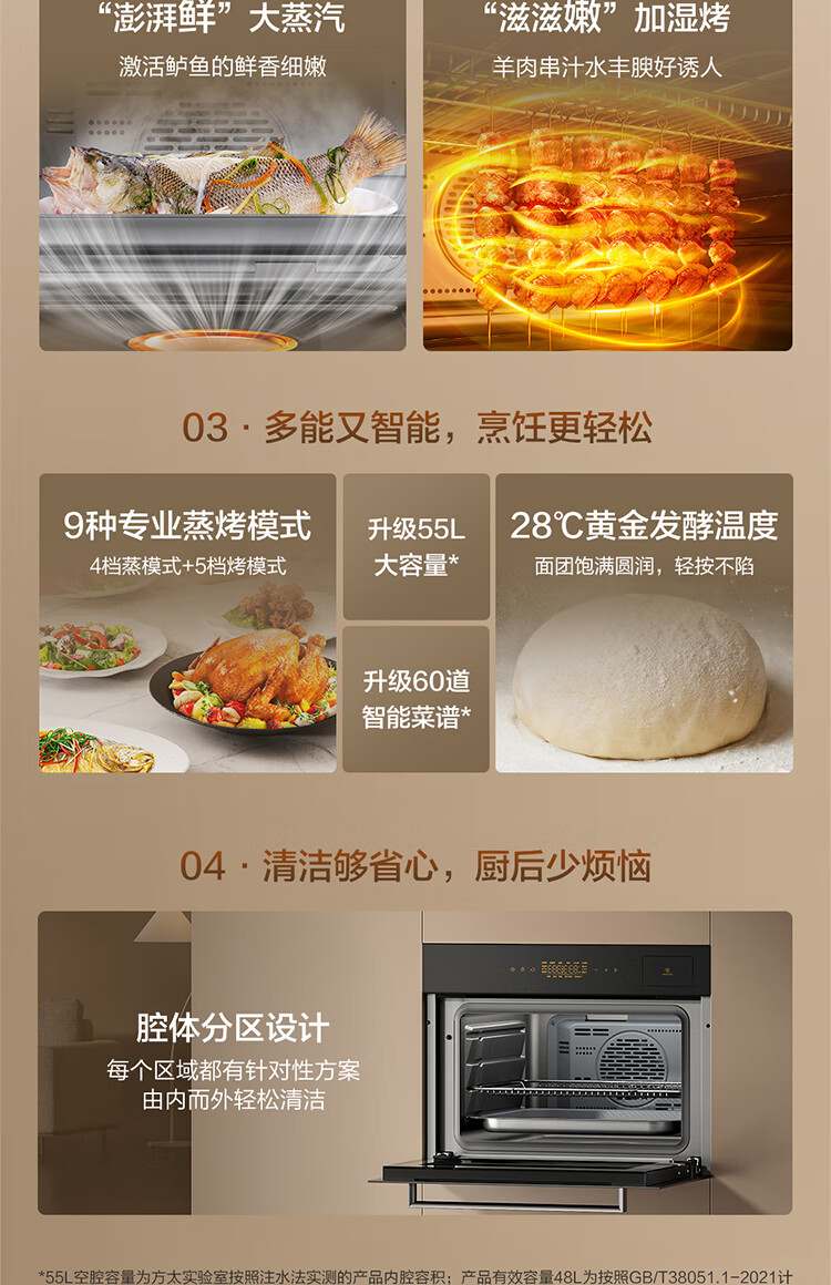 方太(FOTILE)蒸烤箱一体机嵌入式蒸箱烤箱家用多功能大容量55L*蒸烤一体机蒸烤空气炸锅炖*四合一02-E1