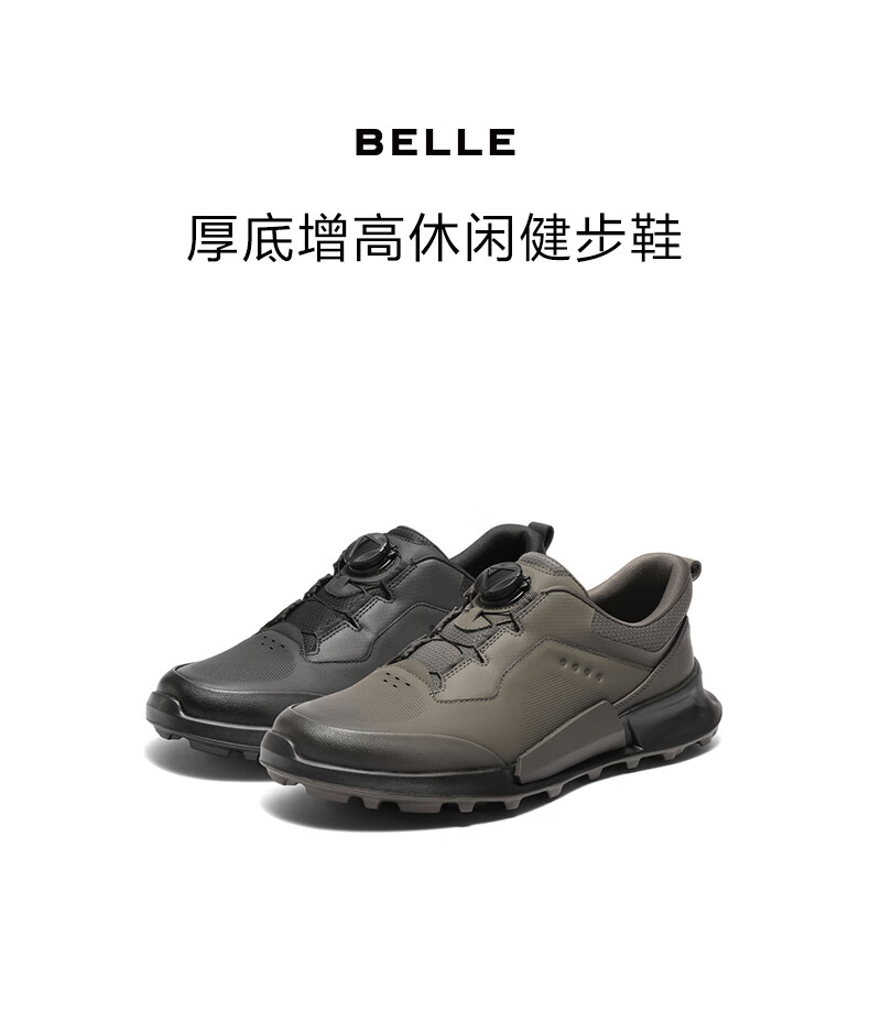 百丽(Belle)厚底增高健步鞋男2025秋季新款旋钮扣户外休闲运动鞋A2213CM5 黑色 41 (255mm)