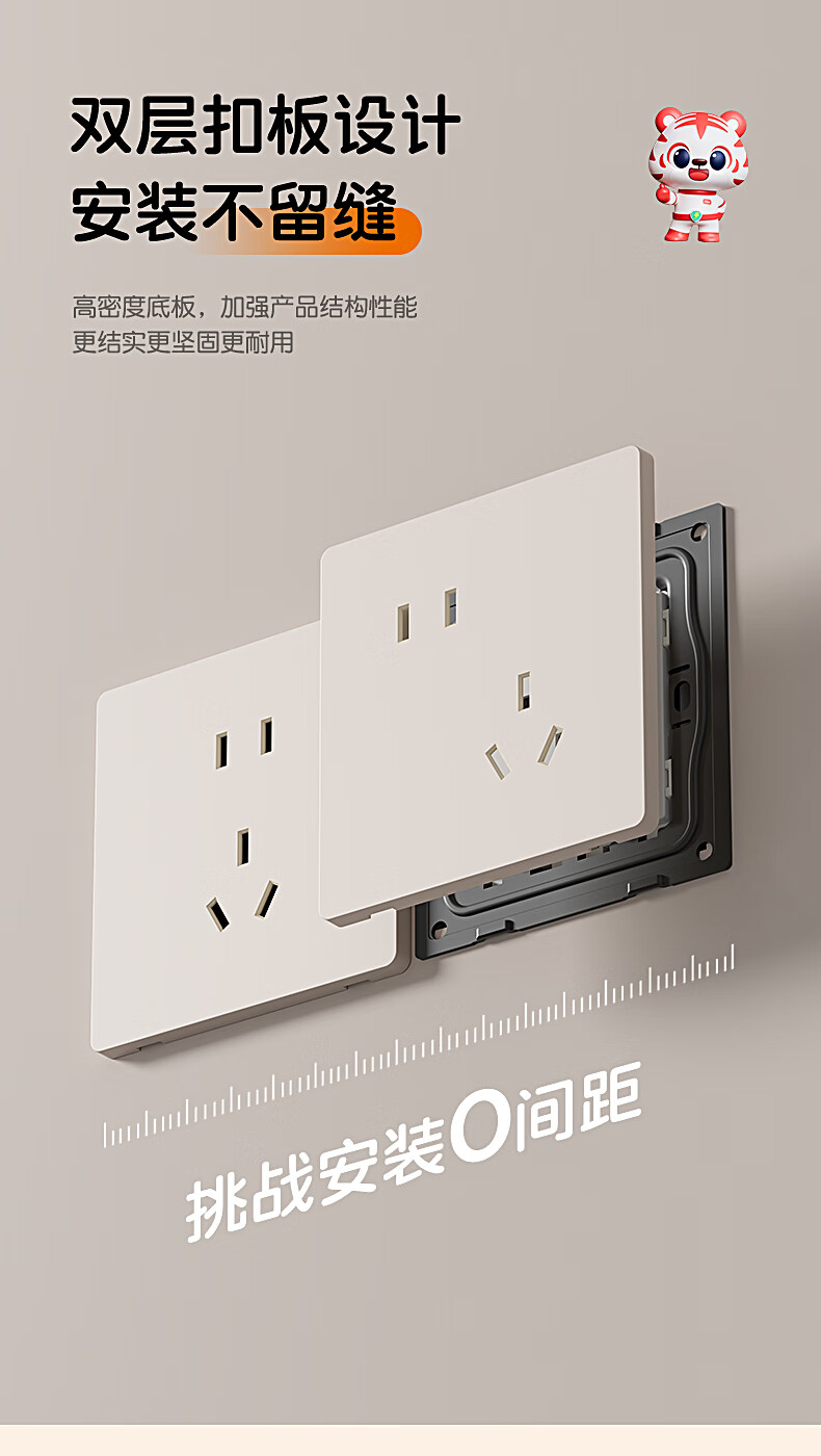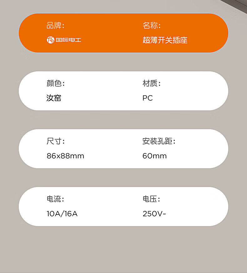 FDD国际电工超薄开关插座汝窑全屋电源插座极简家用墙壁86型一开五孔面板 空白面板