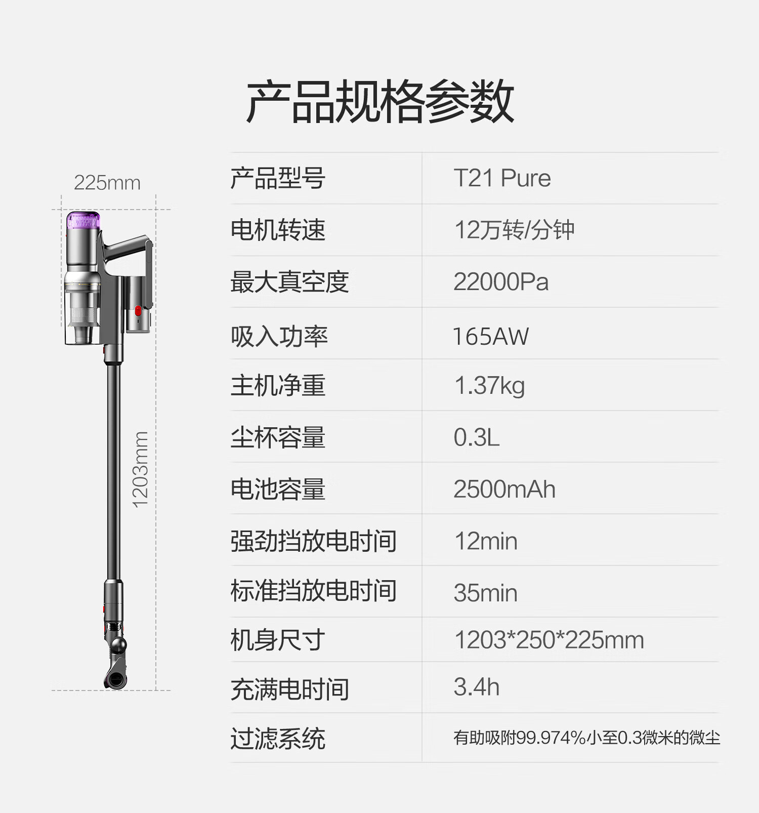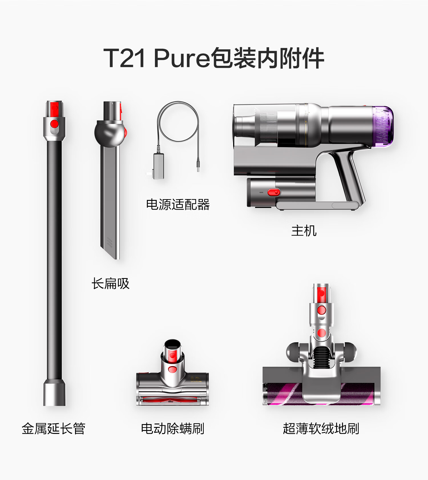 小狗无线吸尘器家用除螨手持大吸力除螨吸尘机宠物家庭适用T21 Pure