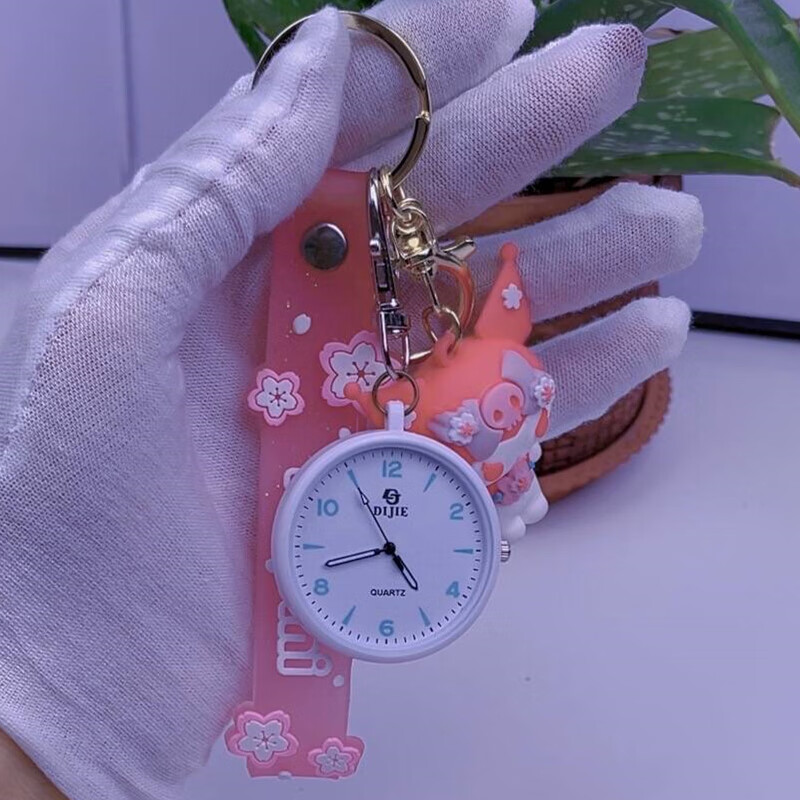 帝杰【厂家直供】大数字清晰夜光表钥匙扣挂表护士表学生考试石英表防 白色(夜光款)