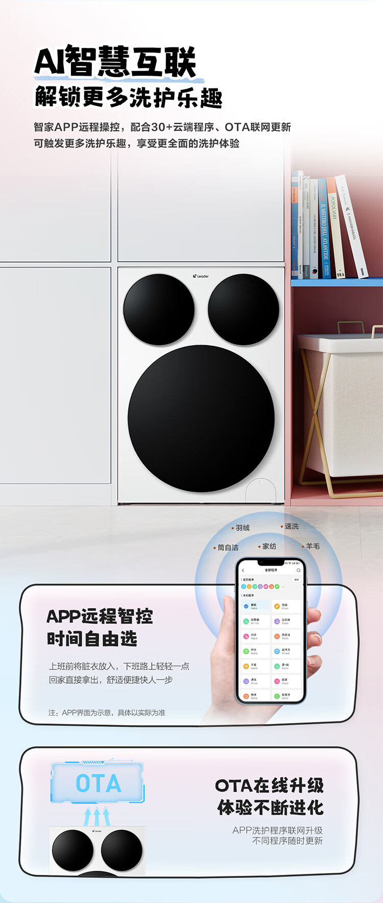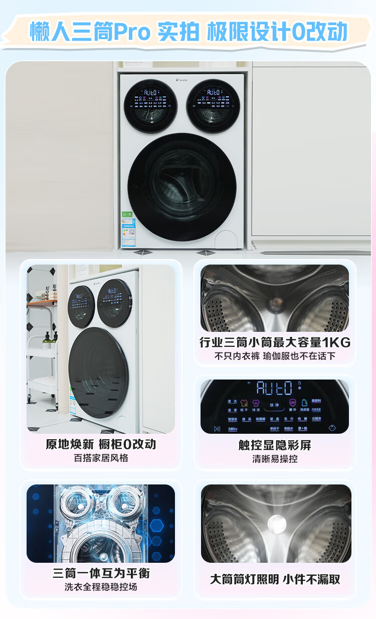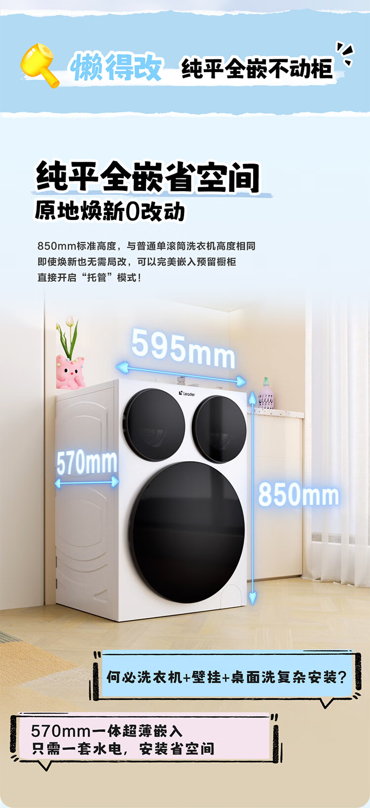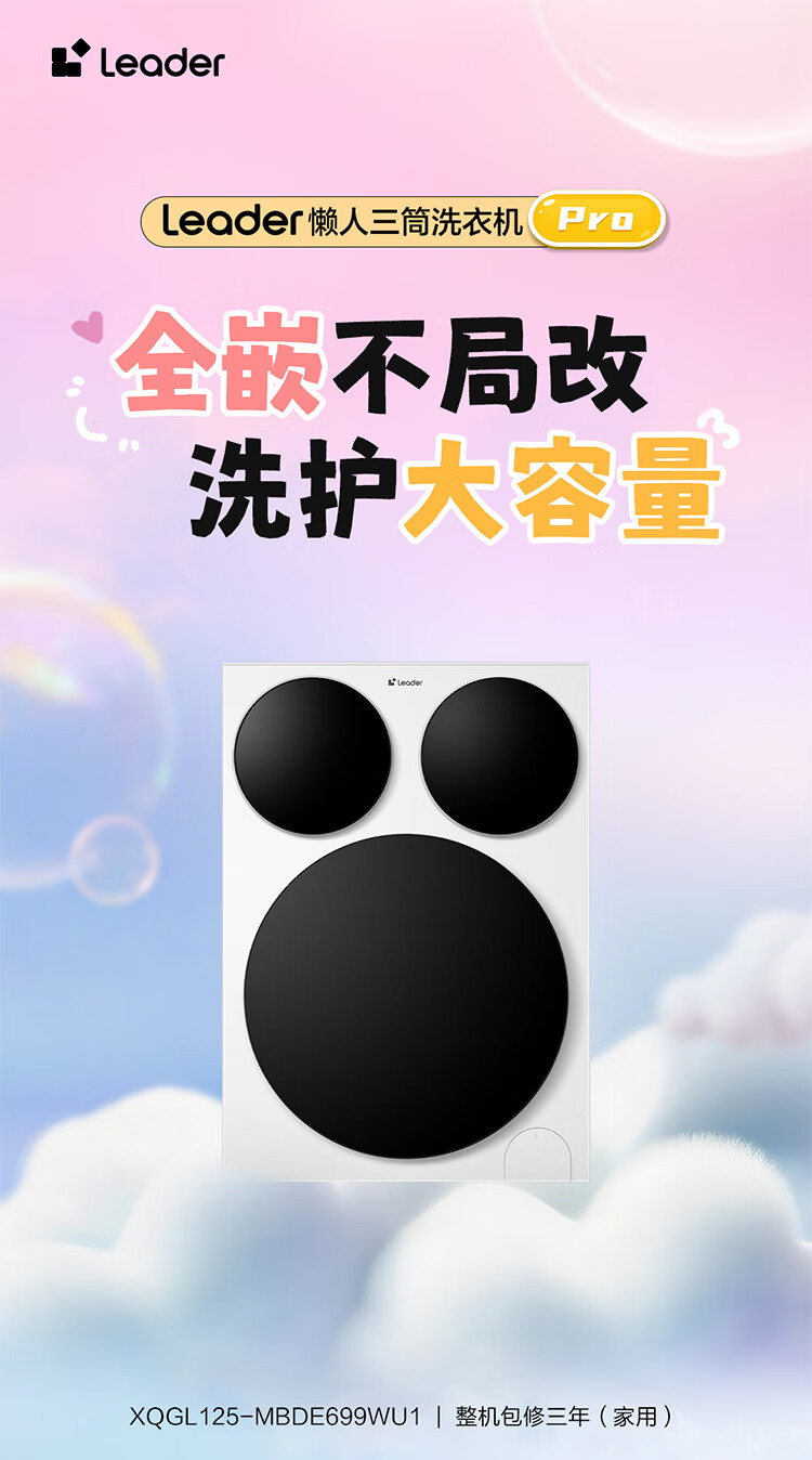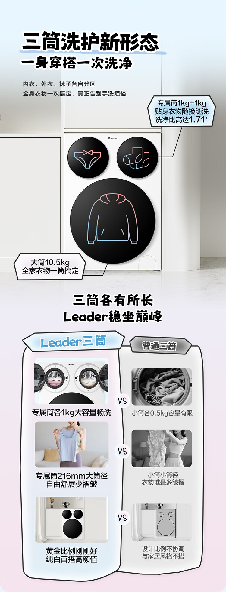 统帅(Leader)海尔智家懒人三筒洗衣机Pro 12.5公斤直驱全自动 XQGL125-MBDE699WU1 三桶 国家补贴 林高远同款
