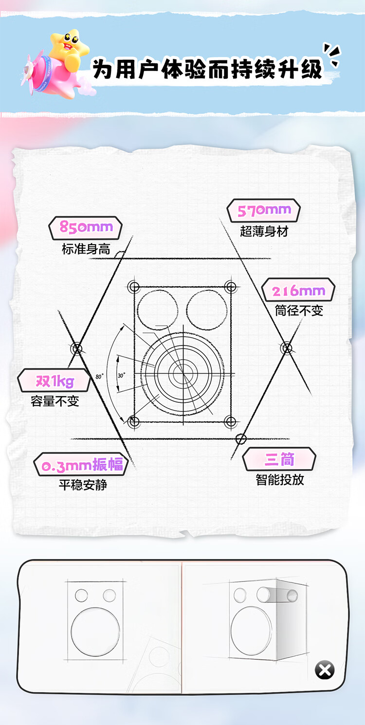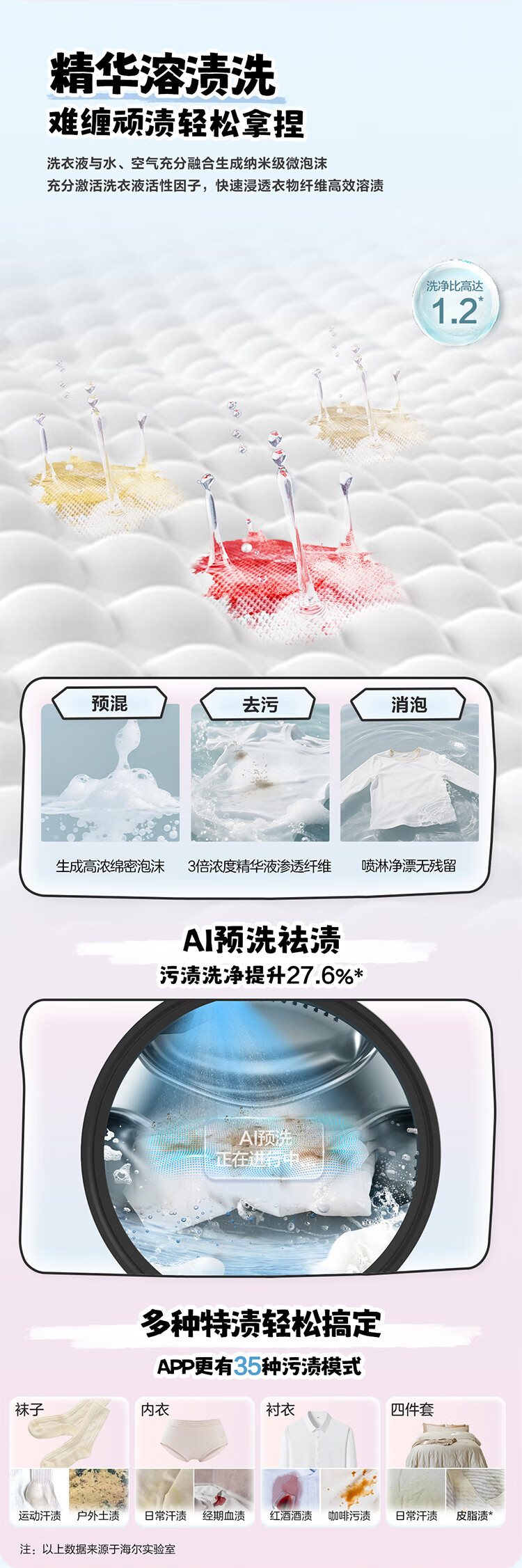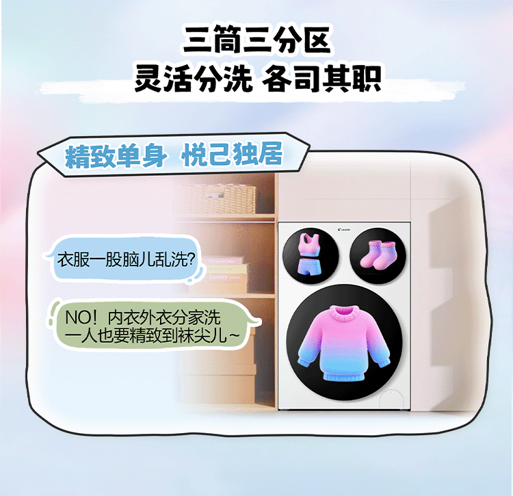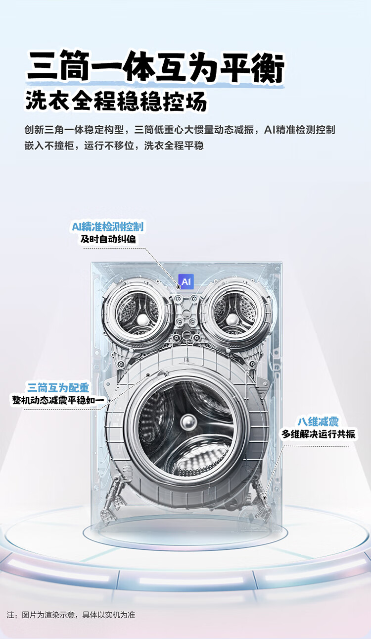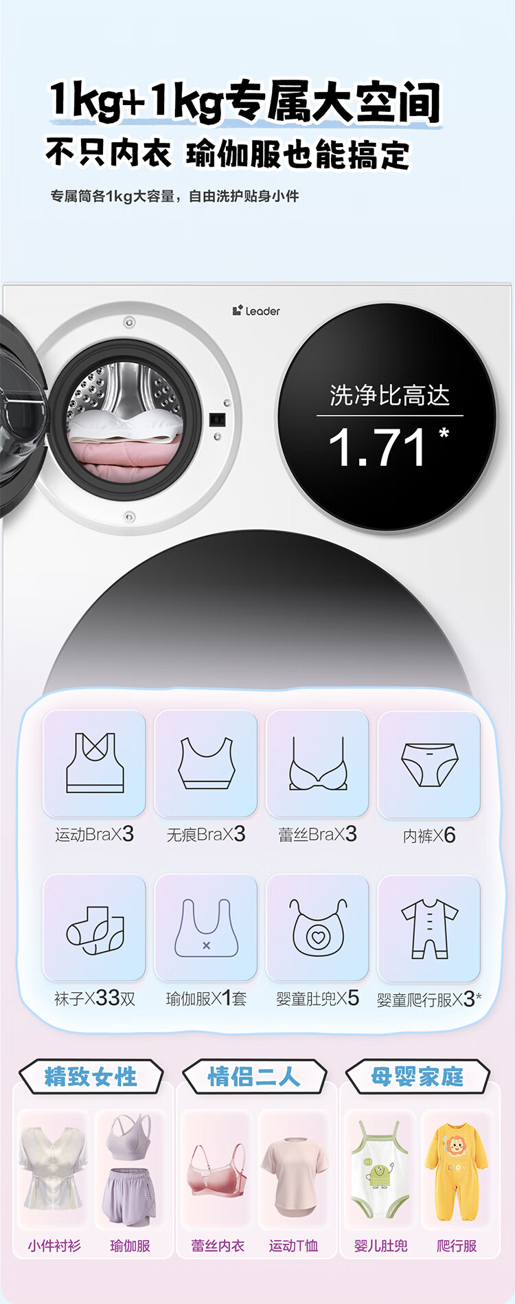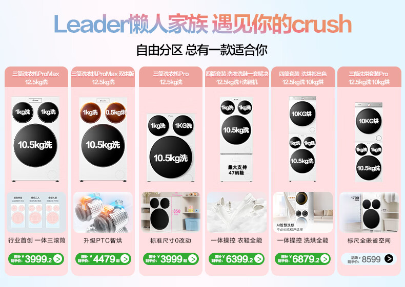 统帅(Leader)海尔智家懒人三筒洗衣机Pro 12.5公斤直驱全自动 XQGL125-MBDE699WU1 三桶 国家补贴 林高远同款