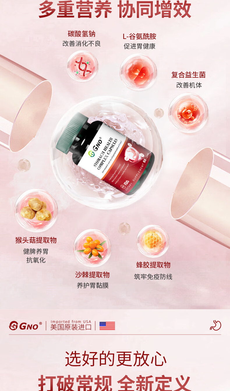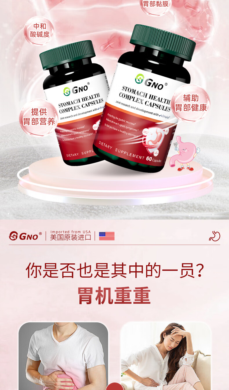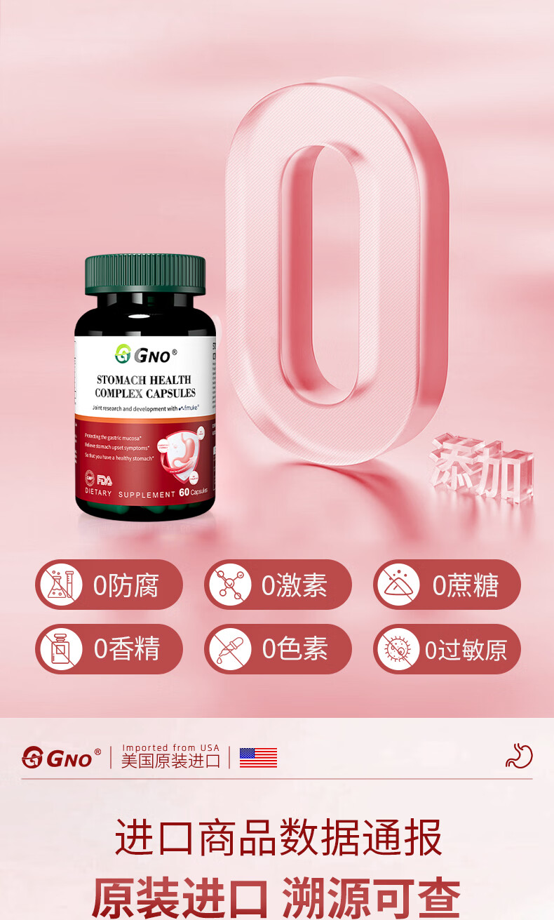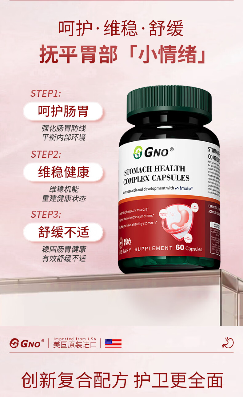 GNO原装进口养胃健康复合胶囊调节肠胃促消化提升胃动力 60粒/瓶