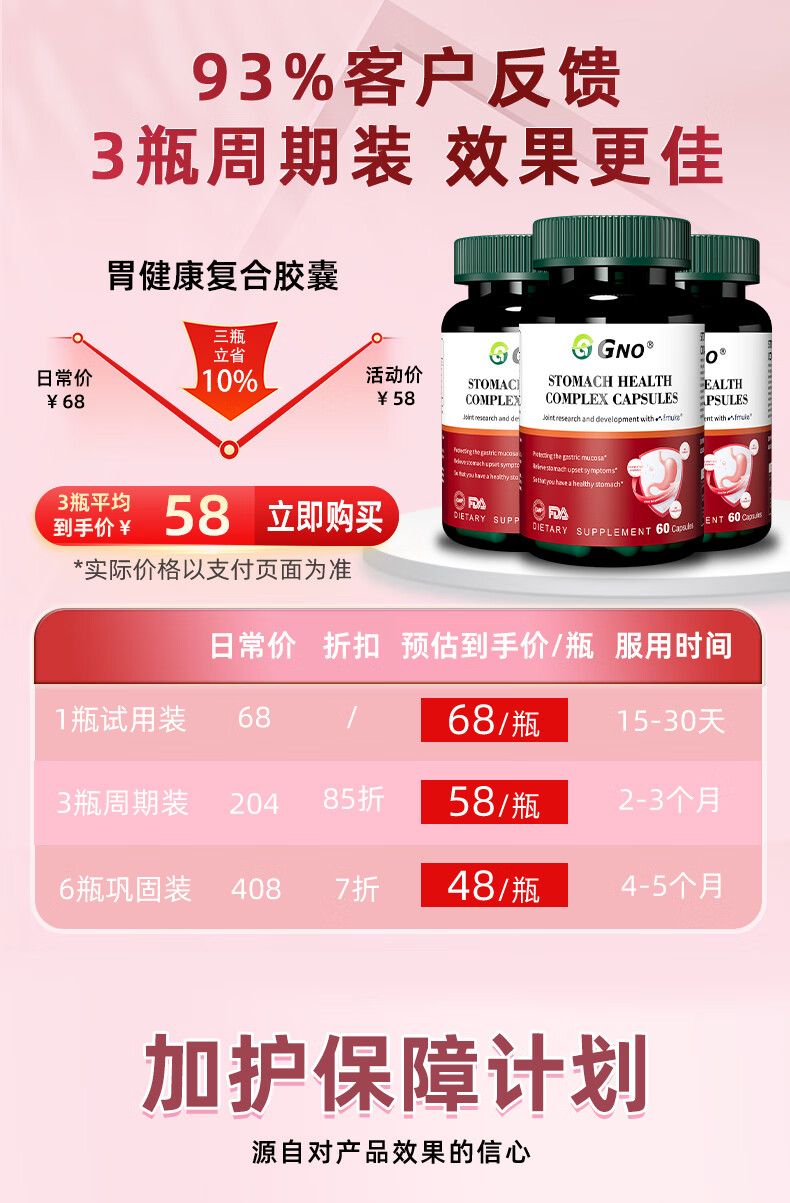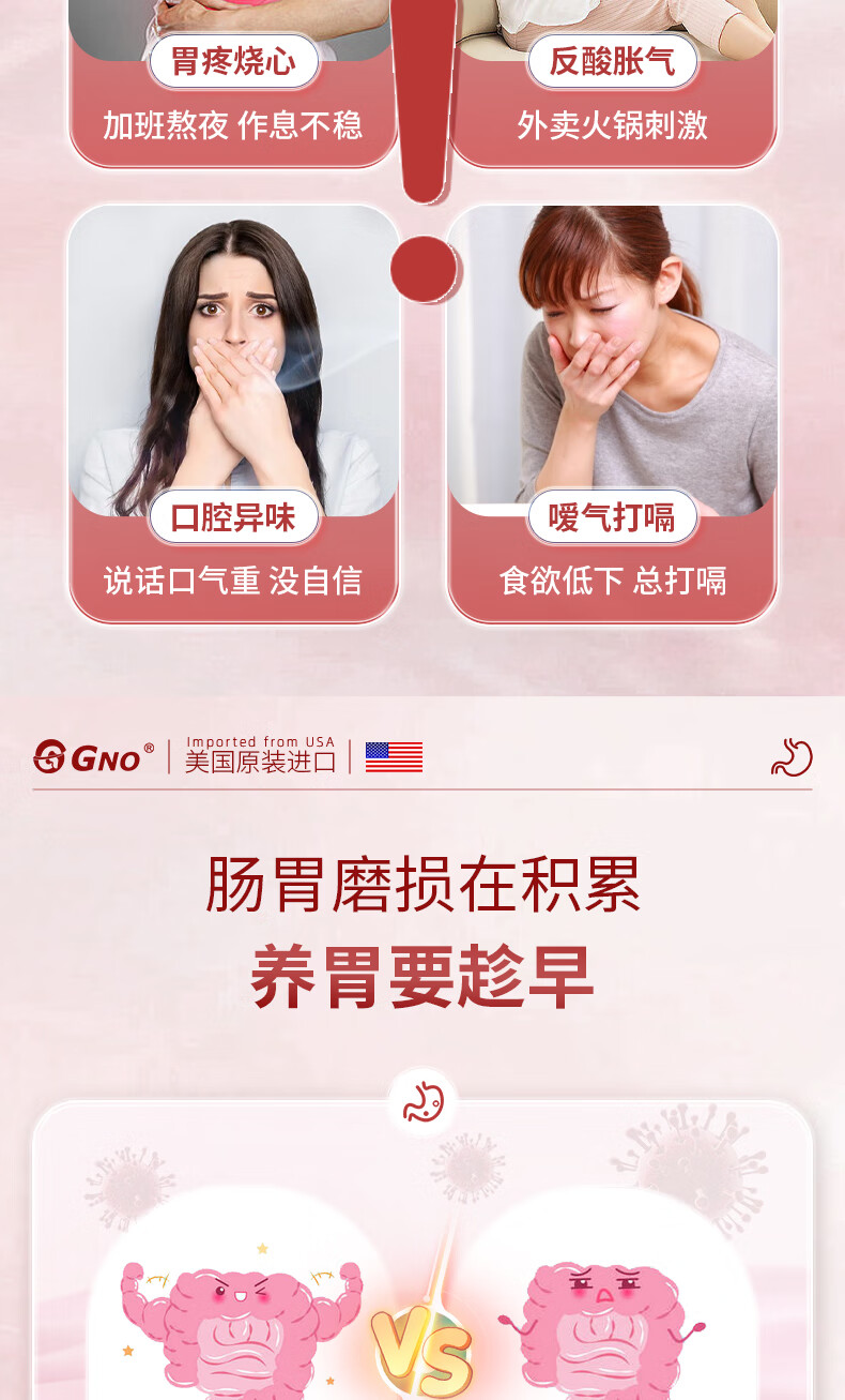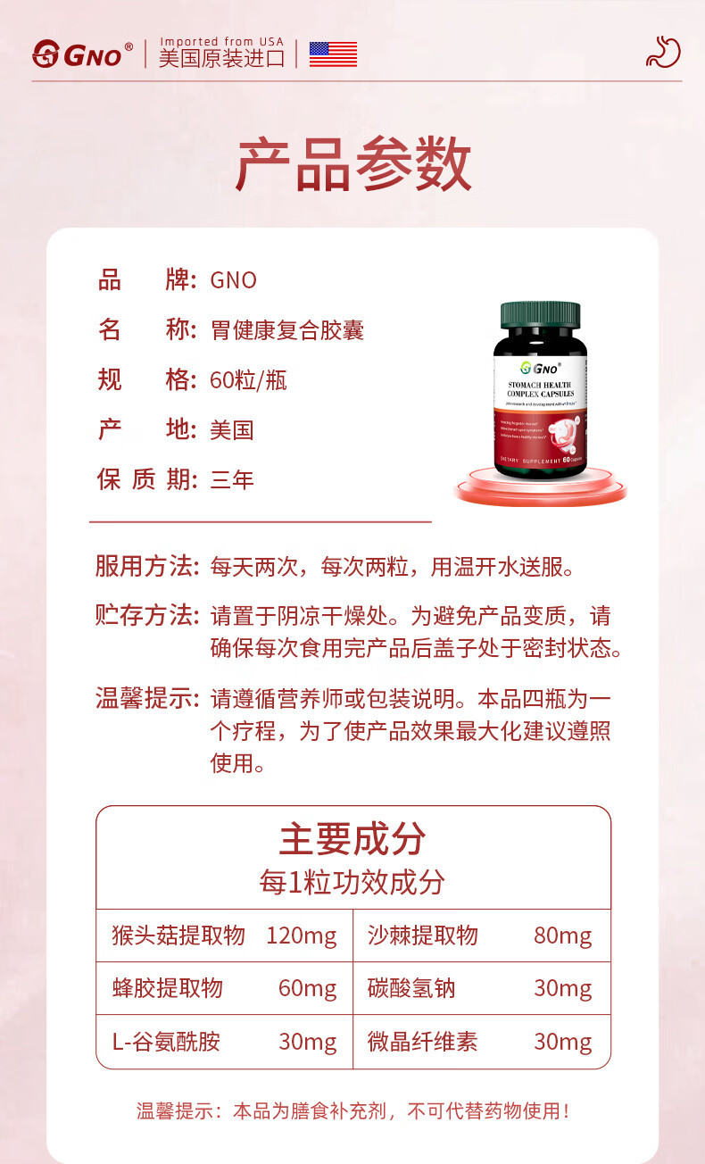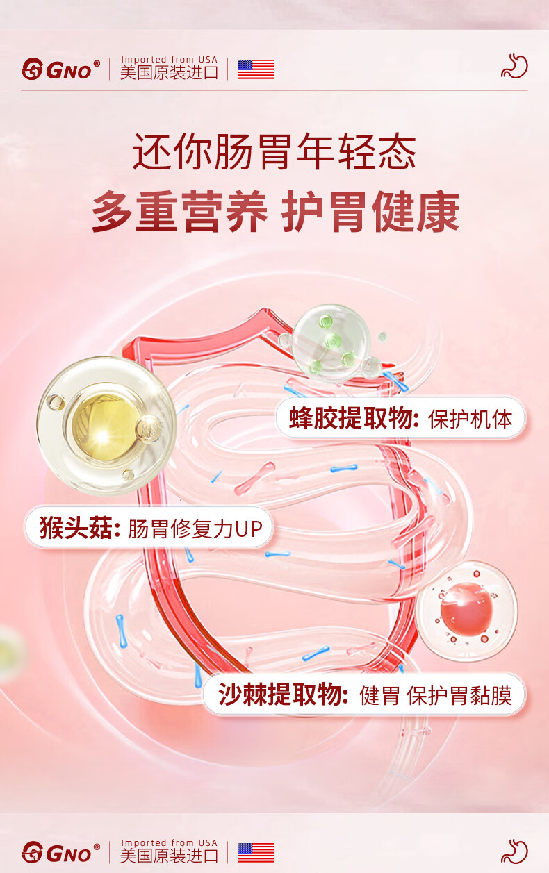 GNO原装进口养胃健康复合胶囊调节肠胃促消化提升胃动力 60粒/瓶