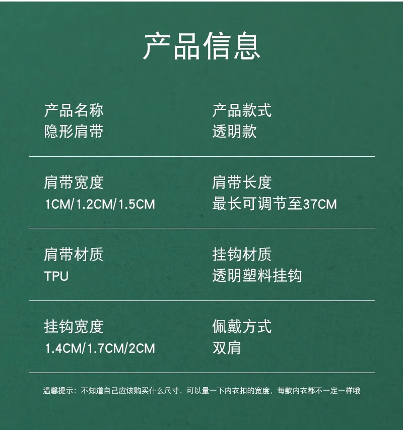 朋意透明肩带隐形内衣带无痕防滑加长替换细带文胸磨砂可露外胸罩带子 透明款1对装(宽1.0cm) 无规格