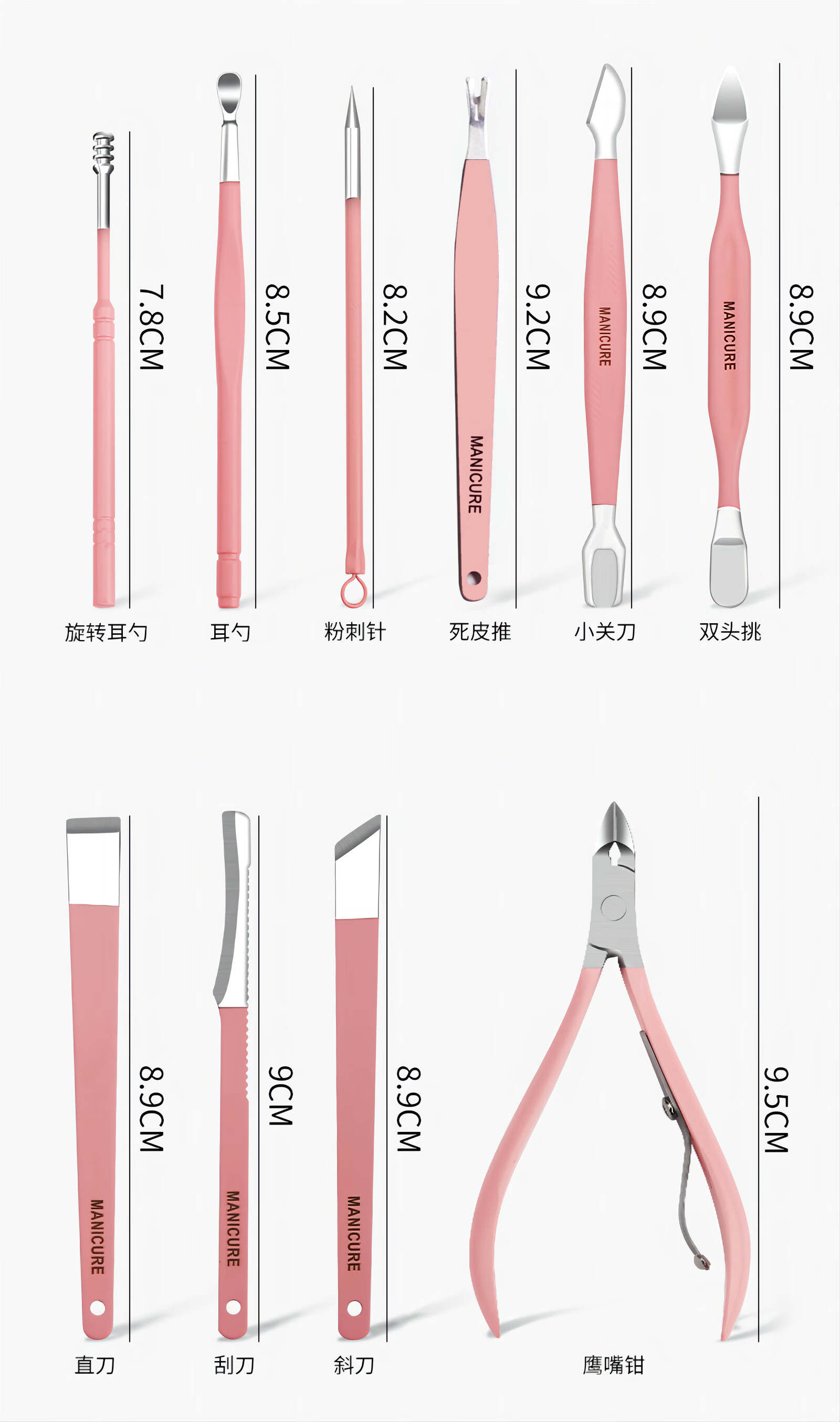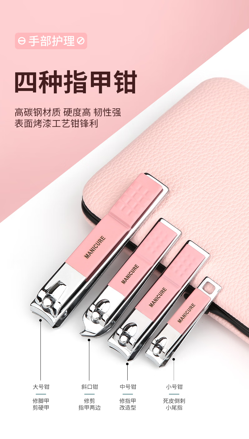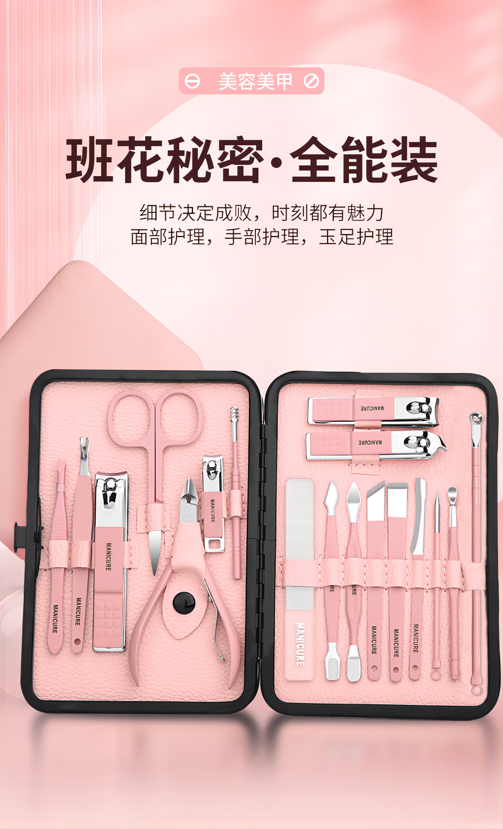 古朵猫家用18件套指甲刀套装便携指甲剪刀鹰嘴指甲钳耳勺修甲工具 可爱粉 18件 套