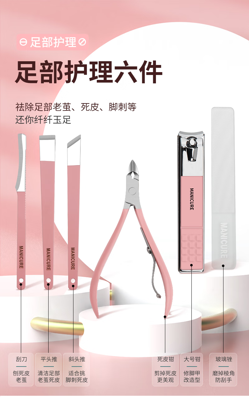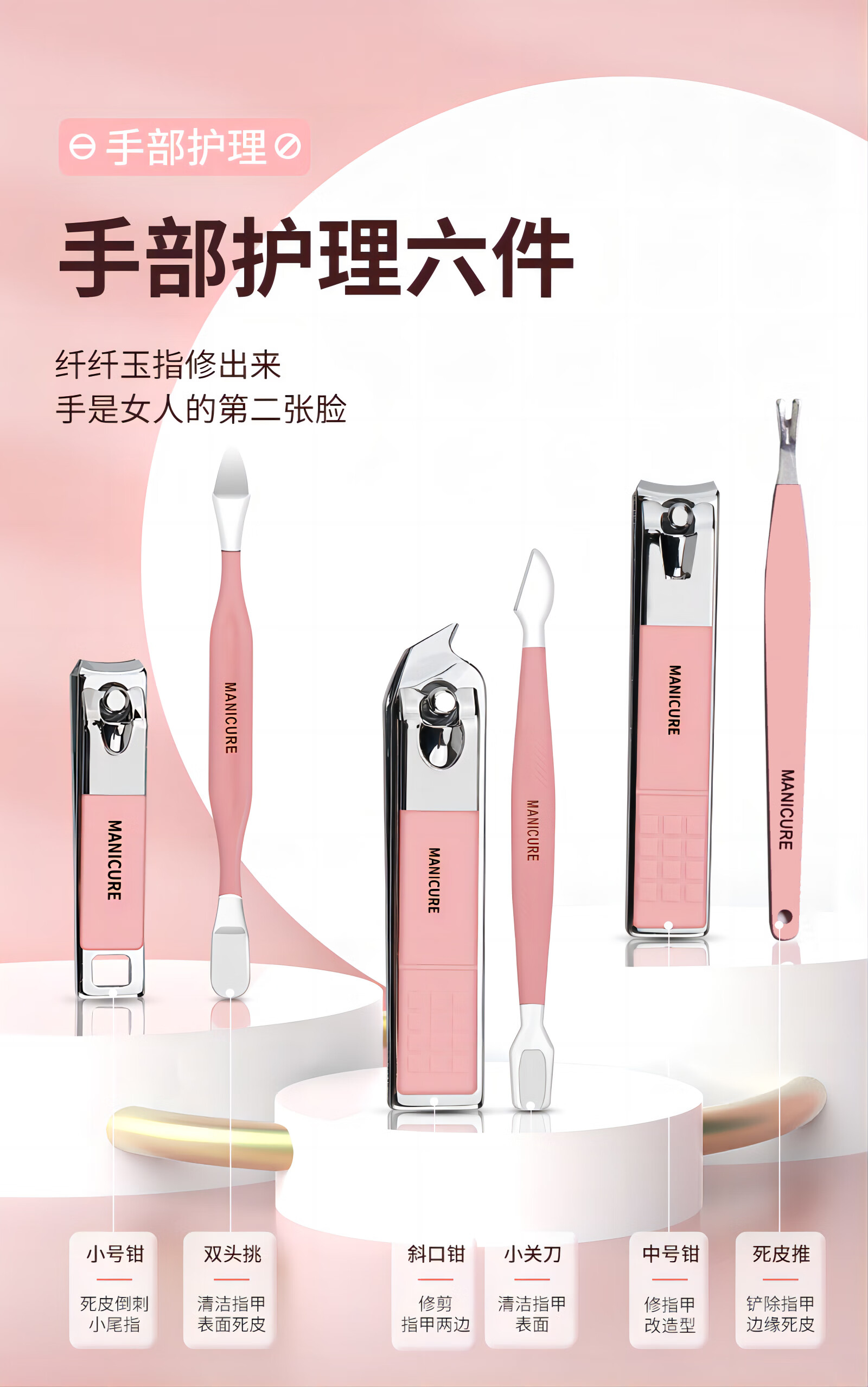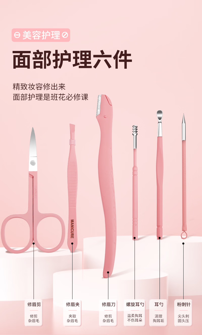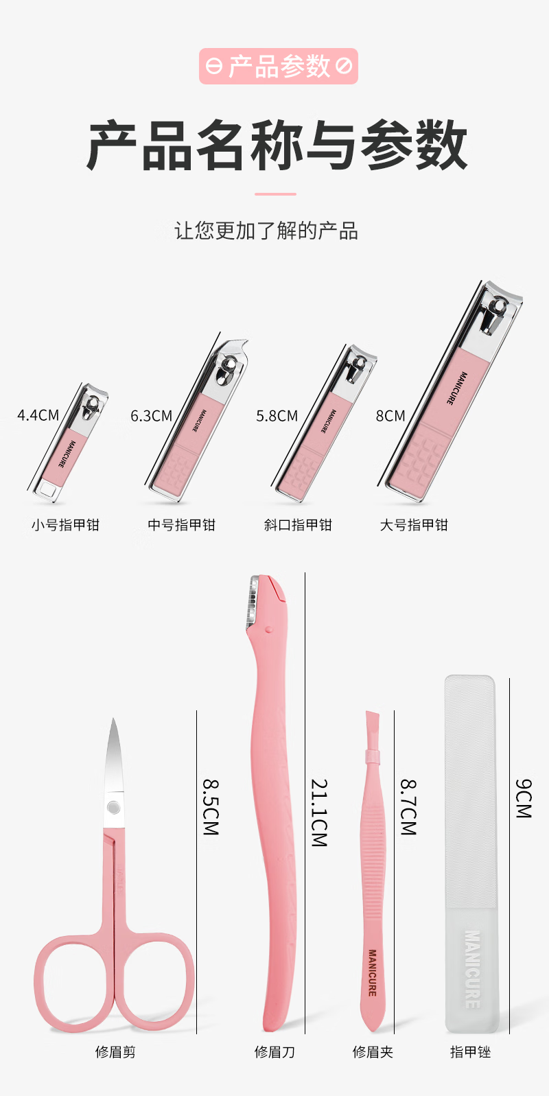 古朵猫家用18件套指甲刀套装便携指甲剪刀鹰嘴指甲钳耳勺修甲工具 可爱粉 18件 套