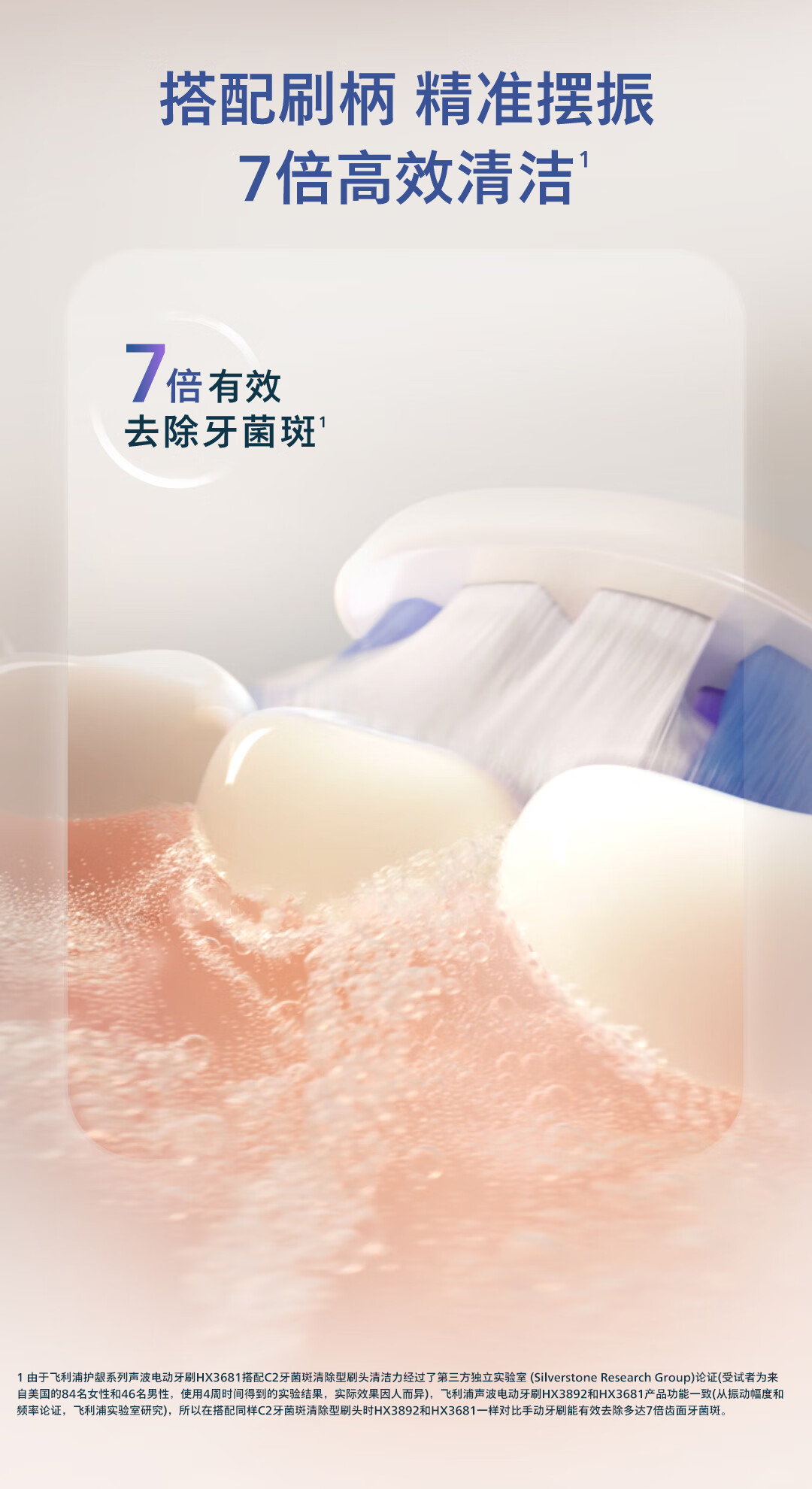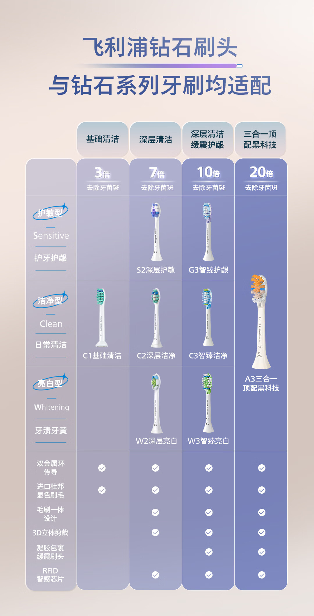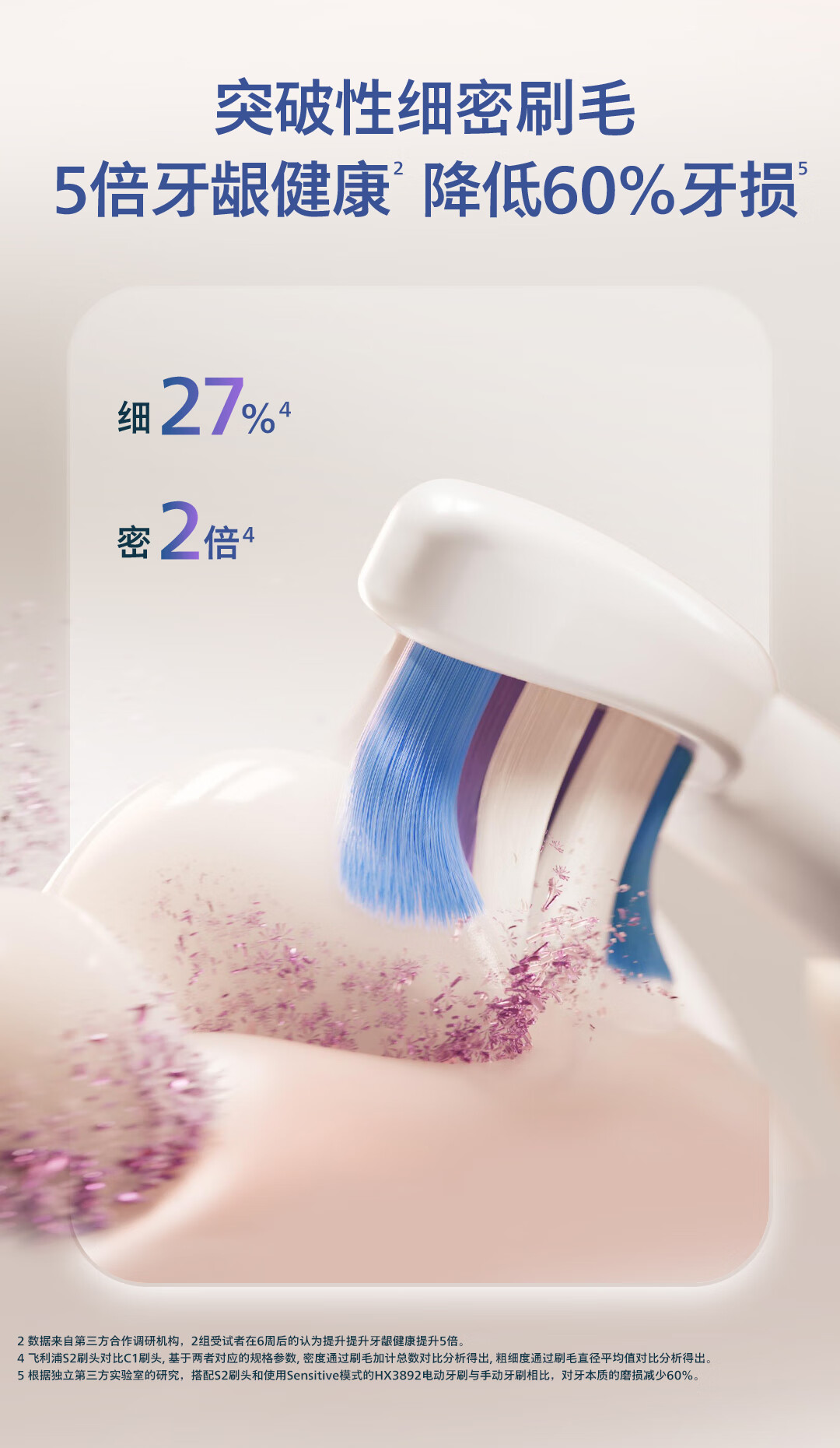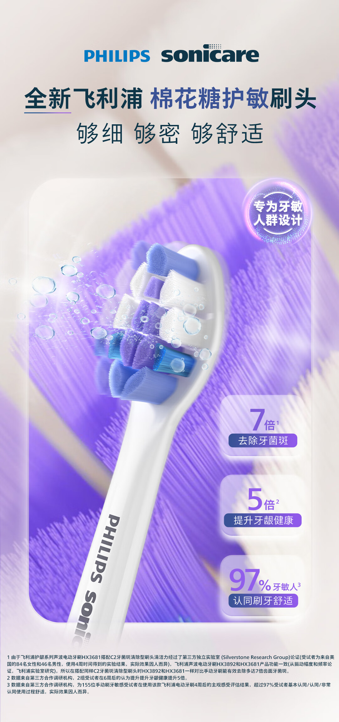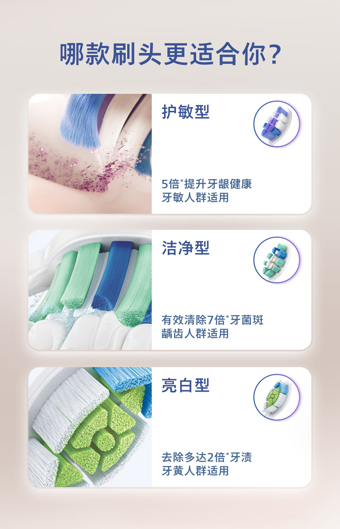 飞利浦(PHILIPS)电动牙刷头 棉花糖护敏型 适配飞利浦钻石系列 HX6053/93 3支 护敏刷头-HX6053/93