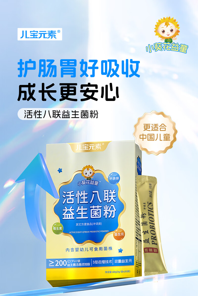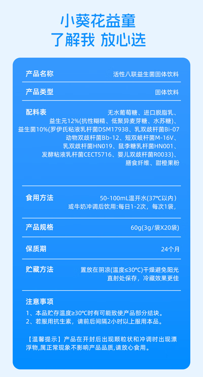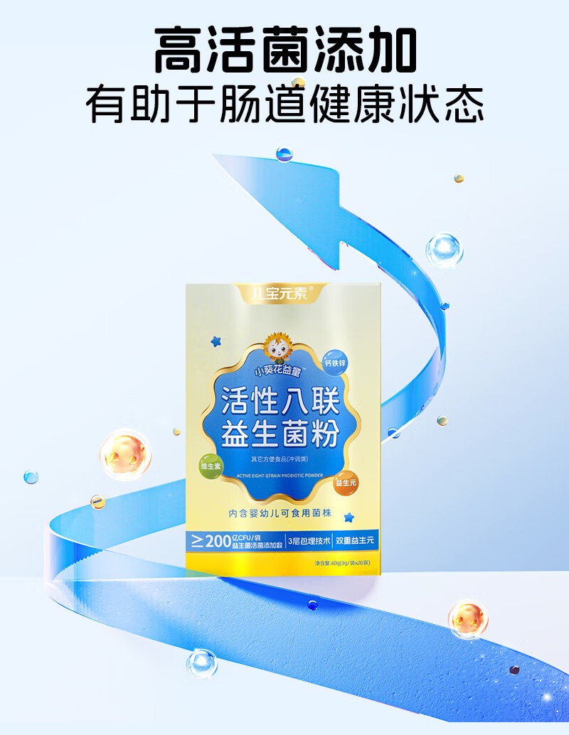 小葵花益童活性八联益生菌冻干粉儿童鼠李糖乳杆菌动物双歧杆菌Bb12益生元 【活性八联益生菌粉1盒】20袋
