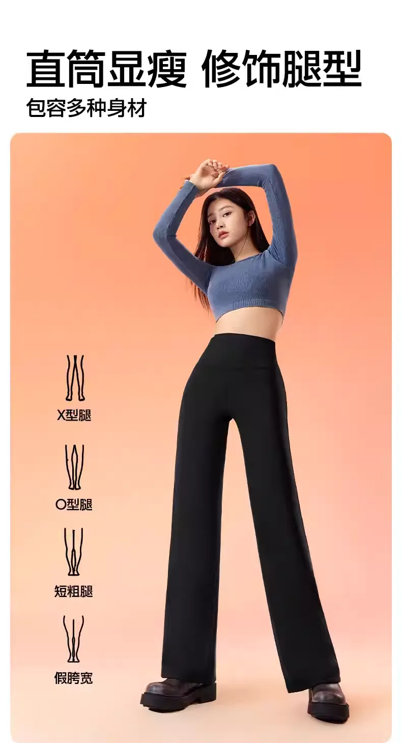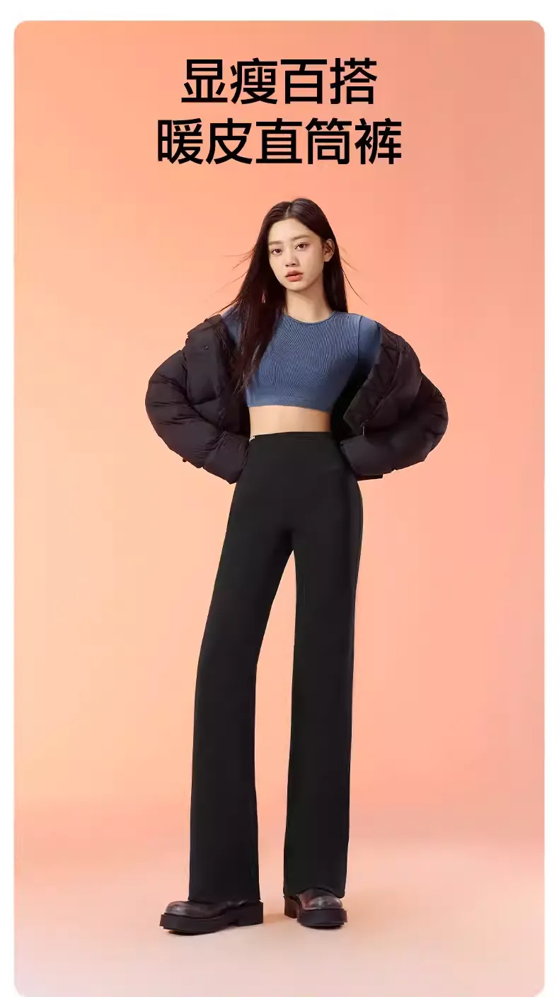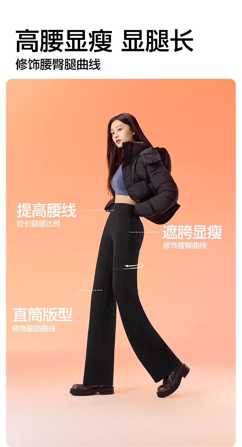 SIINSIIN【专享】阔腿裤女2024加绒裤子垂感休闲简约直筒裤黑色高腰收腹裤 【暖皮常规款】显瘦黑 加绒 M 【100-120斤】