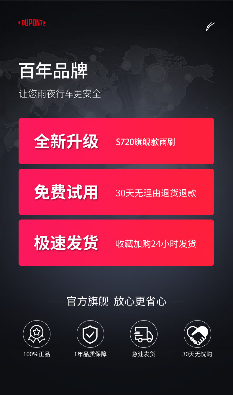 杜邦S720适用大众特斯拉奥迪奔驰雨刮器汽车雨刷器无骨雨刮片