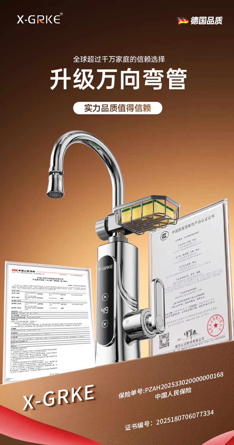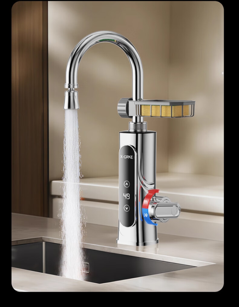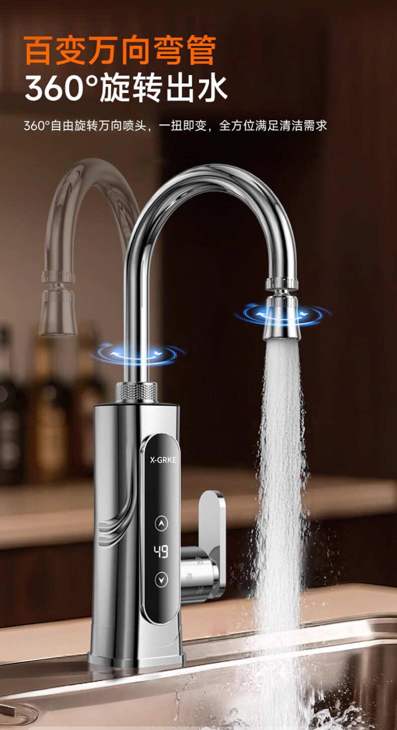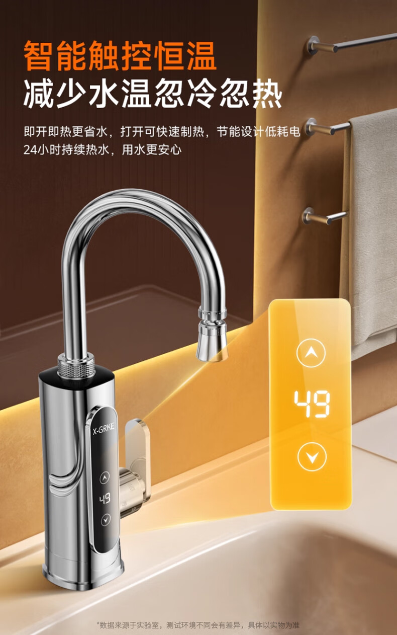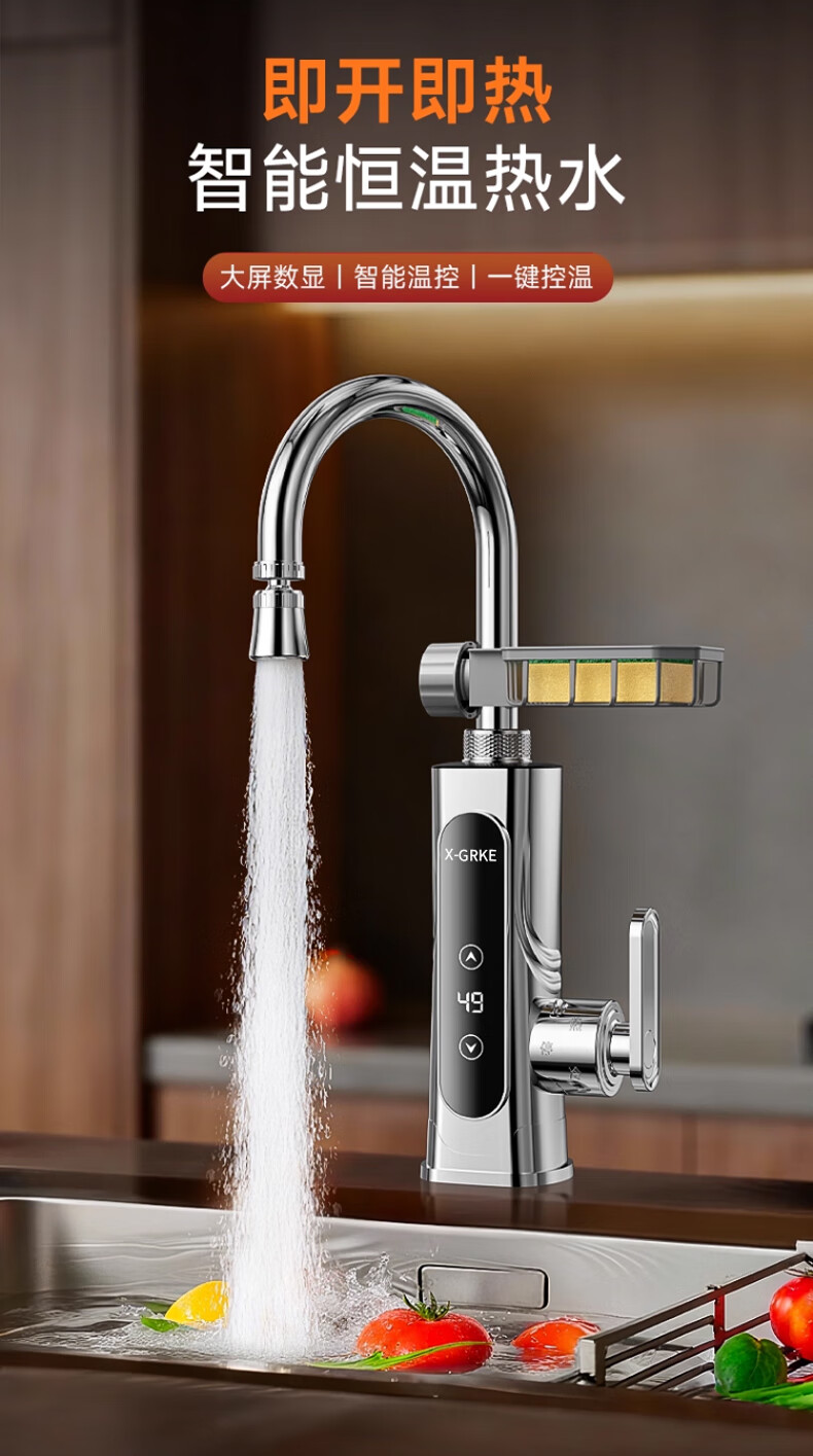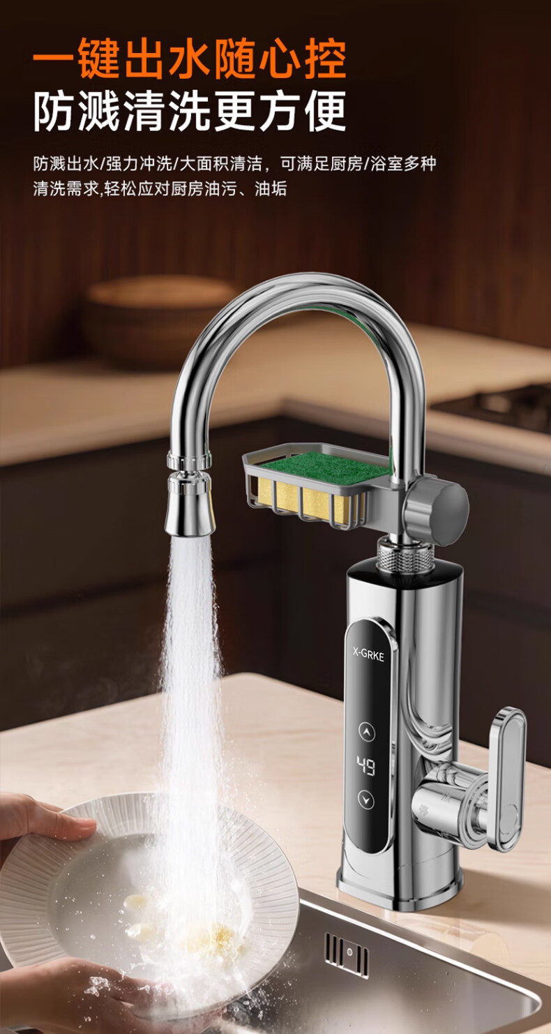 X-GRKE【德国】电热水龙头变频恒温厨房家用阳台即热式热水加热器专用速热热水器小厨宝冷热两用防漏电 万向头【变频恒温】1.1米线+漏保+置物架+软管 3秒速热丨开水即显温度丨漏电保护