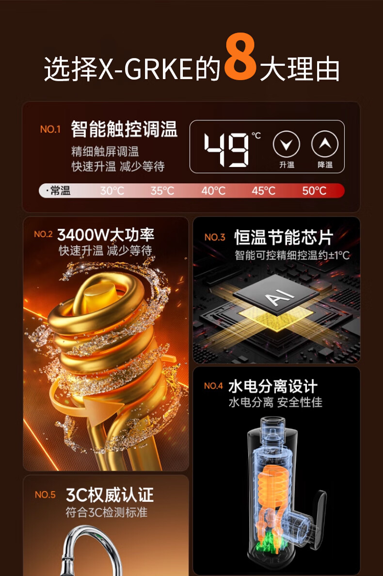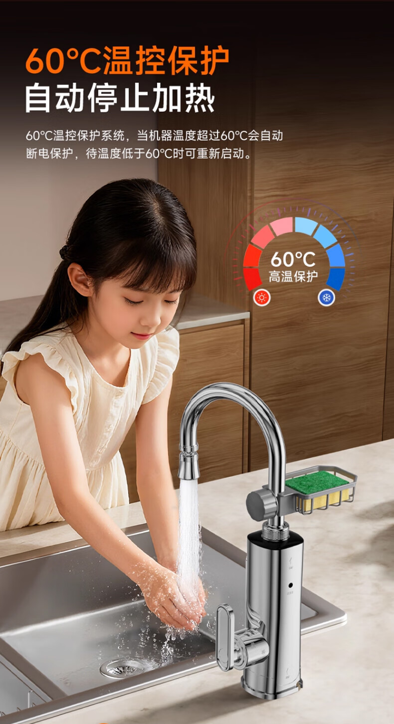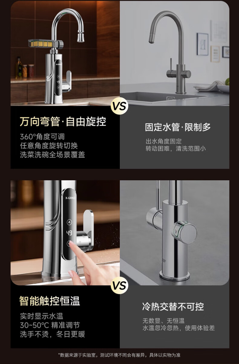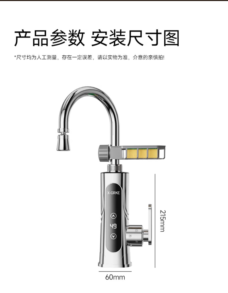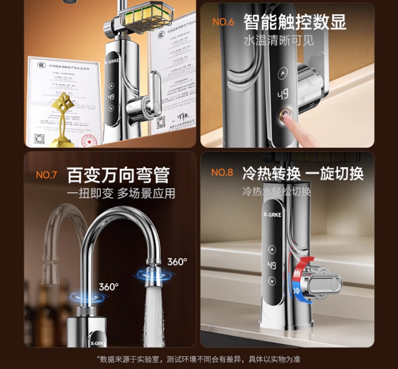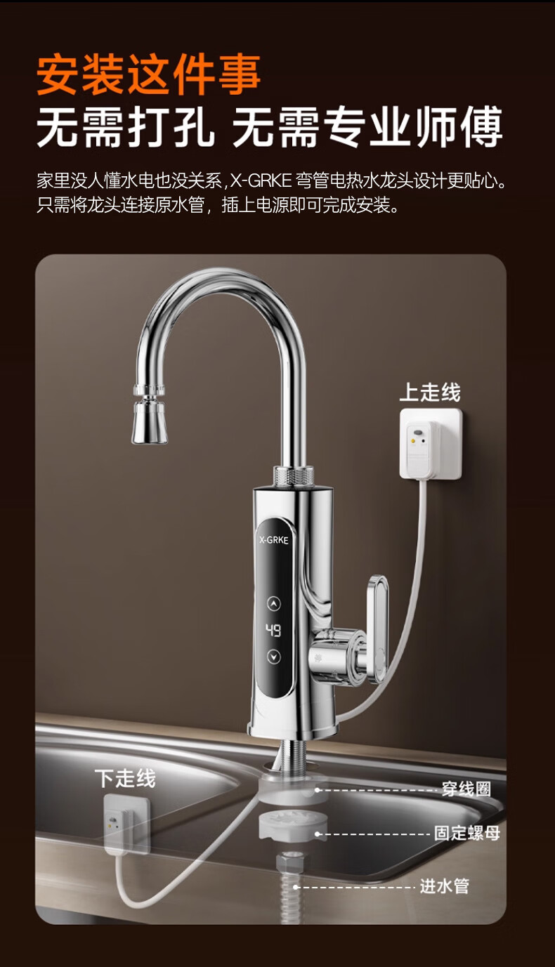 X-GRKE【德国】电热水龙头变频恒温厨房家用阳台即热式热水加热器专用速热热水器小厨宝冷热两用防漏电 万向头【变频恒温】1.1米线+漏保+置物架+软管 3秒速热丨开水即显温度丨漏电保护