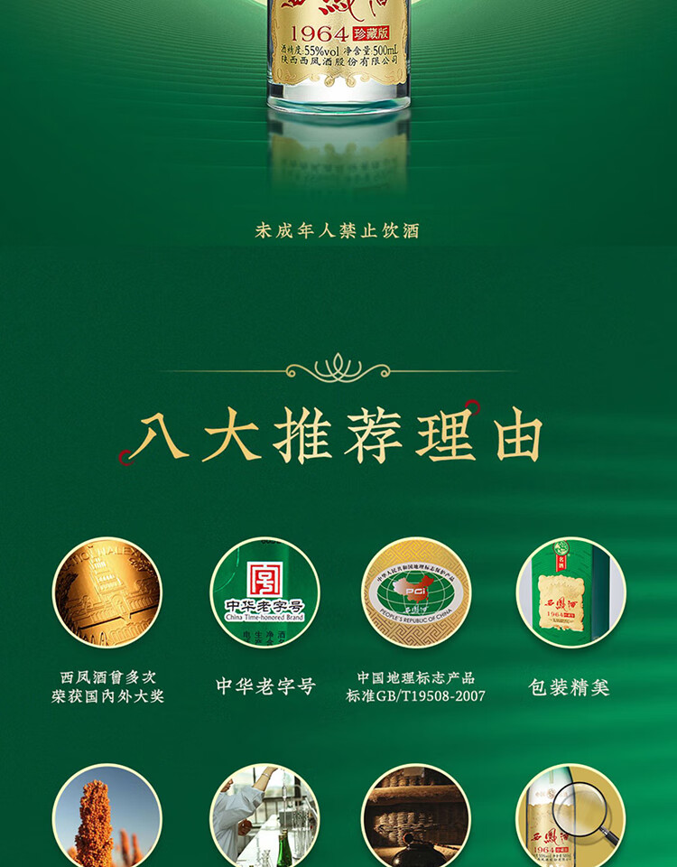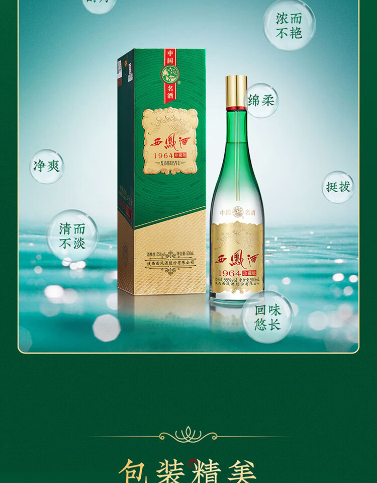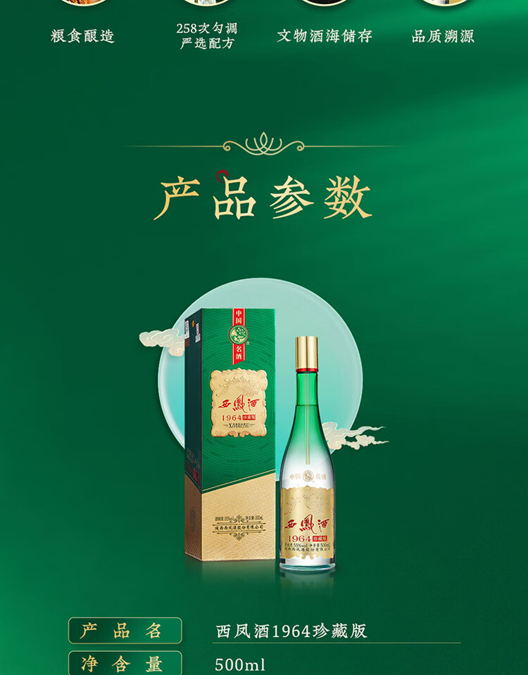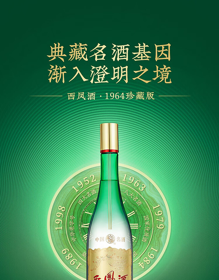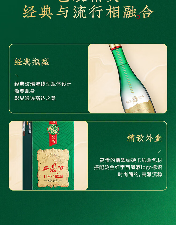 西凤酒55度 1964珍藏版纪念版【中秋送礼】凤香型白酒 55度 500mL 2瓶 礼袋装纪念版