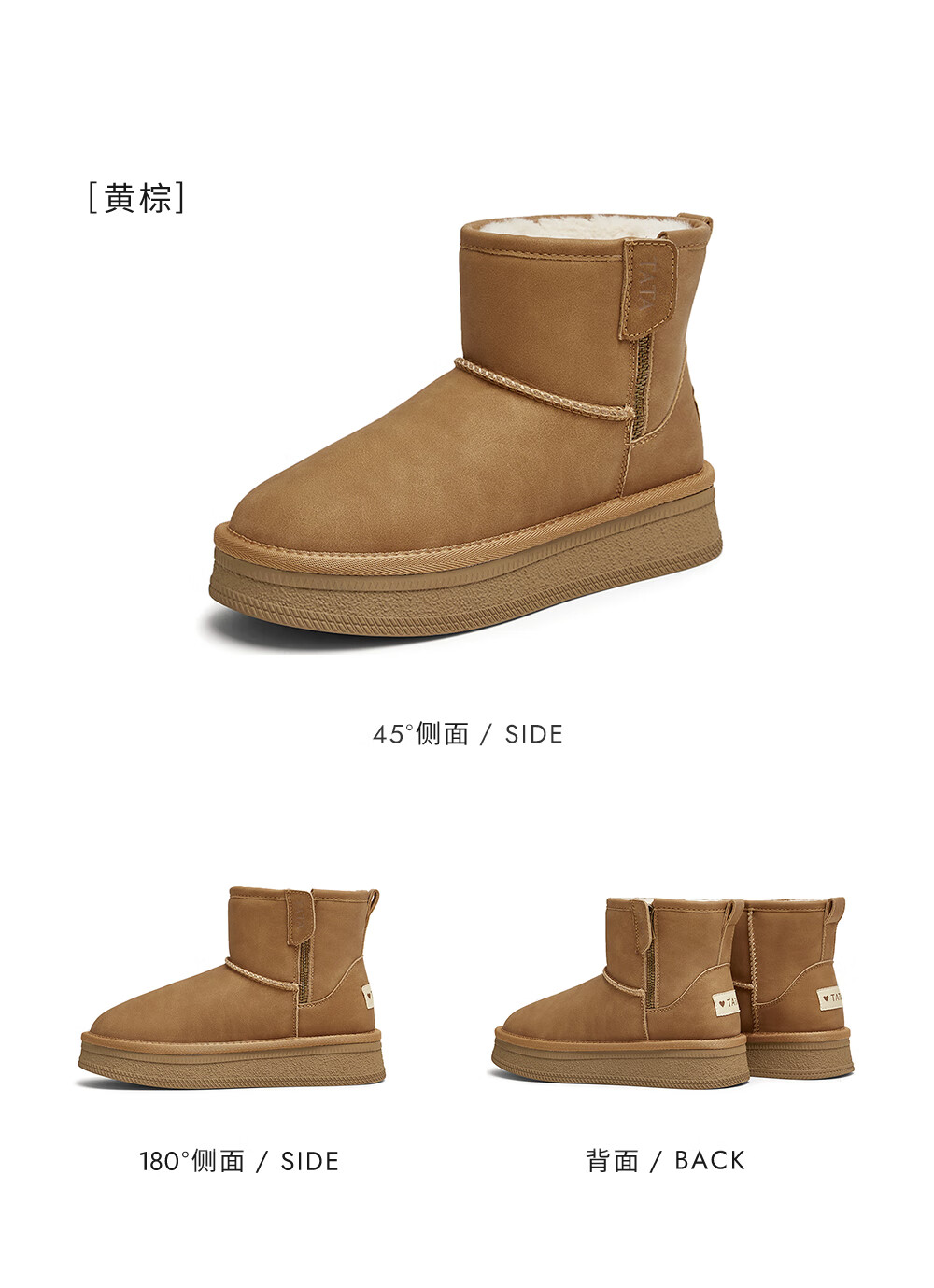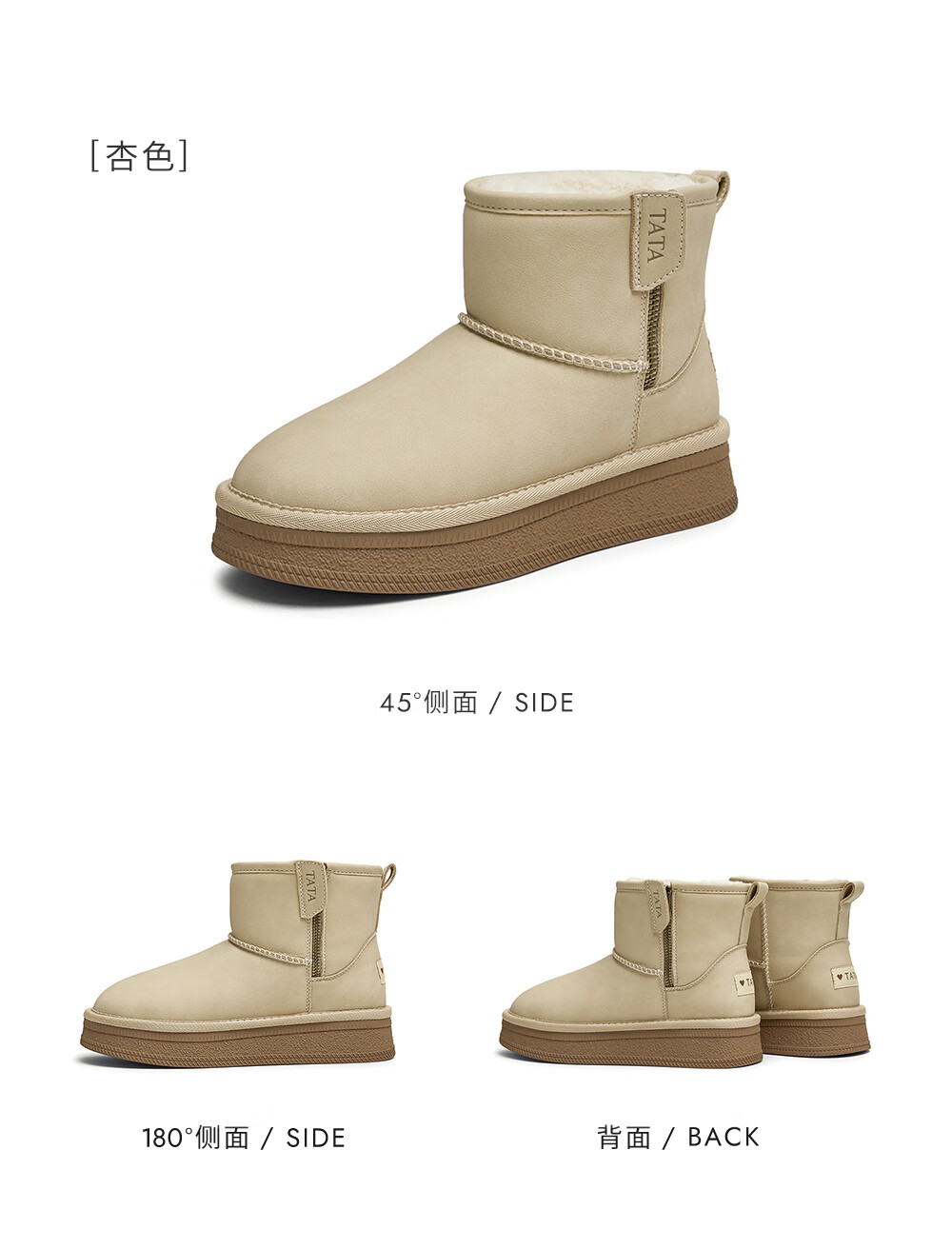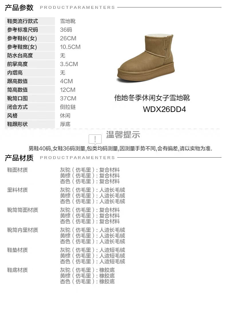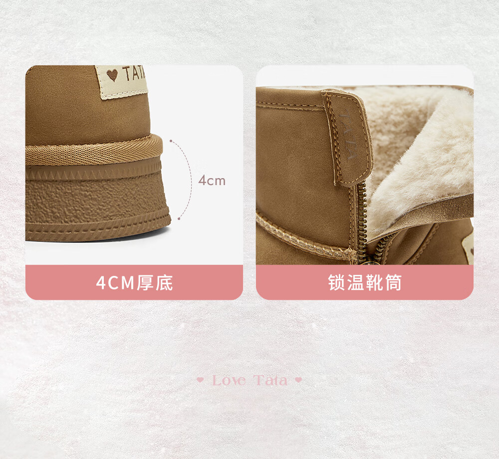 他她TATA暖暖靴冬季加绒雪地靴女靴厚底短靴保暖棉鞋WDX26DD4 灰驼 37