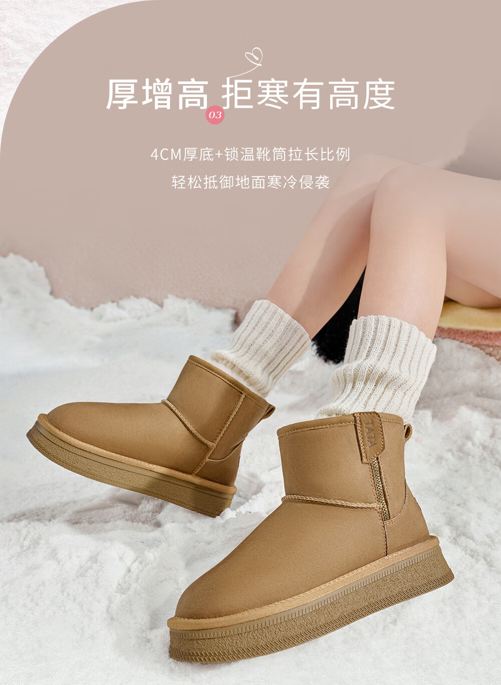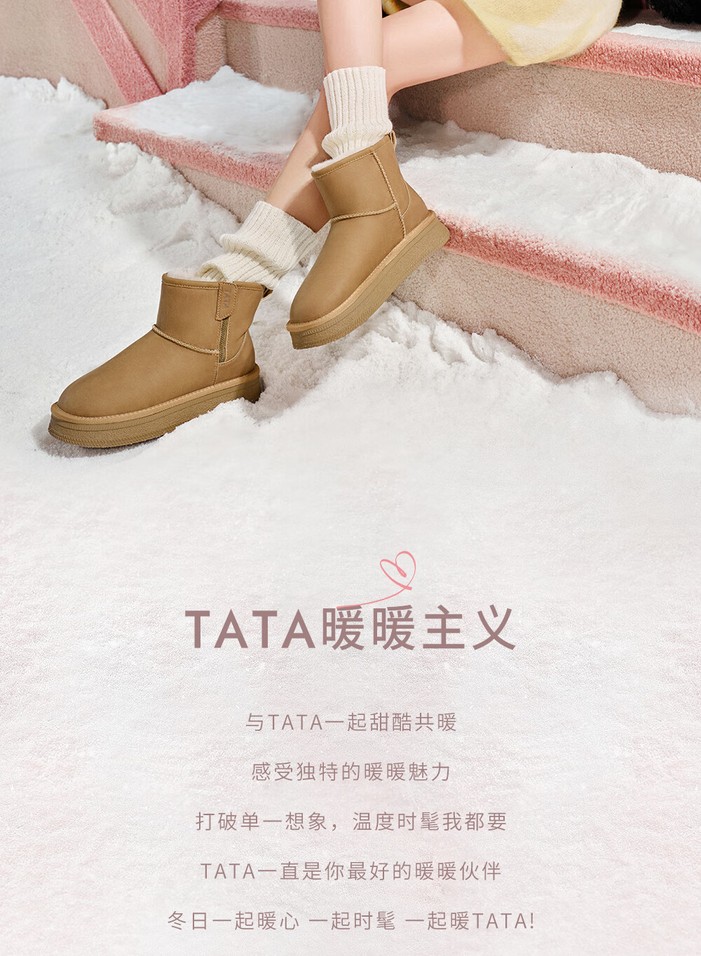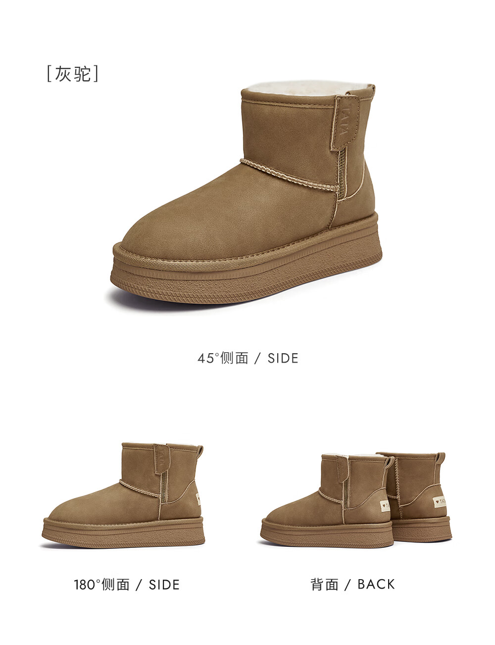 他她TATA暖暖靴冬季加绒雪地靴女靴厚底短靴保暖棉鞋WDX26DD4 灰驼 37