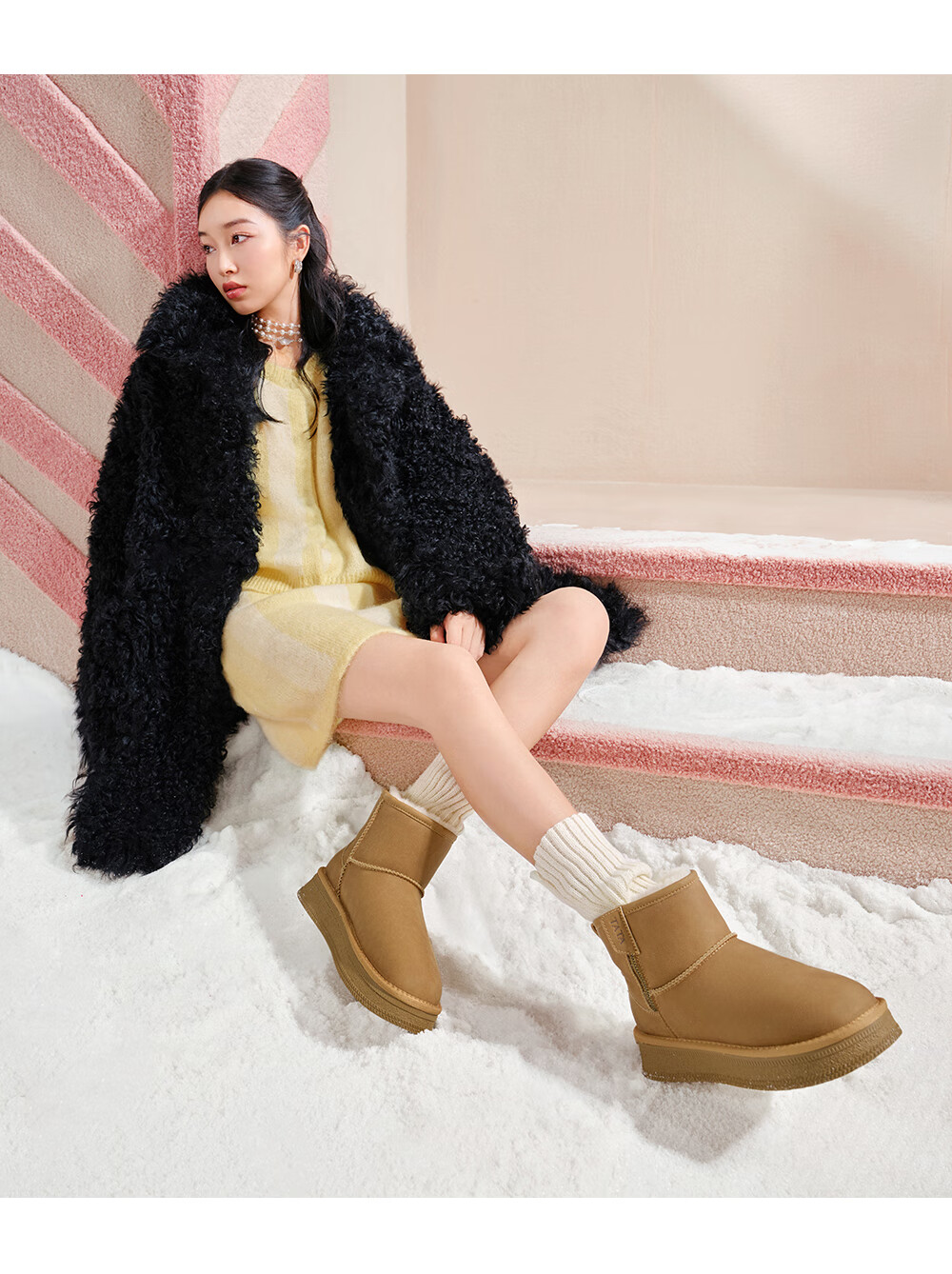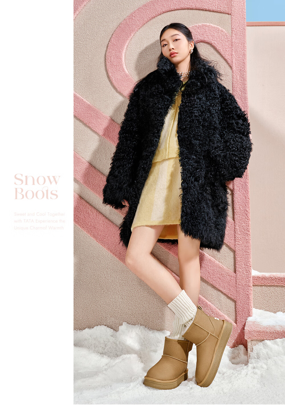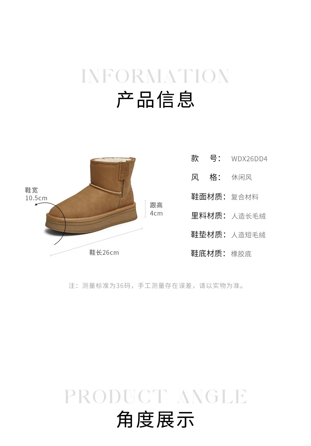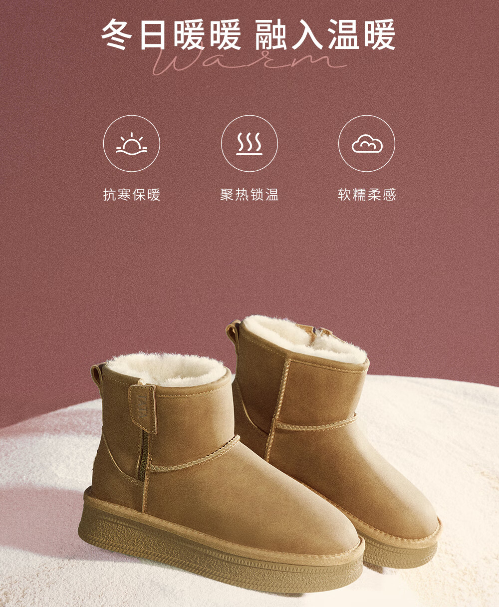 他她TATA暖暖靴冬季加绒雪地靴女靴厚底短靴保暖棉鞋WDX26DD4 灰驼 37