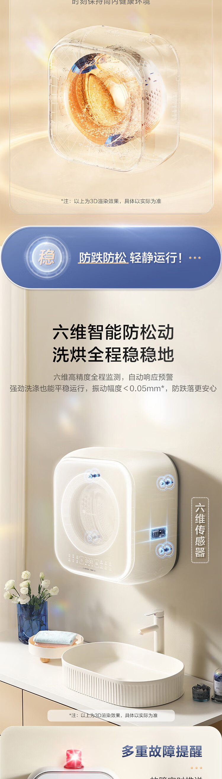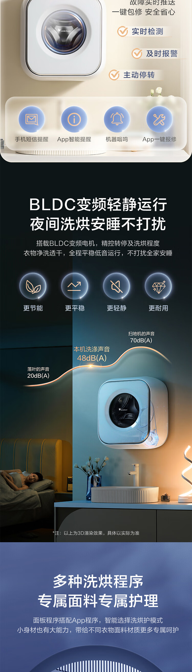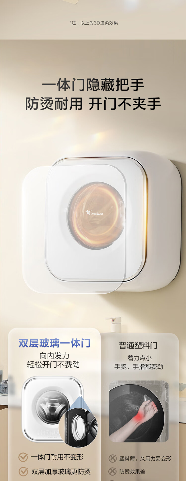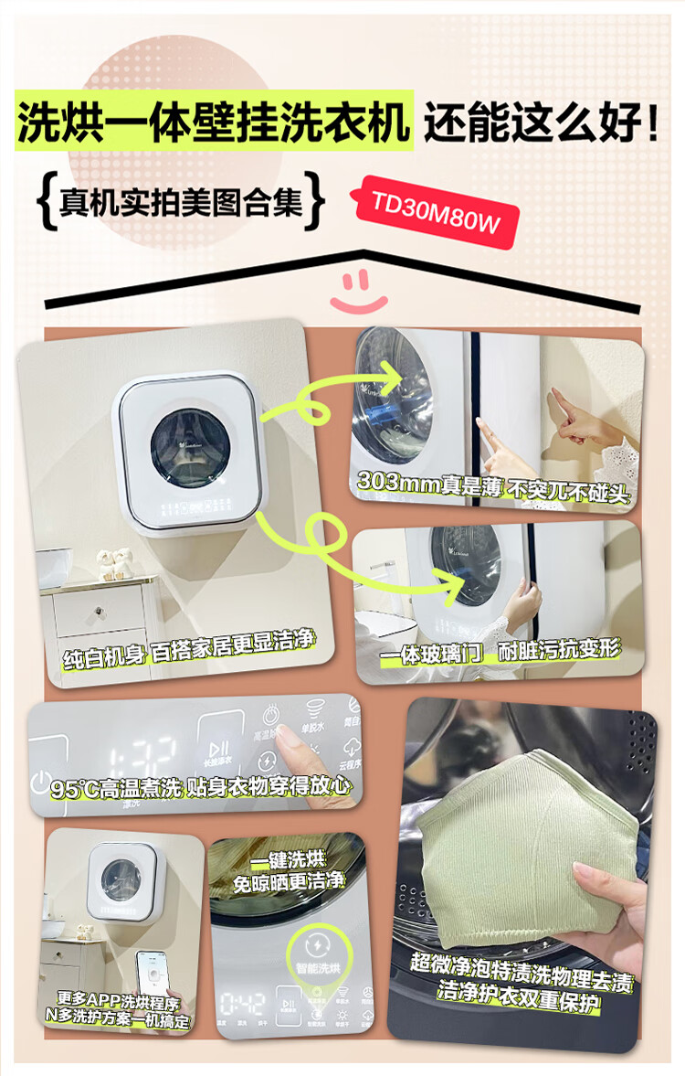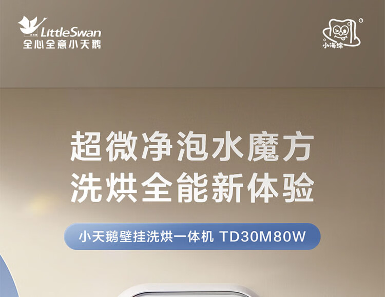小天鹅(LittleSwan)小海绵2.0 内衣洗衣机小型全自动家用 3KG壁挂洗烘一体 婴儿 迷你 TD30M80W 以旧换新 国家补贴