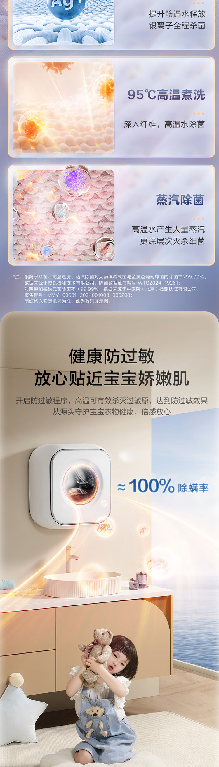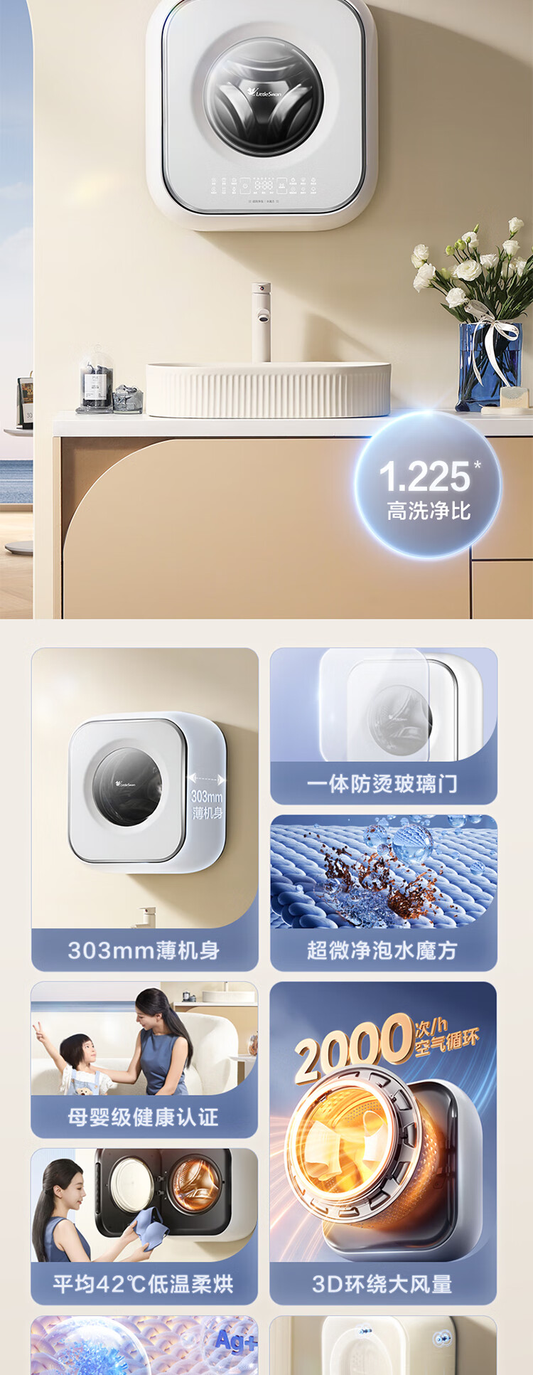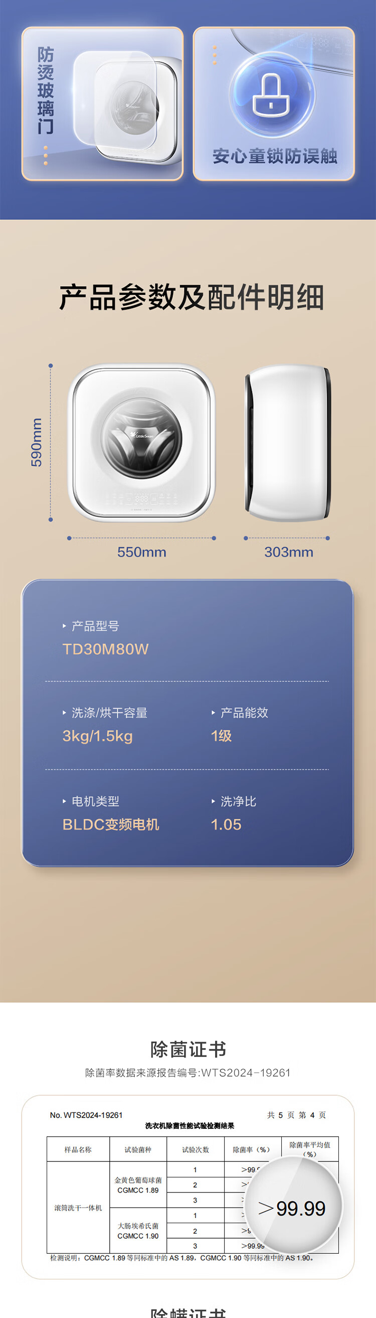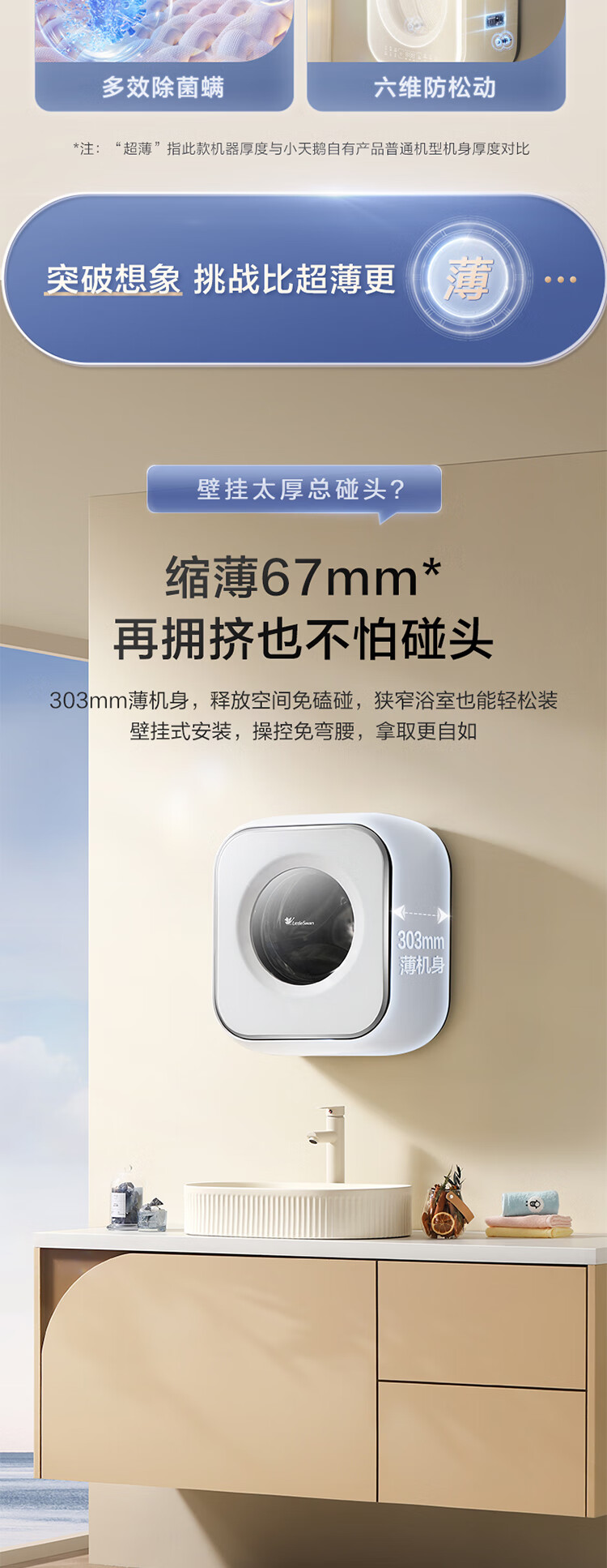 小天鹅(LittleSwan)小海绵2.0 内衣洗衣机小型全自动家用 3KG壁挂洗烘一体 婴儿 迷你 TD30M80W 以旧换新 国家补贴