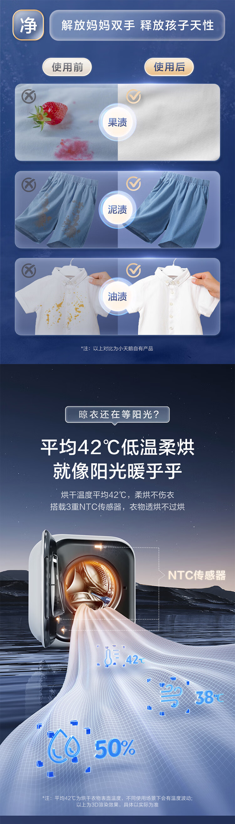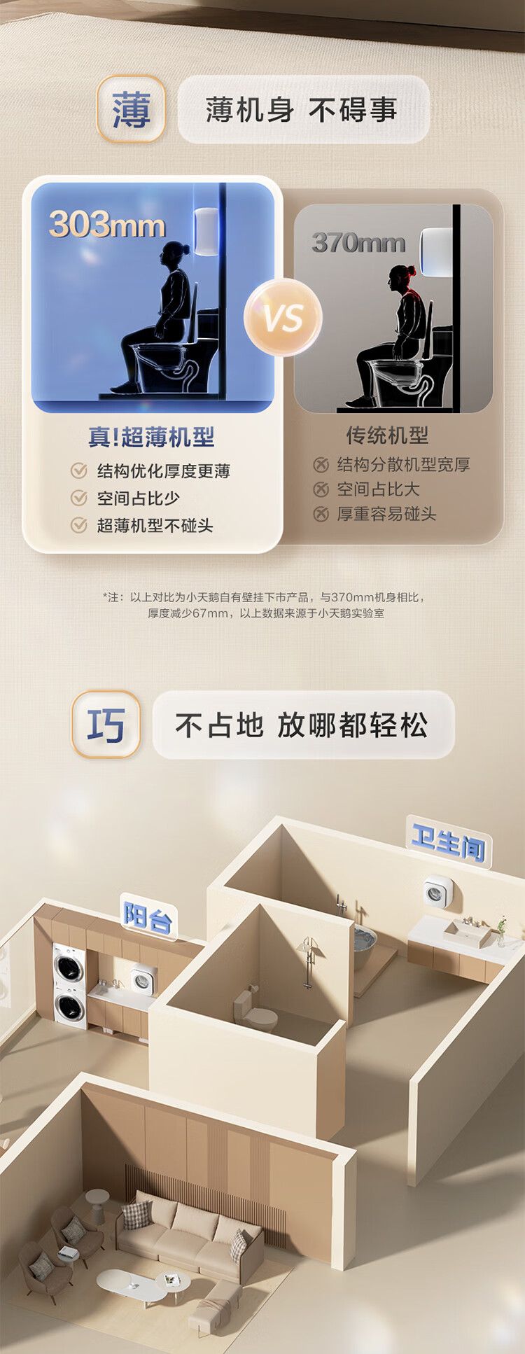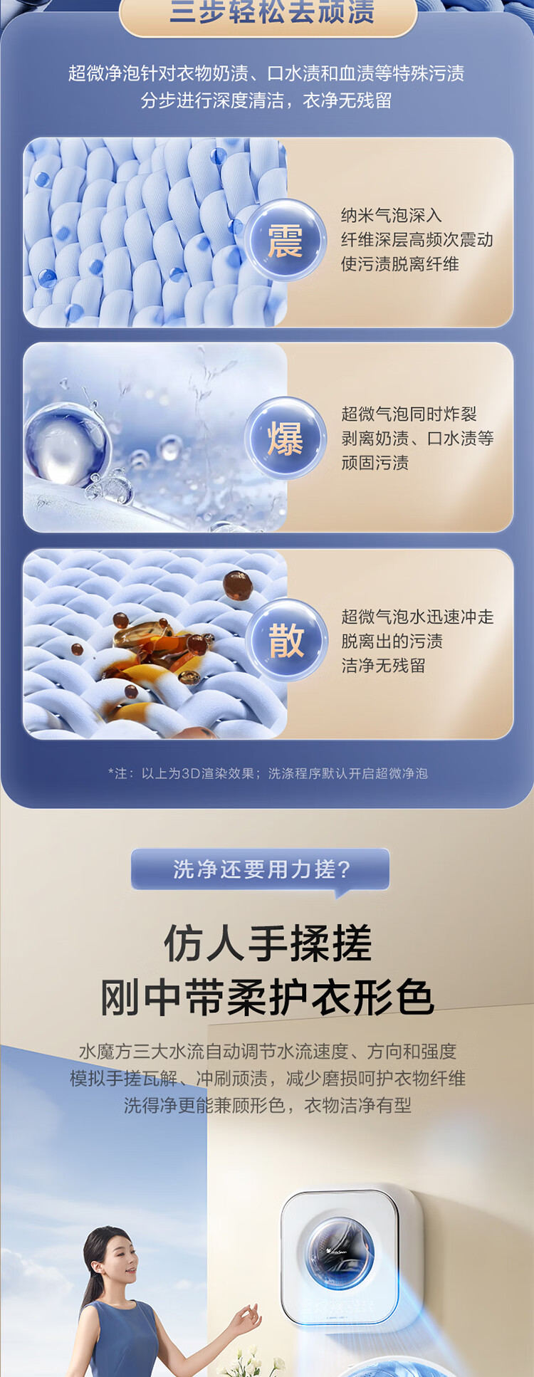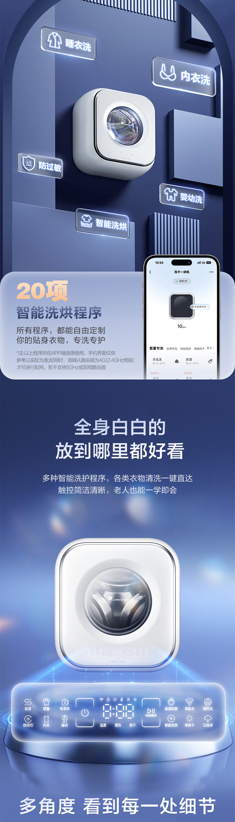小天鹅(LittleSwan)小海绵2.0 内衣洗衣机小型全自动家用 3KG壁挂洗烘一体 婴儿 迷你 TD30M80W 以旧换新 国家补贴
