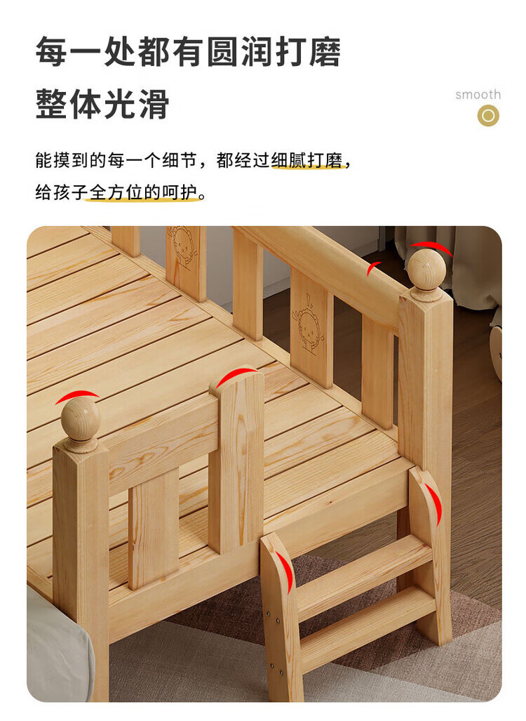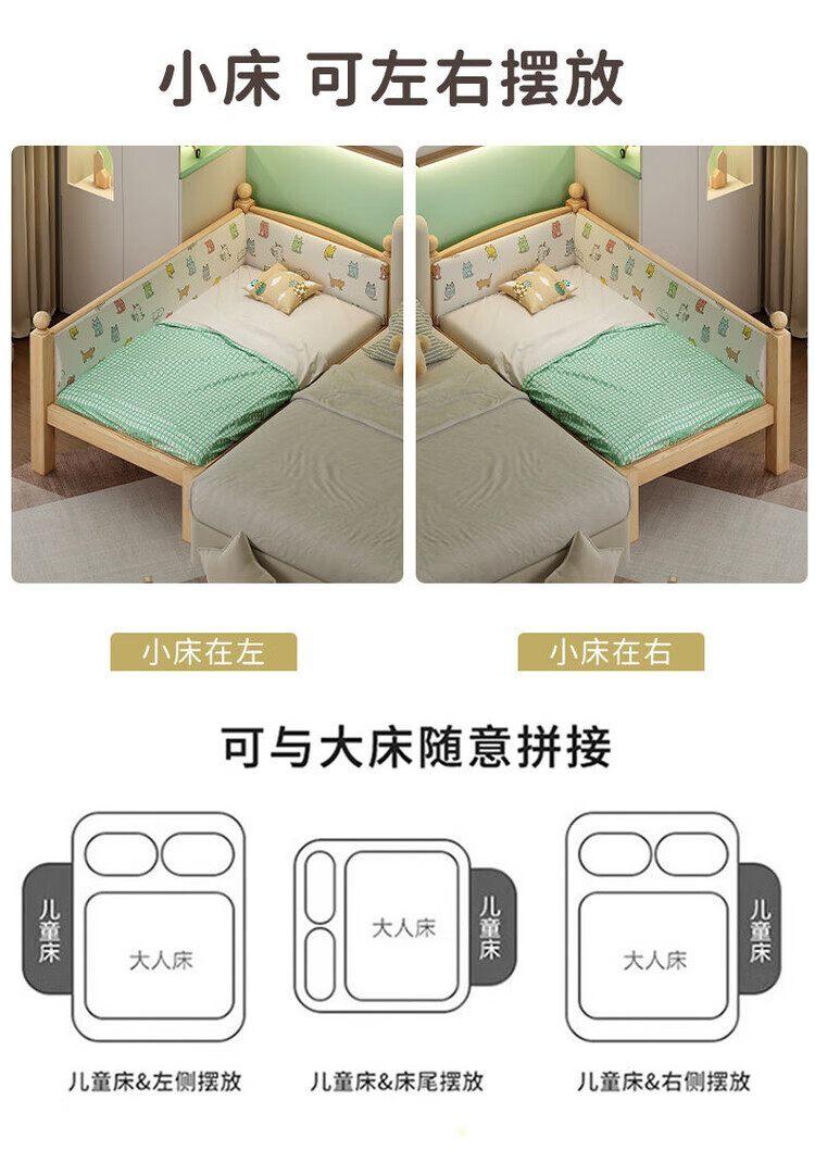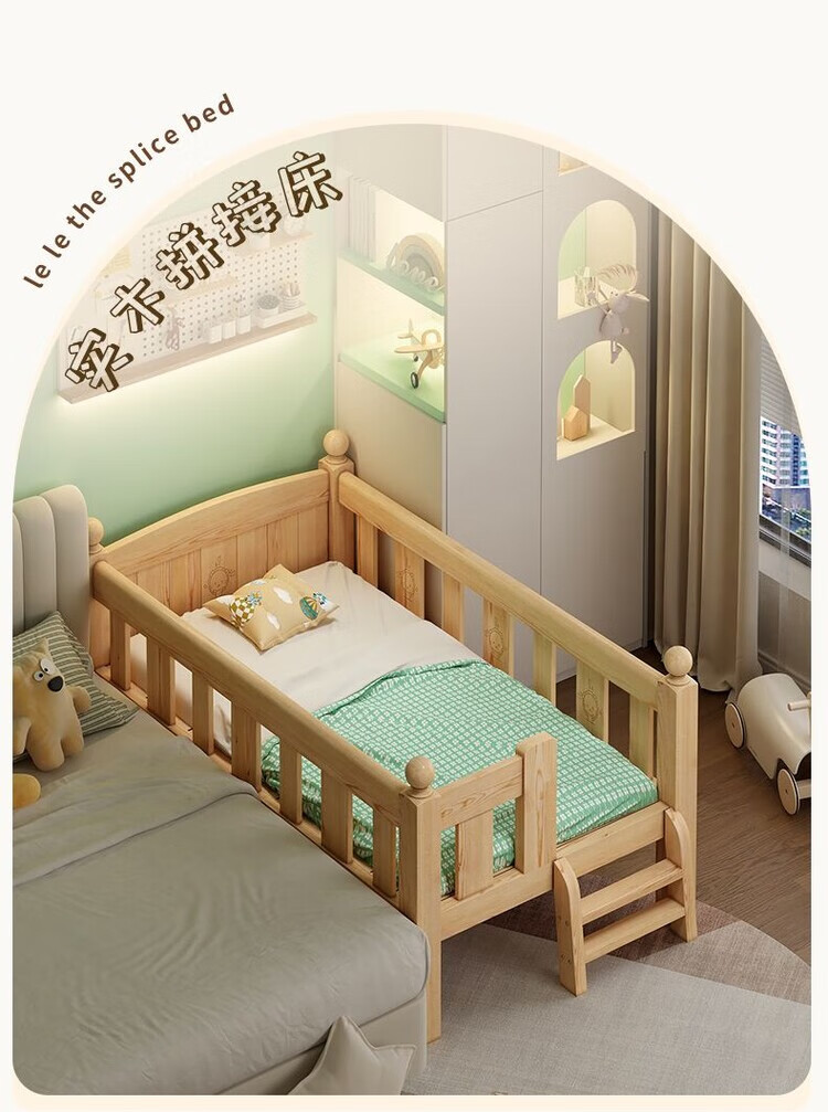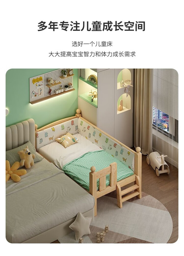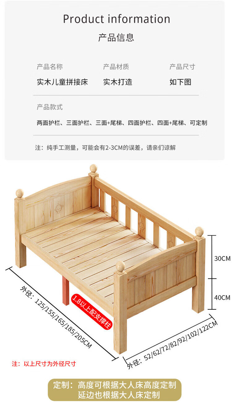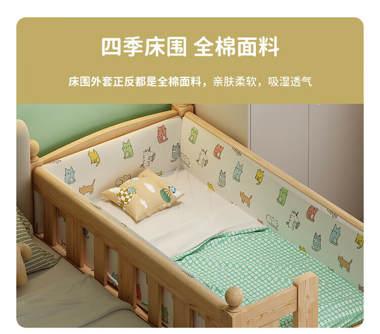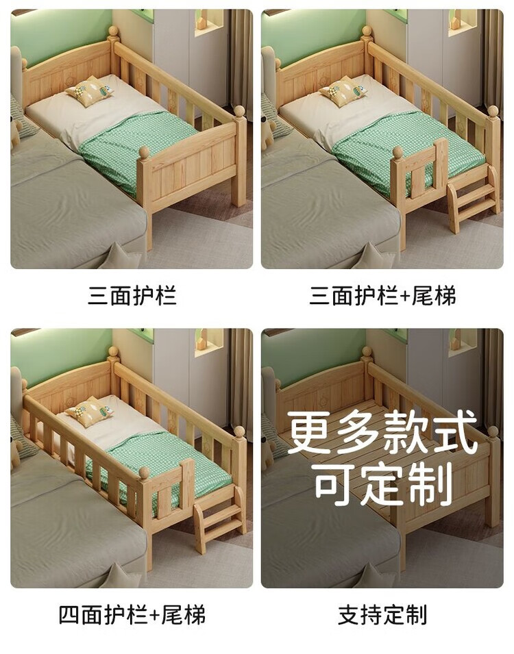 弘星隆儿童拼接床实木婴儿床带护栏大床边加宽小孩围栏单人加高宝宝小床 【实木】两面护栏款 125x62*40cm【免费加高】