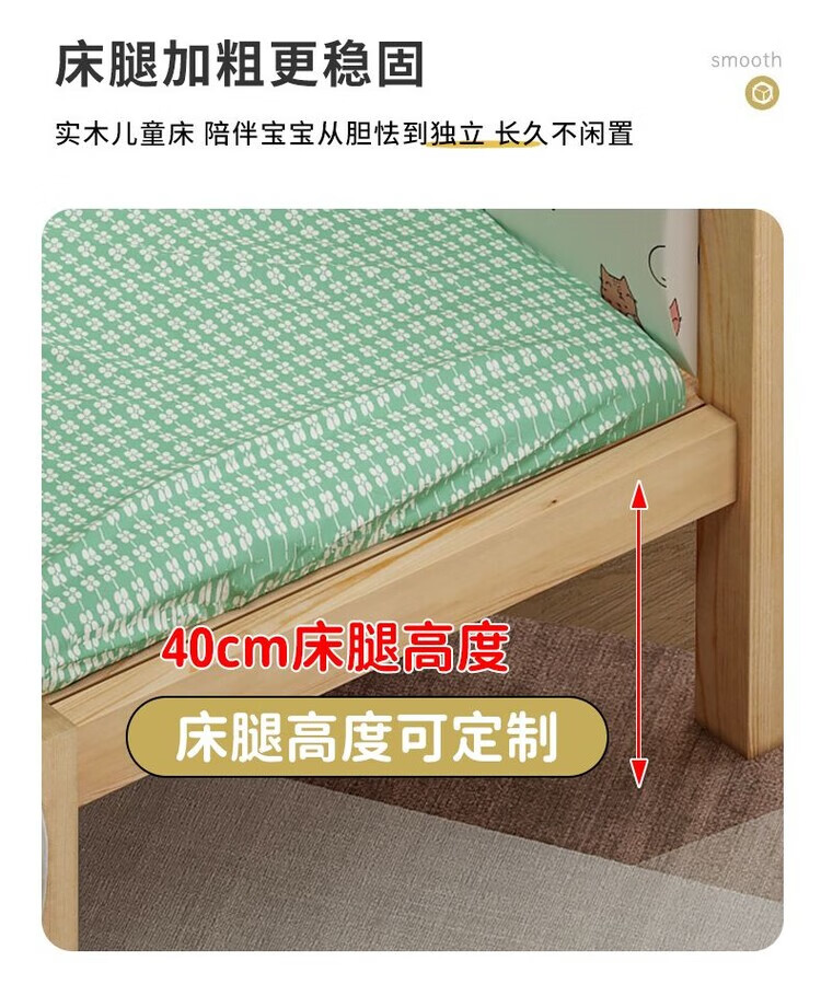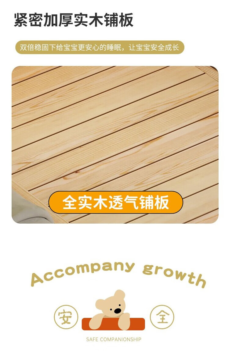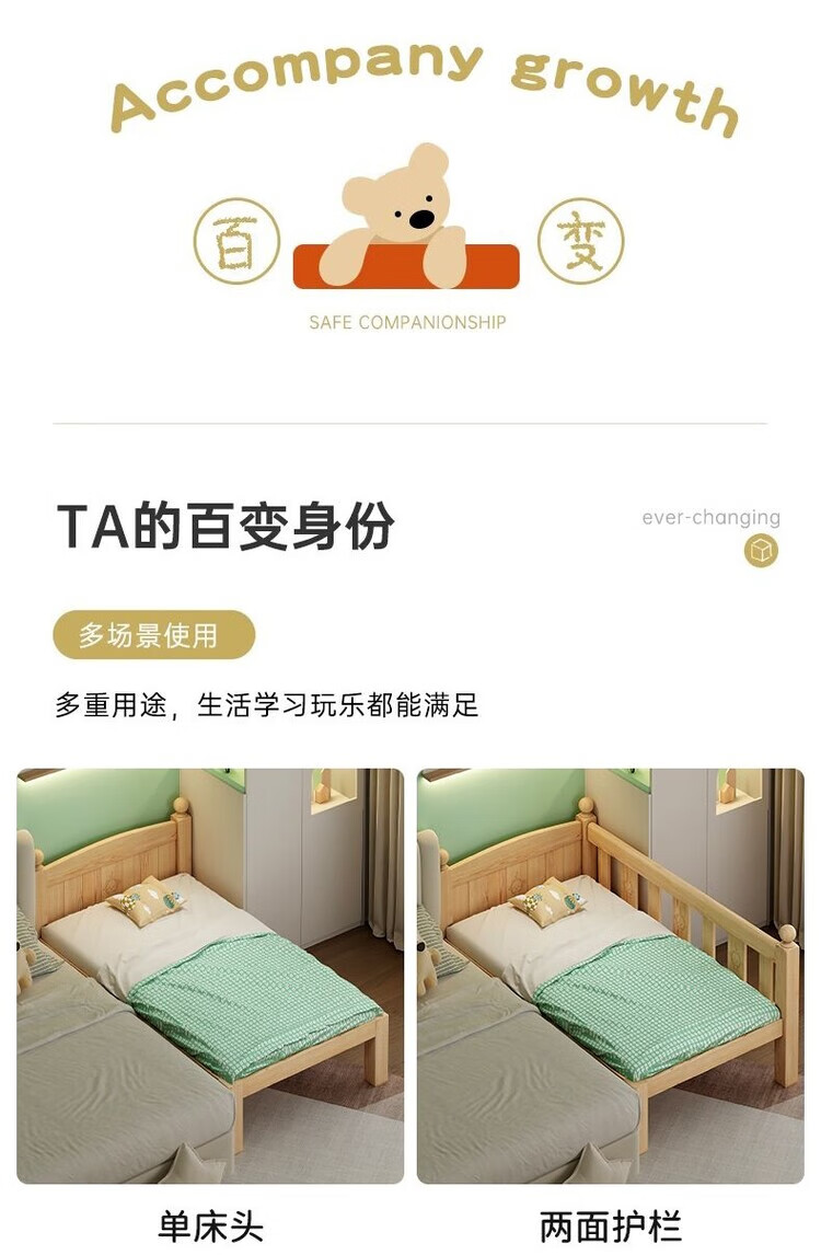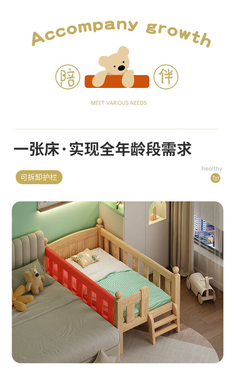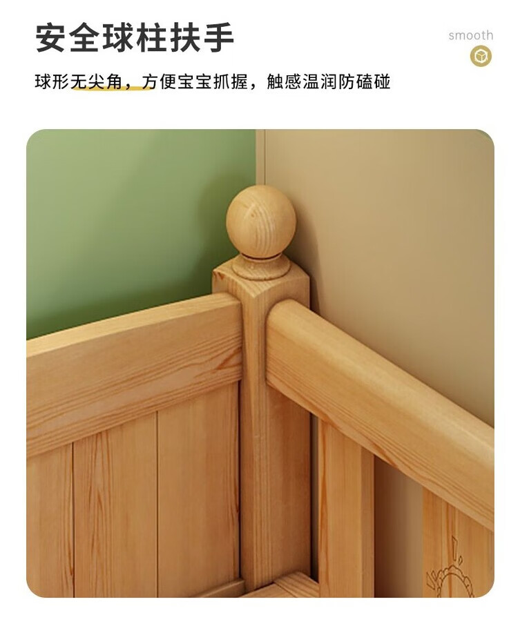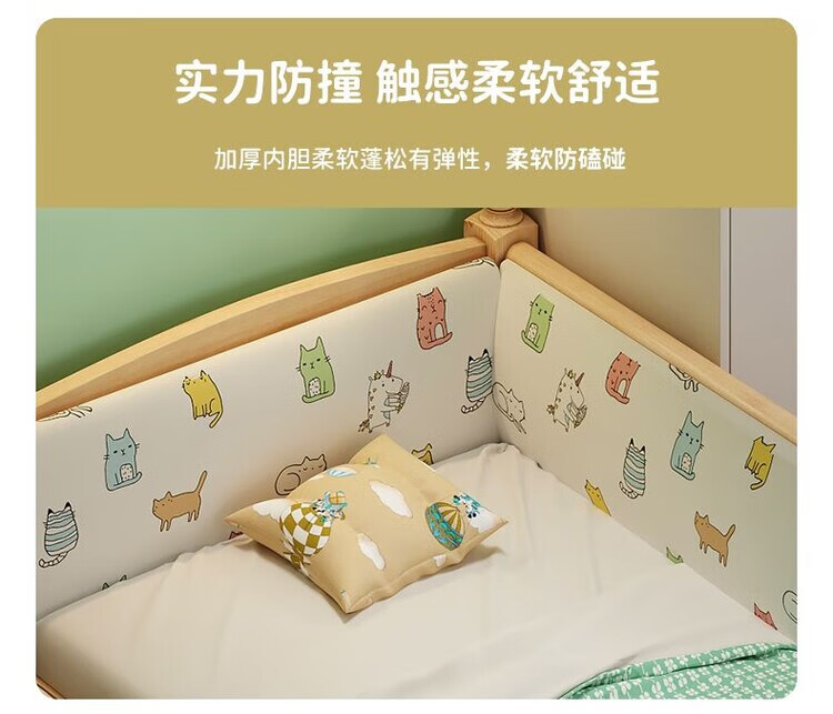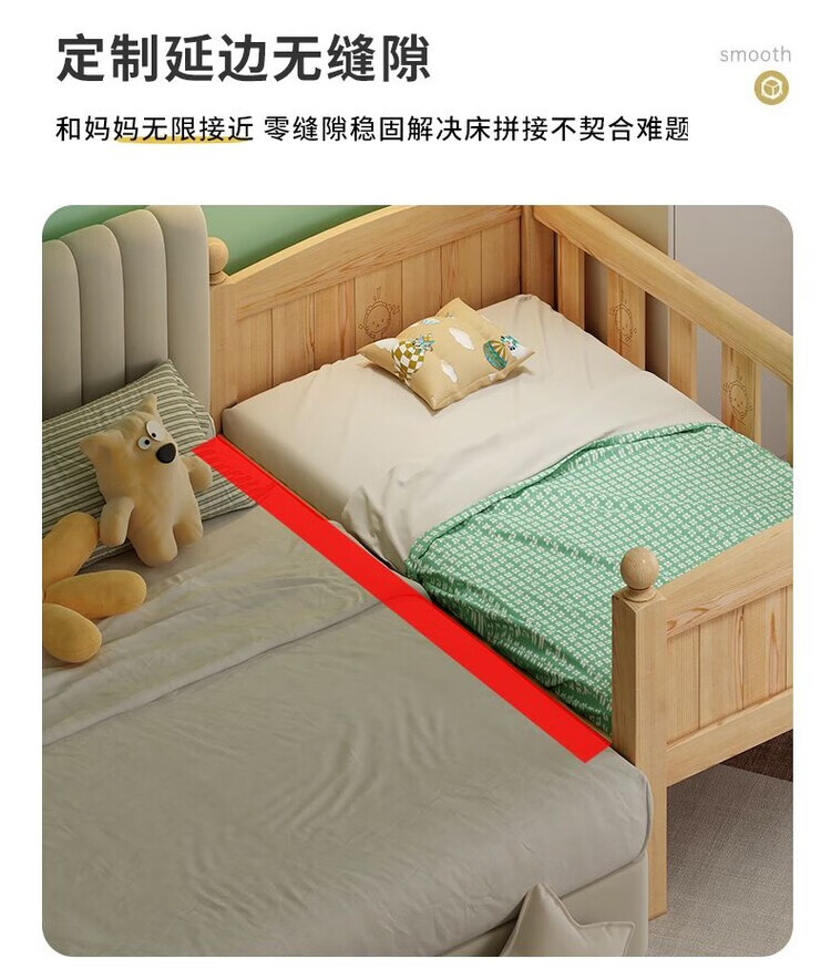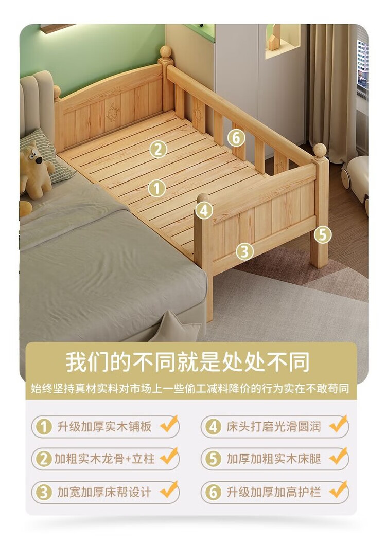 弘星隆儿童拼接床实木婴儿床带护栏大床边加宽小孩围栏单人加高宝宝小床 【实木】两面护栏款 125x62*40cm【免费加高】