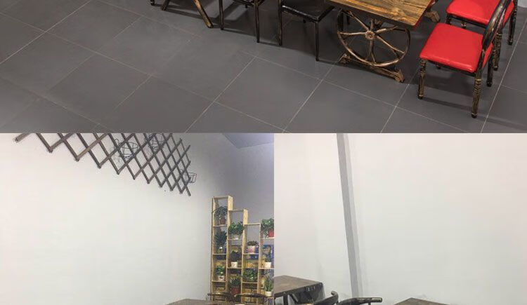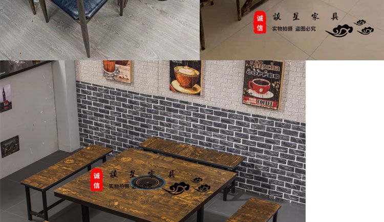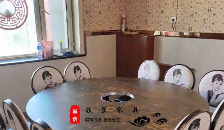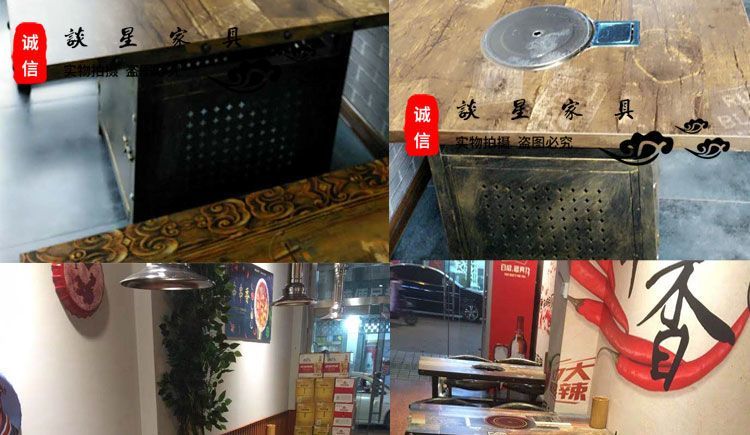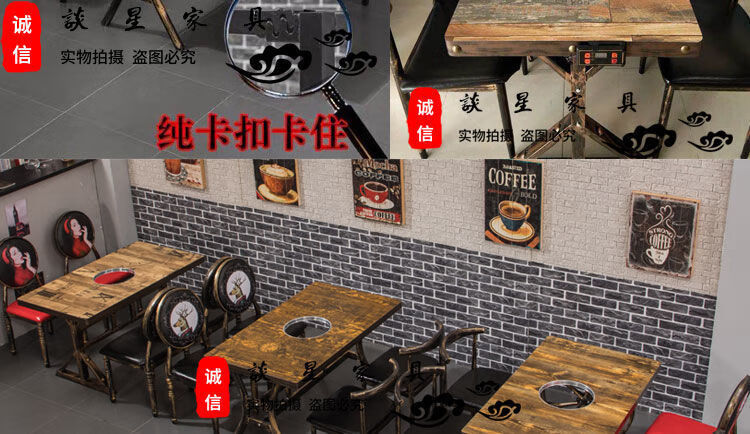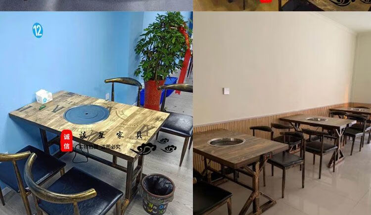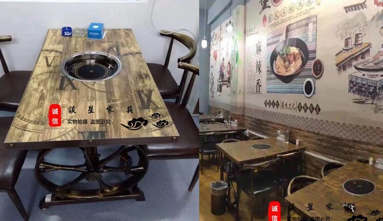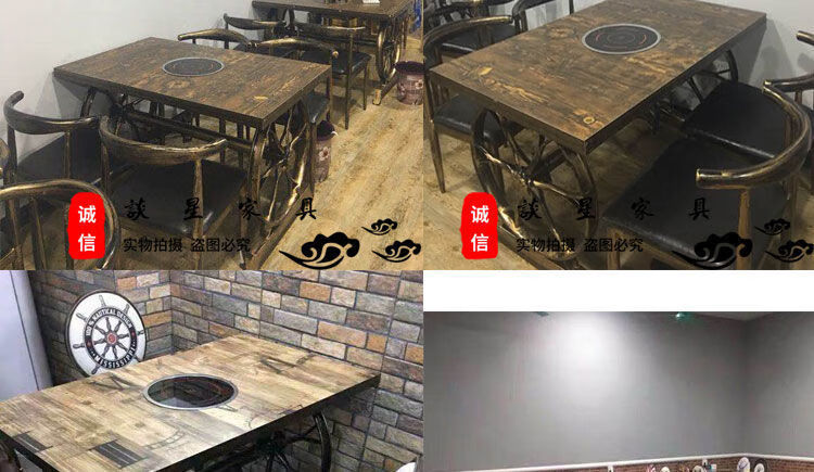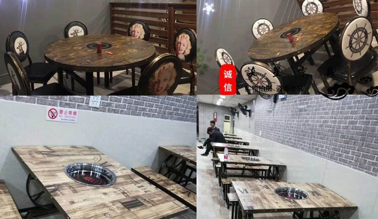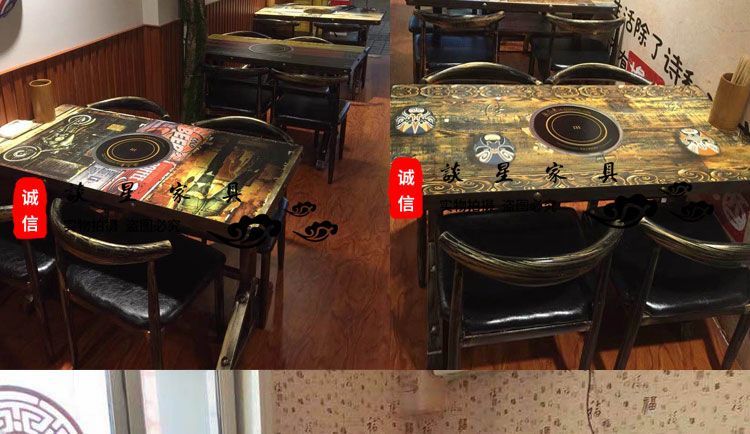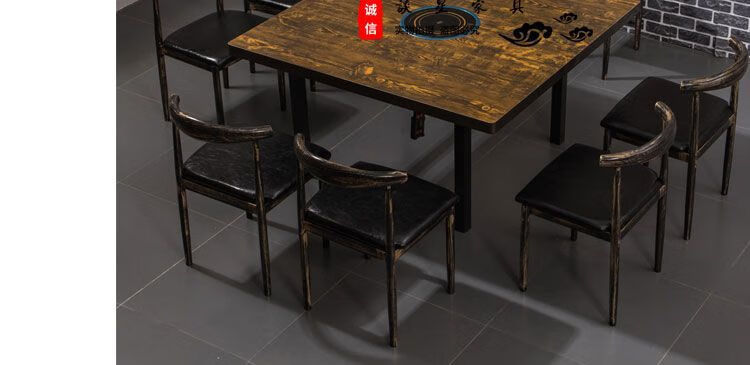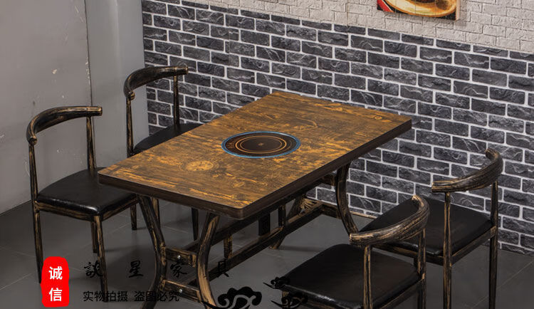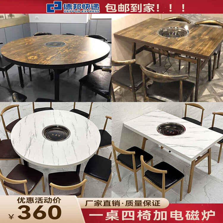 倘然之家火锅桌子电磁炉一体一人一锅圆桌餐饮饭店桌椅组合煤气灶商用烙锅 120*60一桌四椅加电磁炉促销款