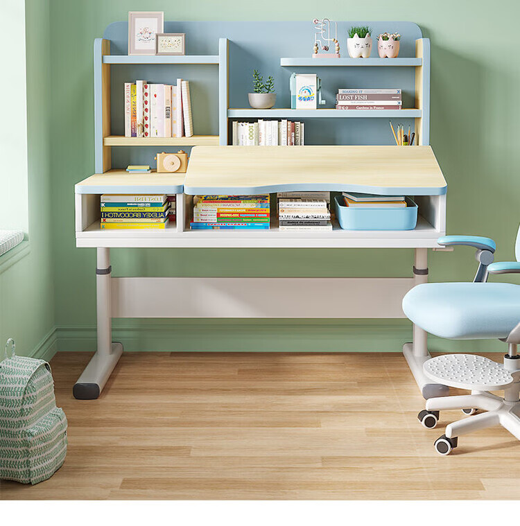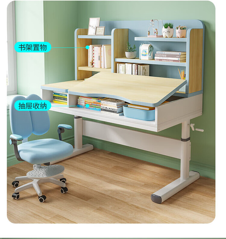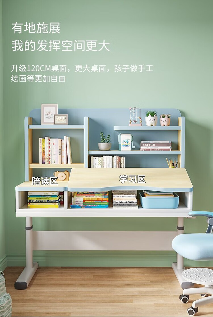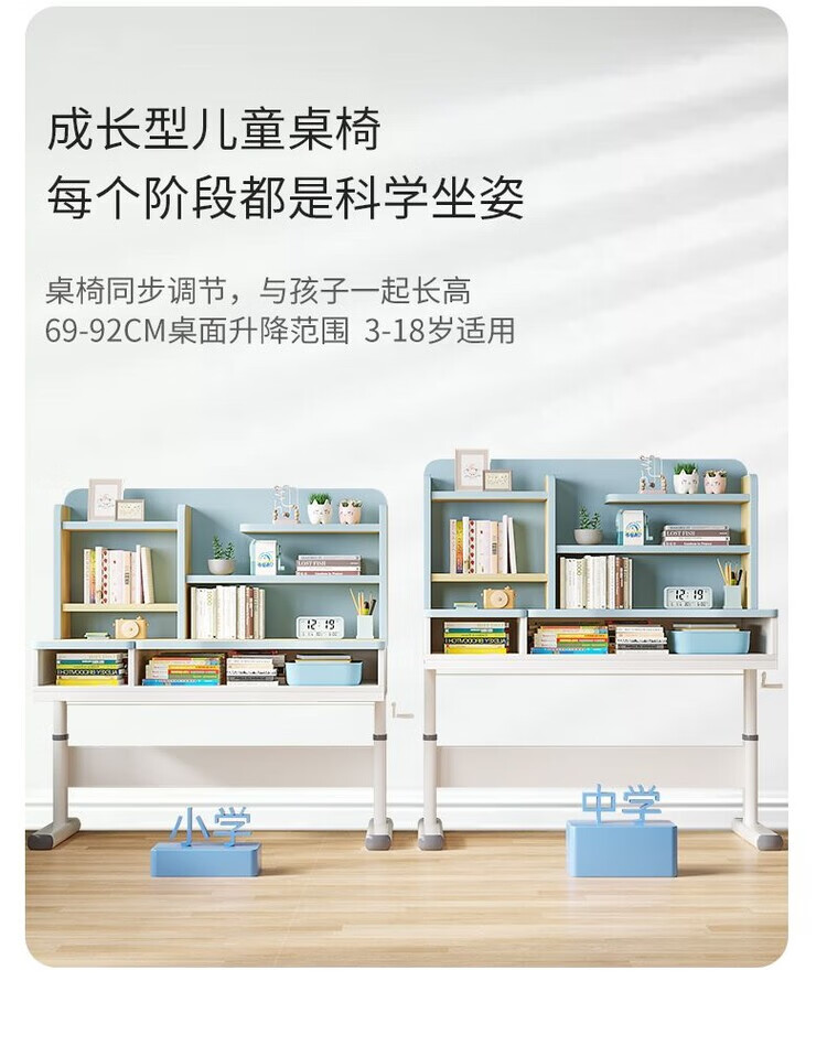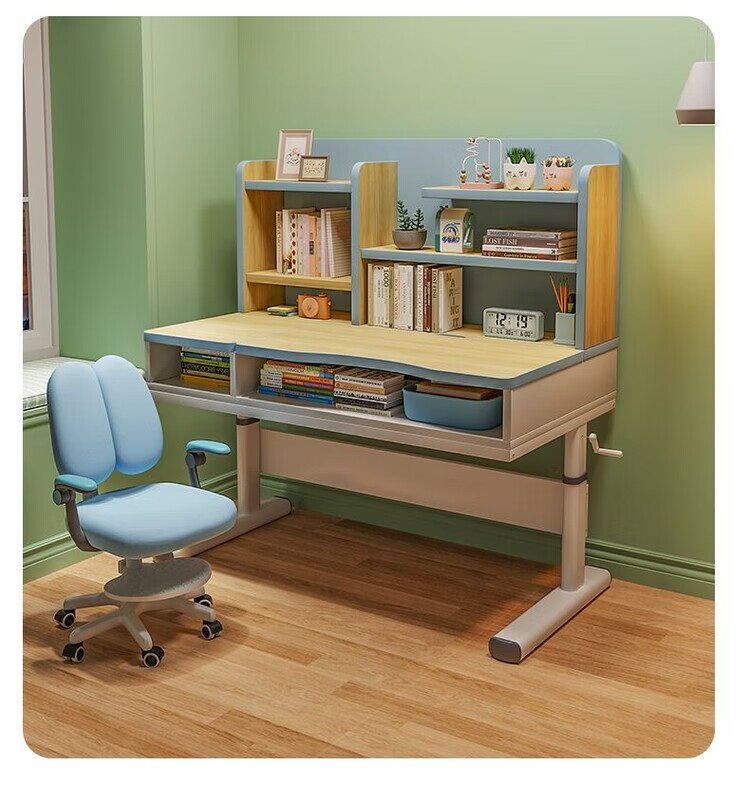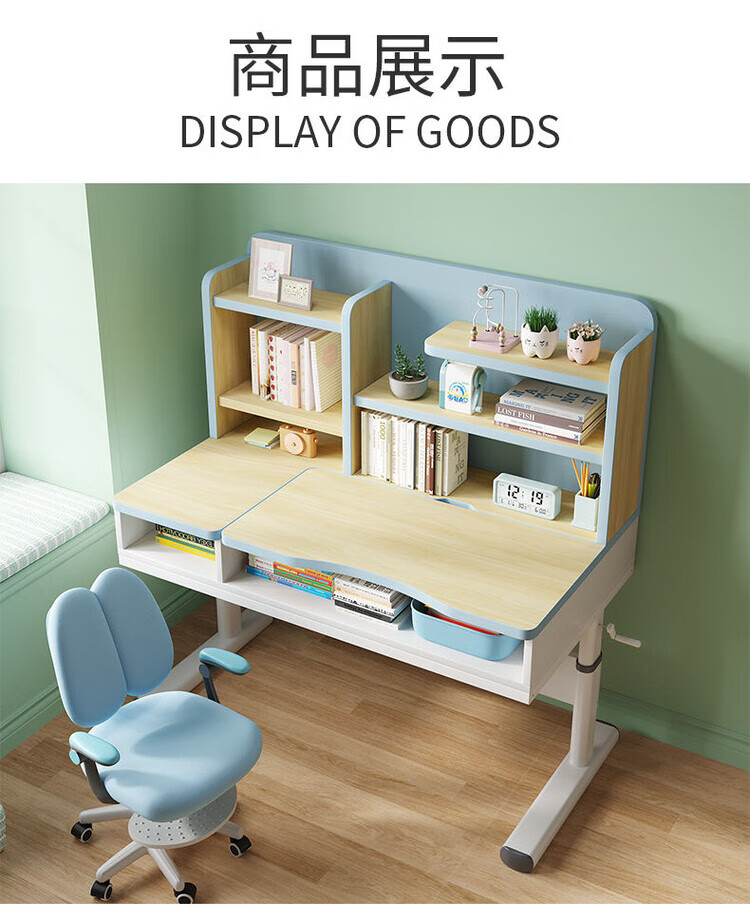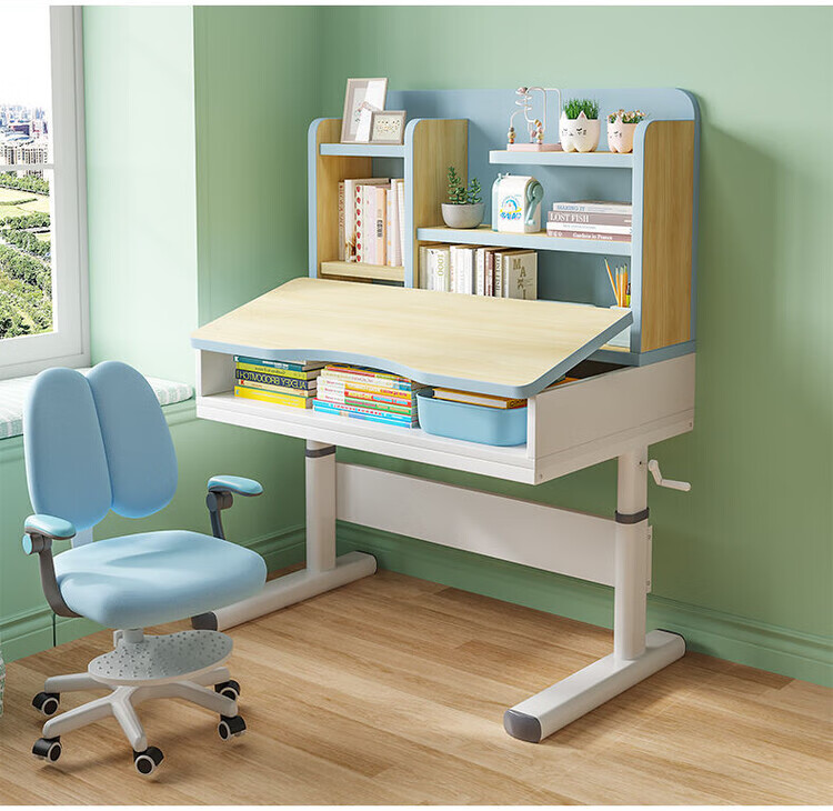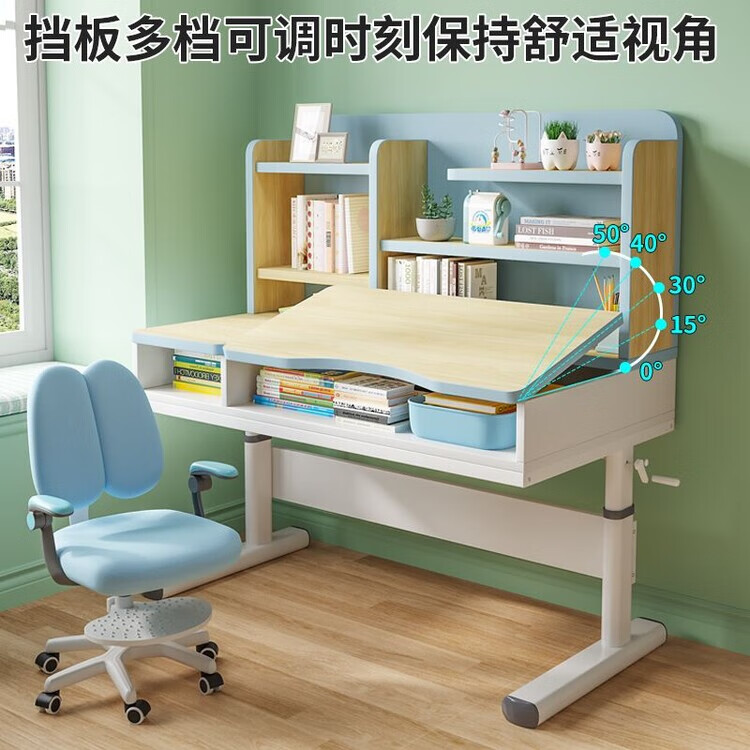 倘然之家实木儿童学习桌小学生写字作业书桌家用简约小孩课桌椅套装可升降 蓝色 舒适款80cm桌面