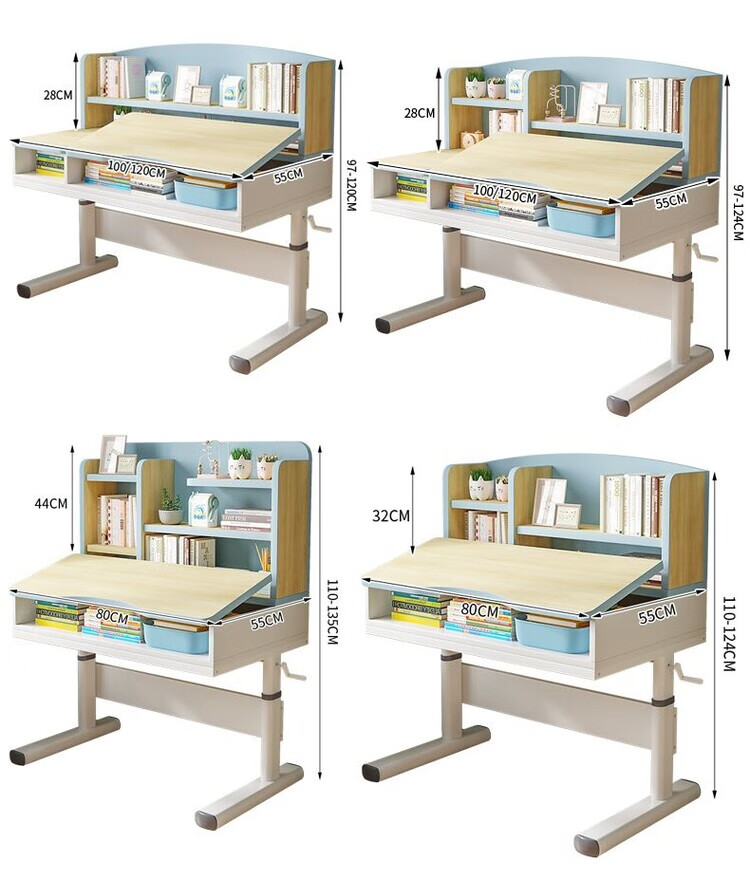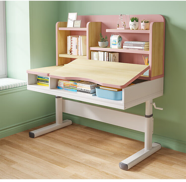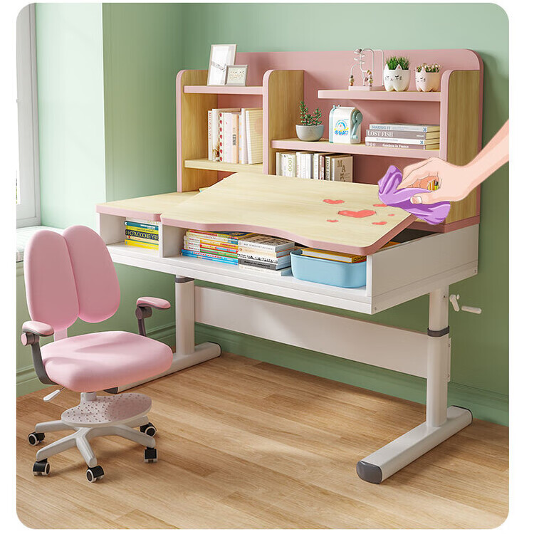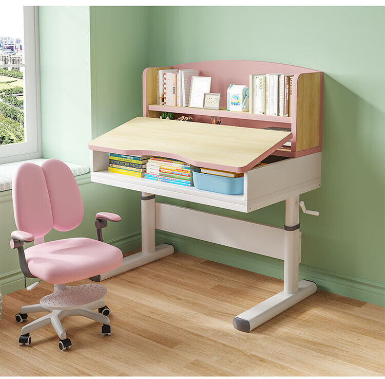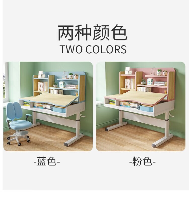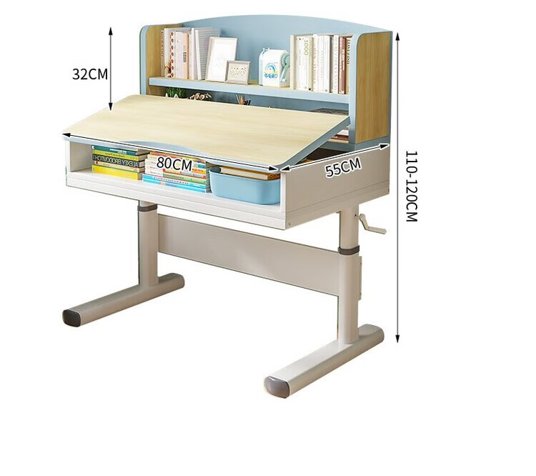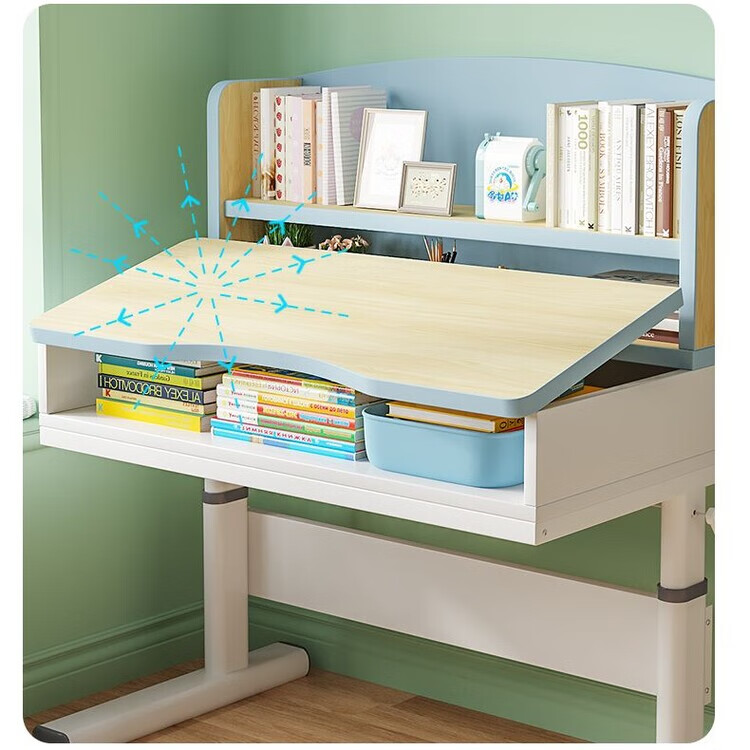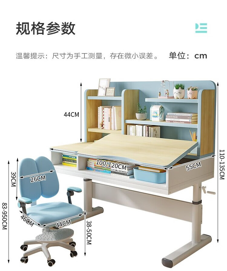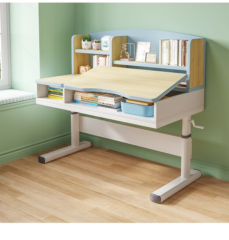 倘然之家实木儿童学习桌小学生写字作业书桌家用简约小孩课桌椅套装可升降 蓝色 舒适款80cm桌面
