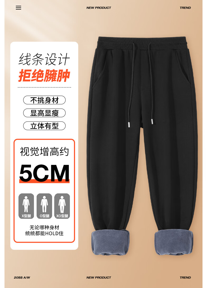 JEEP SPIRIT吉普男款加绒加厚长裤冬季保暖御寒奥粒绒裤子户外防风亲肤休闲裤