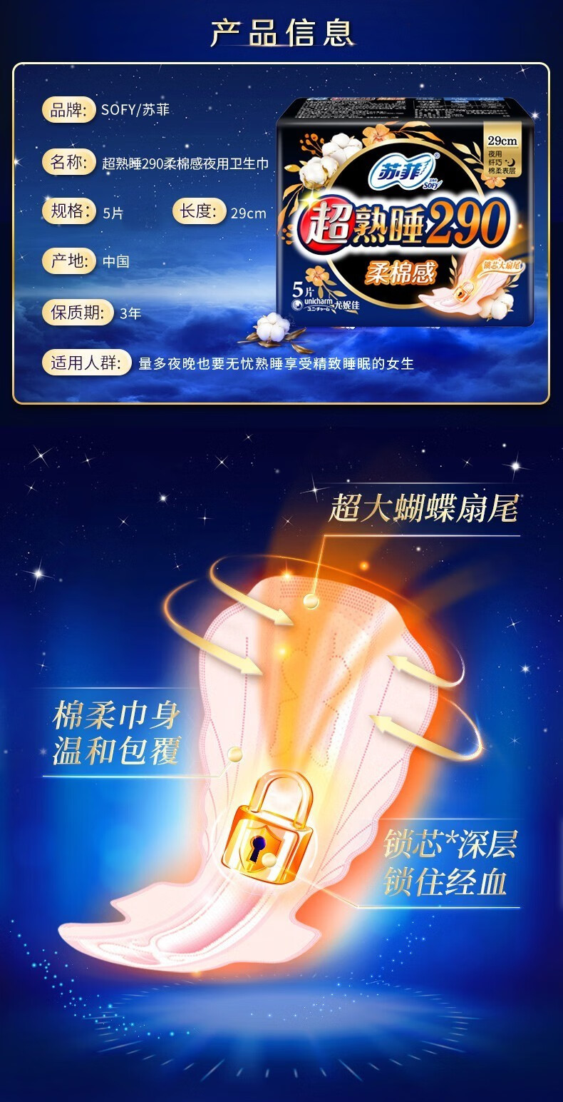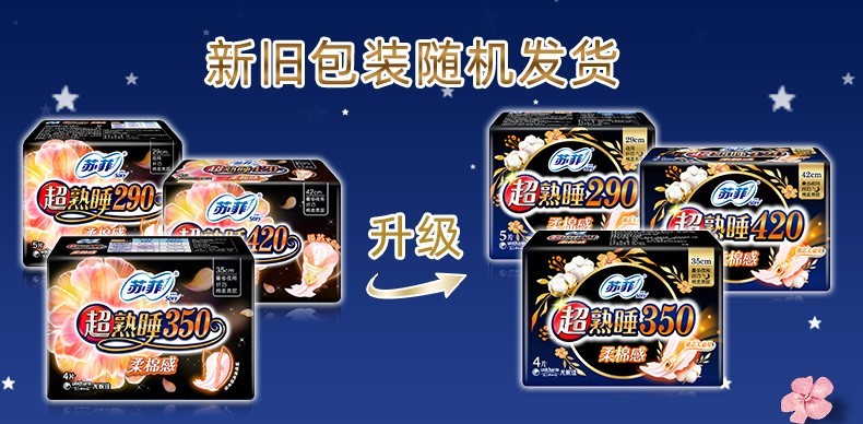 苏菲超熟睡卫生巾日用弹力贴身棉柔纤巧230+290mm组合装护垫姨妈巾 精选日夜组合77片
