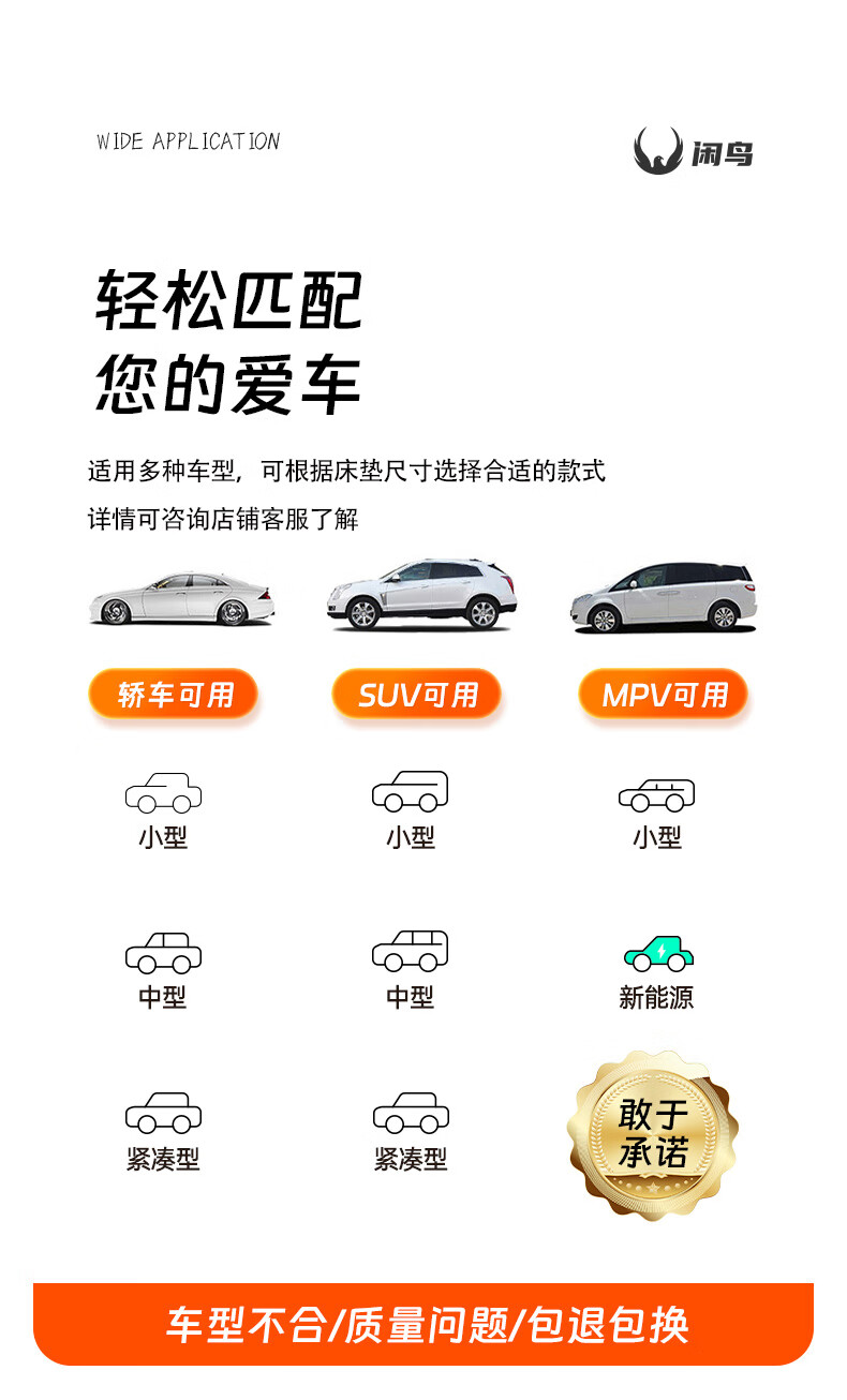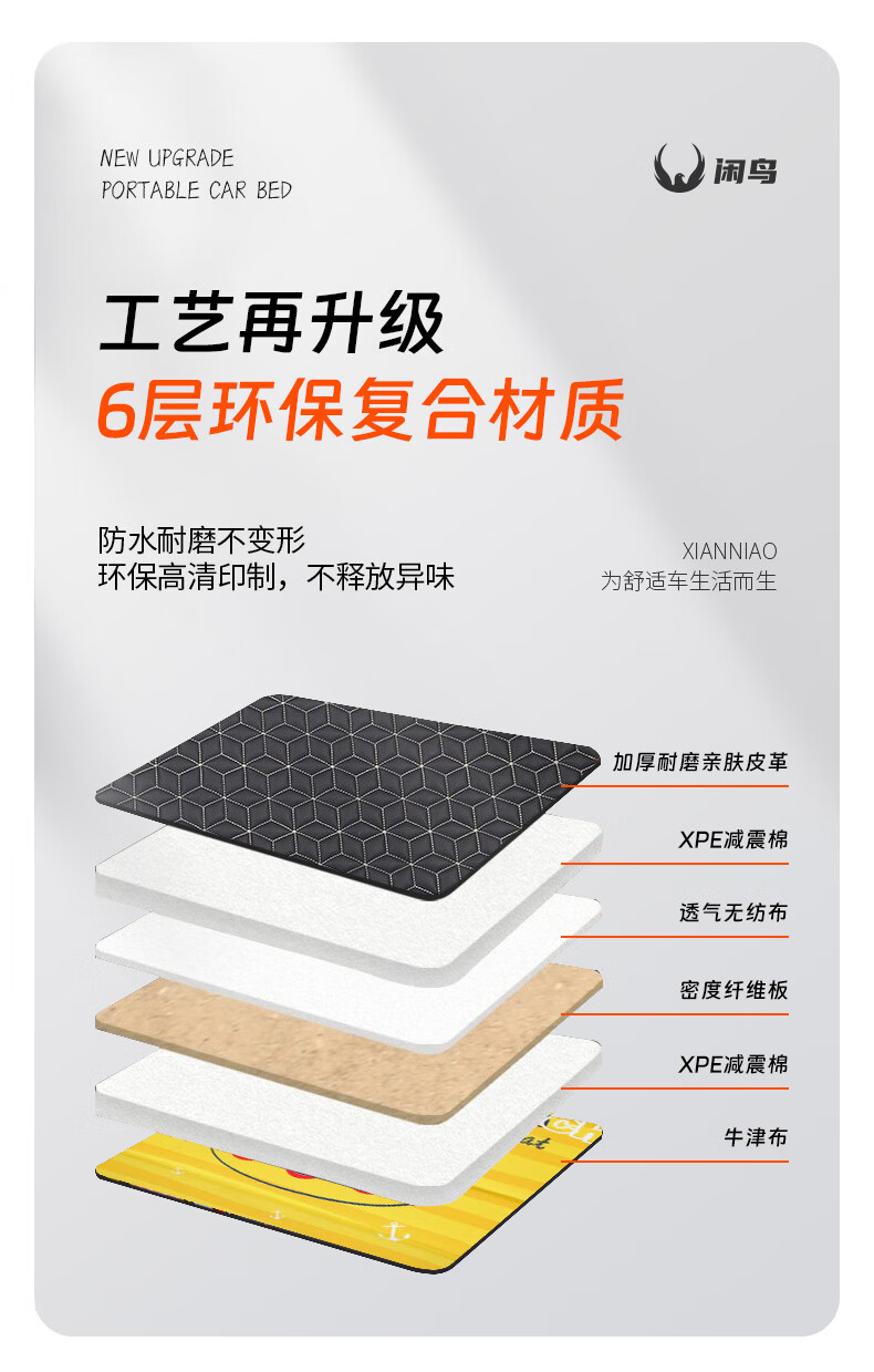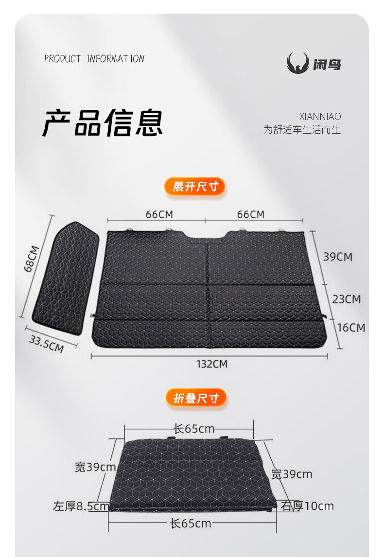 闲鸟车载床垫汽车车内后排睡垫车用折叠床自驾野营旅行床轿车SUV后座