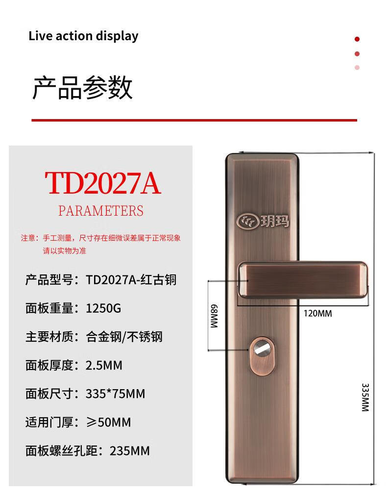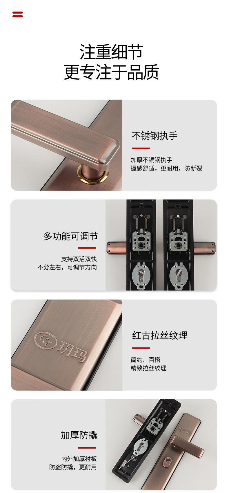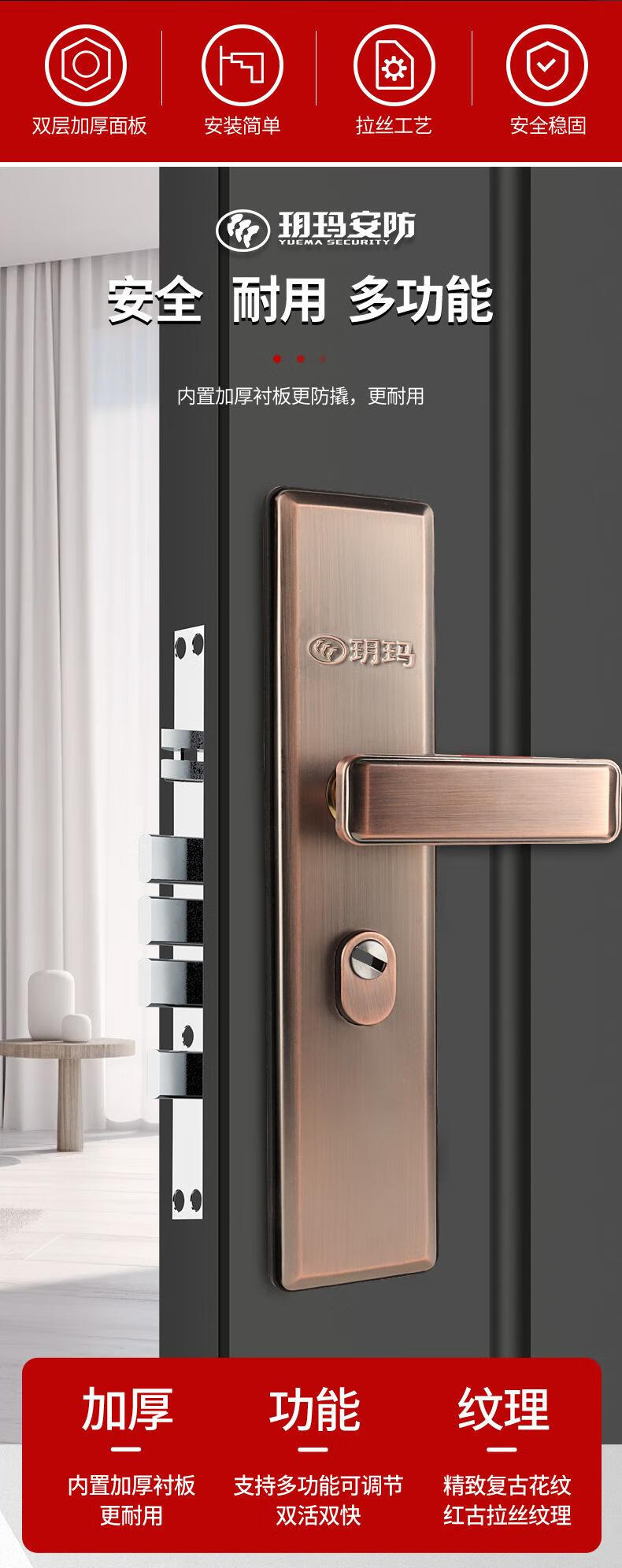 玥玛防盗门锁套装免费上门安装家用通用型大门锁不锈钢门把手C级锁芯 红古铜24锁体套装免费安装