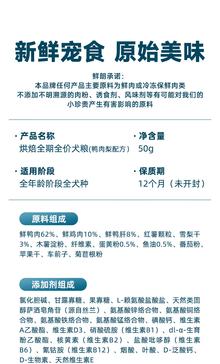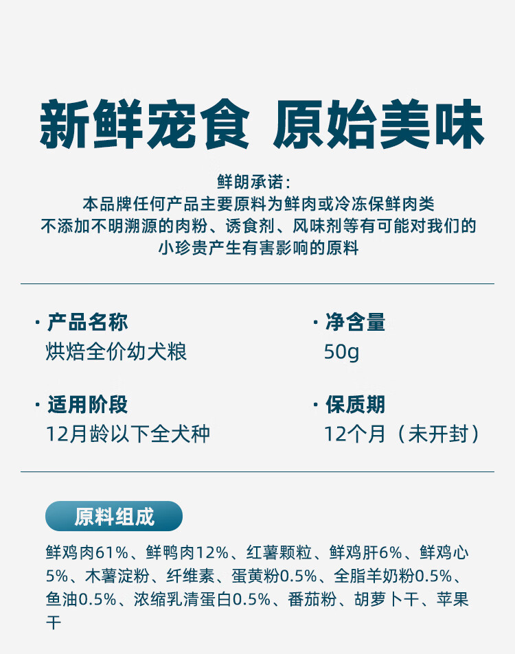 鲜朗低温烘焙狗粮冻干生骨肉天然无谷幼犬成犬全阶段换粮试吃试用 烘焙犬粮试吃装 100g(尝鲜装50g*2包)