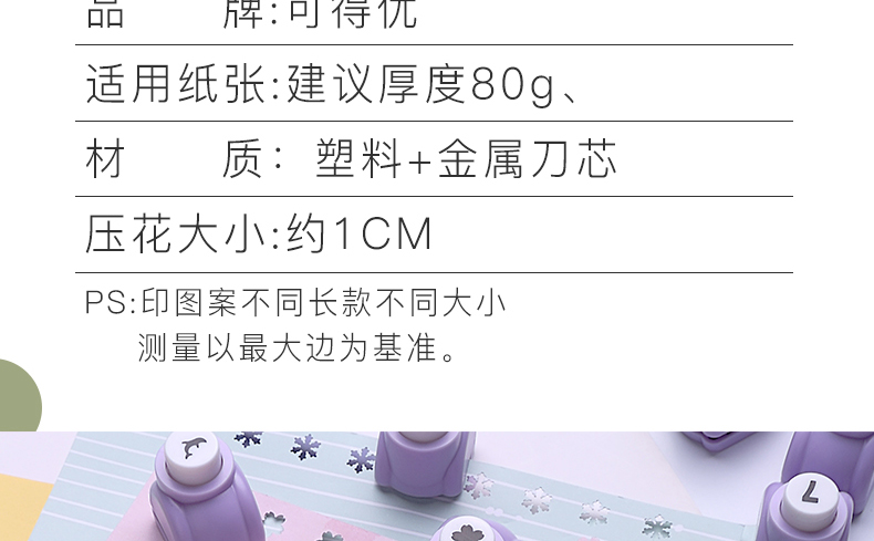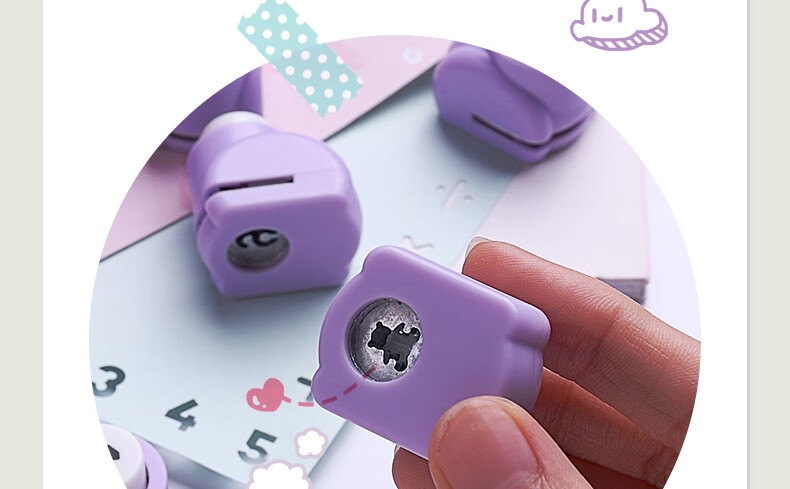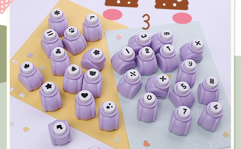 可得优迷你压花机花型打洞机小型打孔器数字动物猫头海豚星星组合打孔器 常用款【3个】