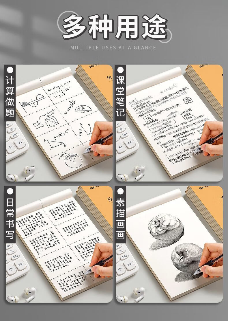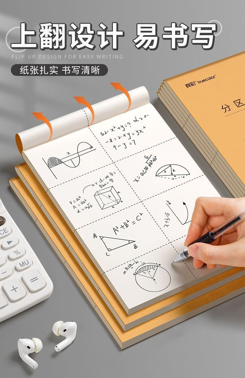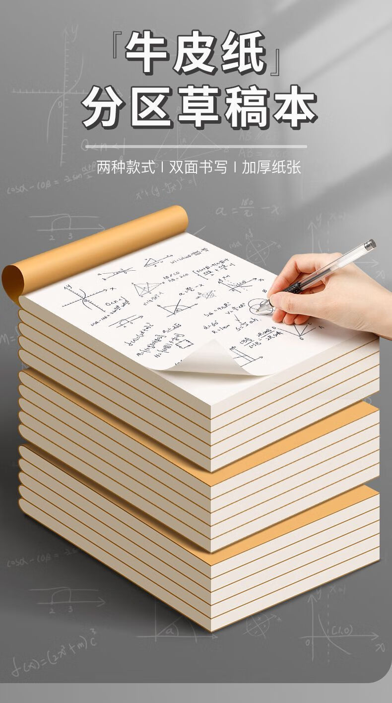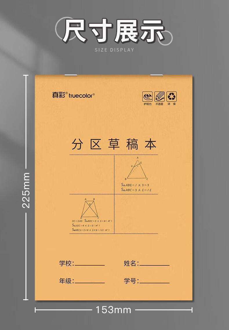 真彩(TRUECOLOR)加厚可撕款草稿本草稿纸考研专用大学生用高中生演算纸数学初中生打草纸白纸分区草稿5本装6306