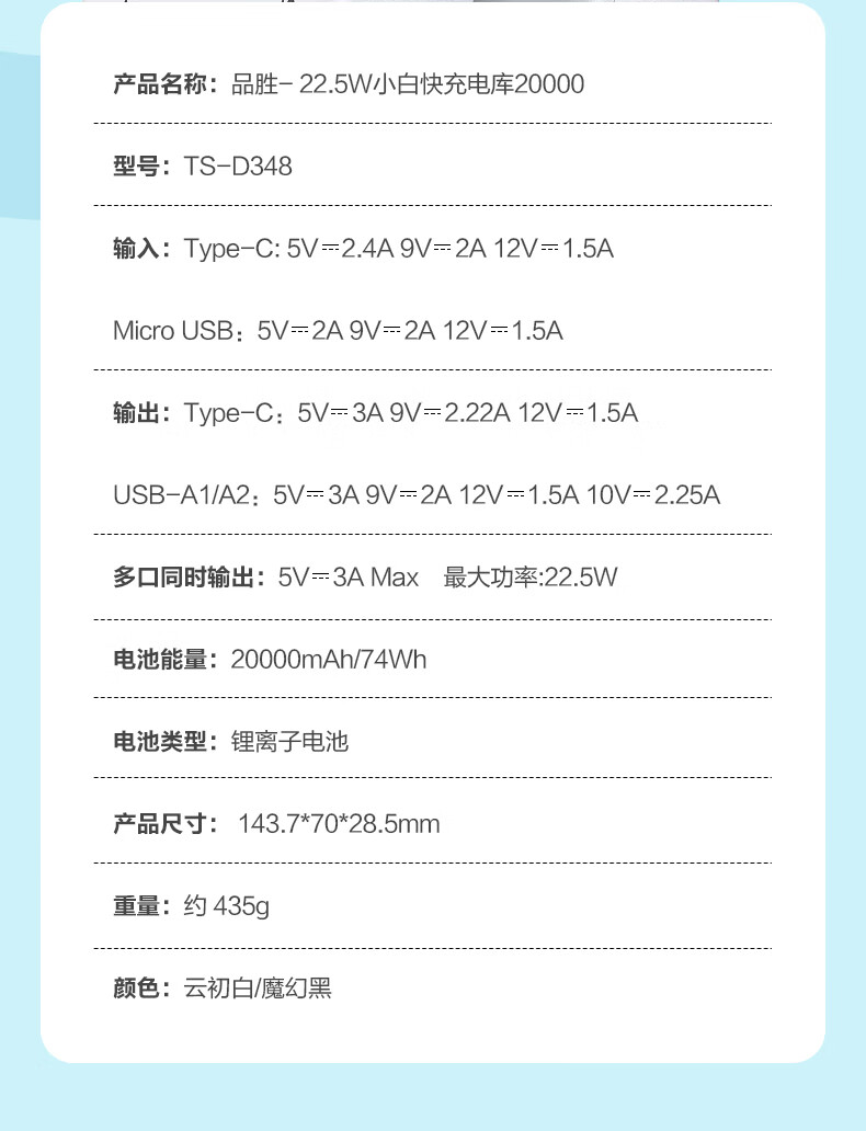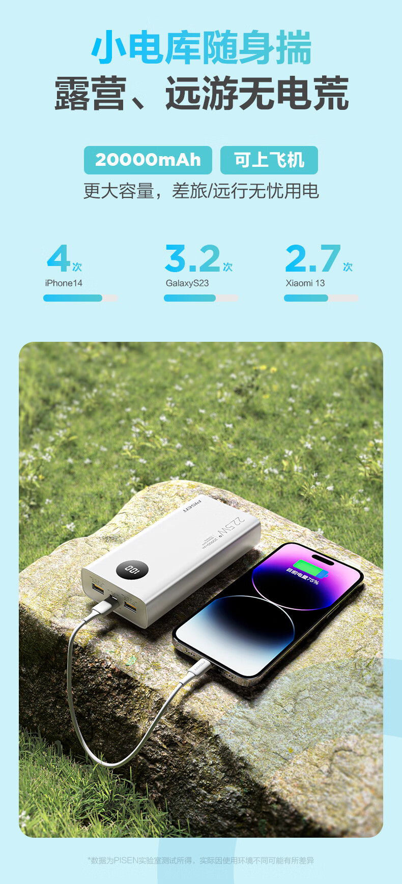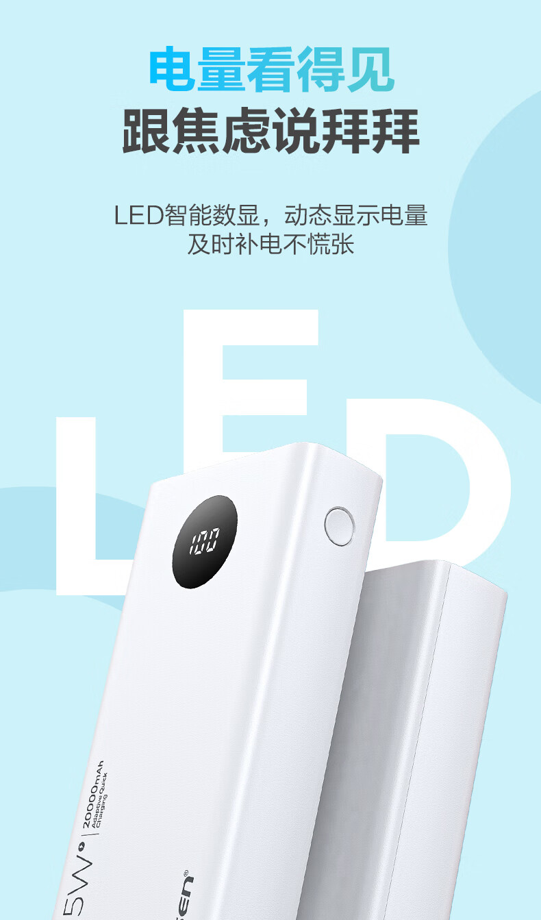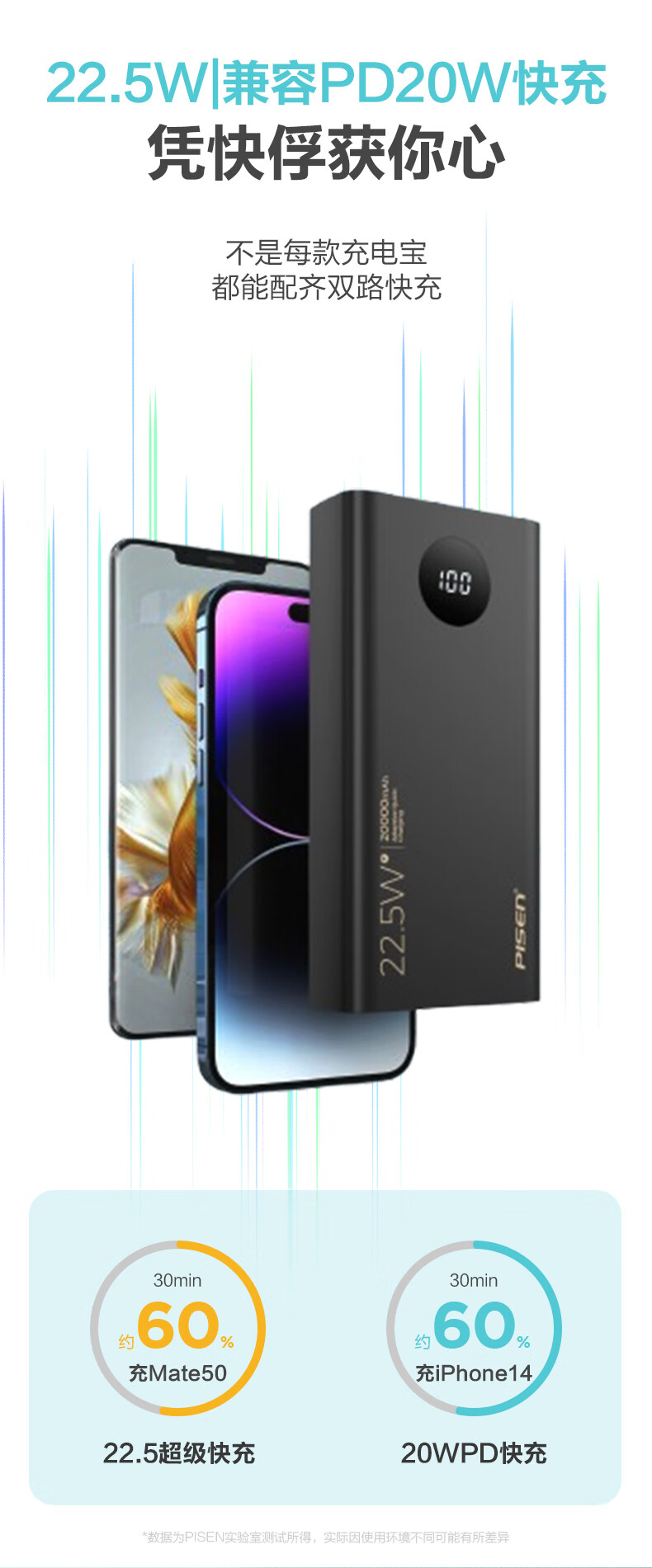 品胜(PISEN)3C认证充电宝 可上飞机 超级快充22.5W圆屏数显2万毫安大容量充电宝移动电源苹果17华为小米安卓 云初白【2万毫安圆屏数显22.5W】
