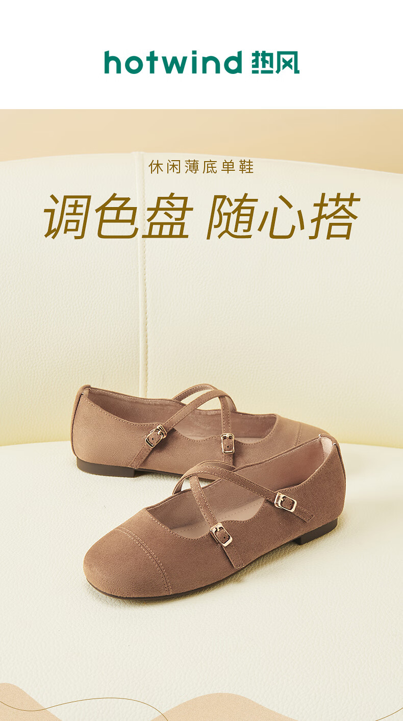 热风(Hotwind)棕色玛丽珍鞋女2025年春季新款法式甜美单鞋浅口百搭休闲女鞋 07绿色 38